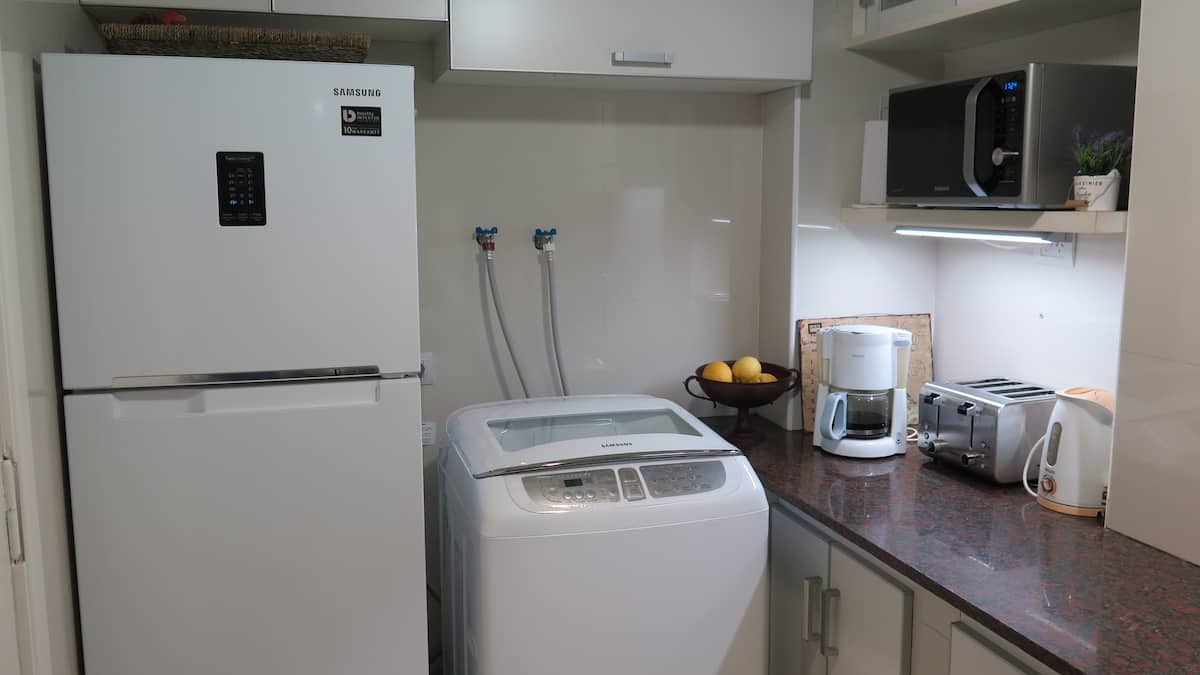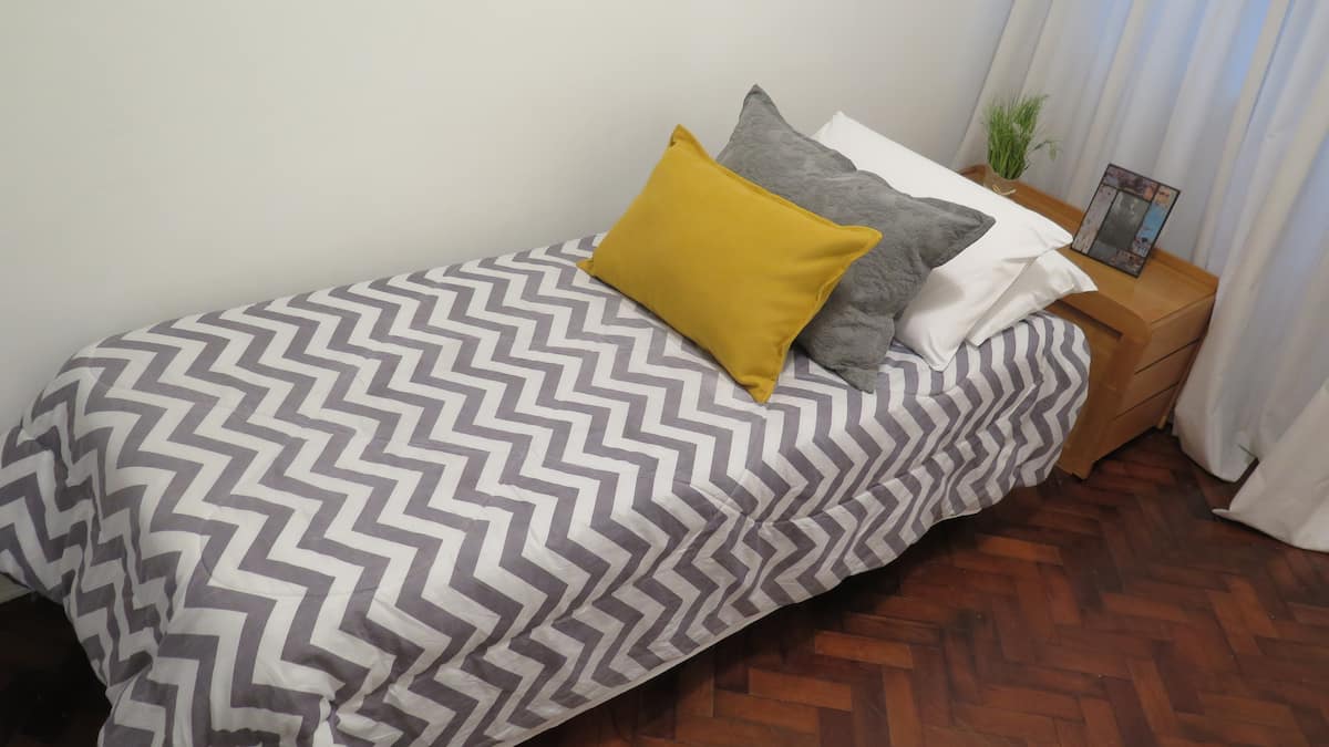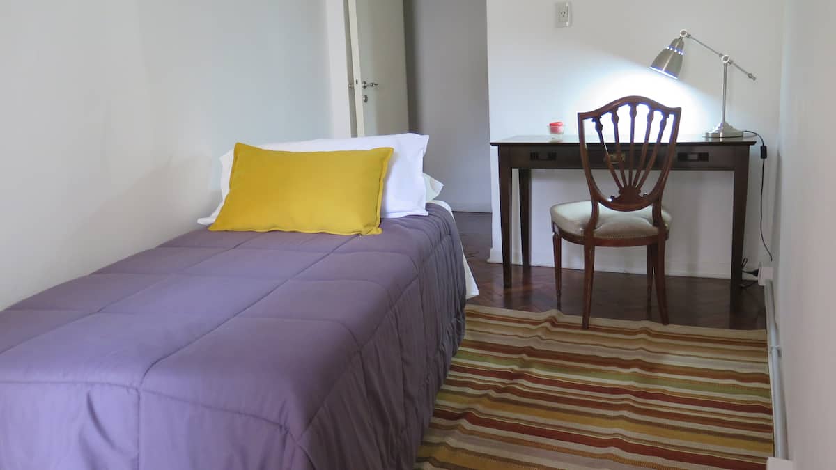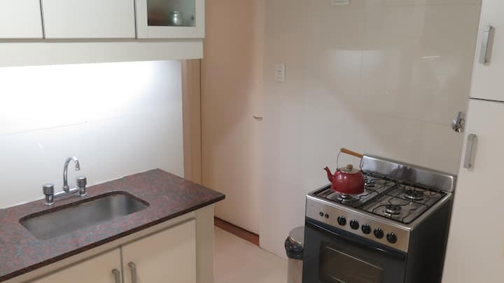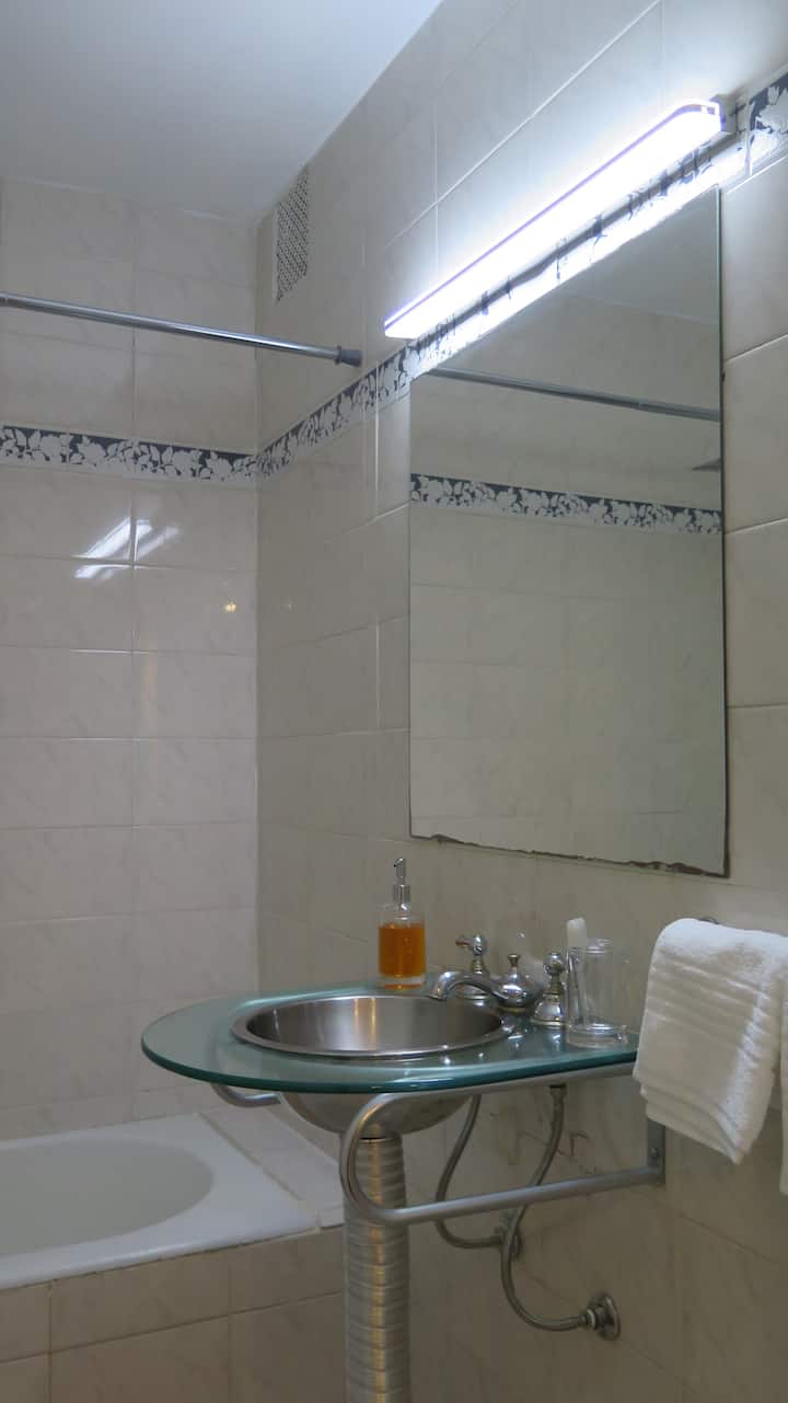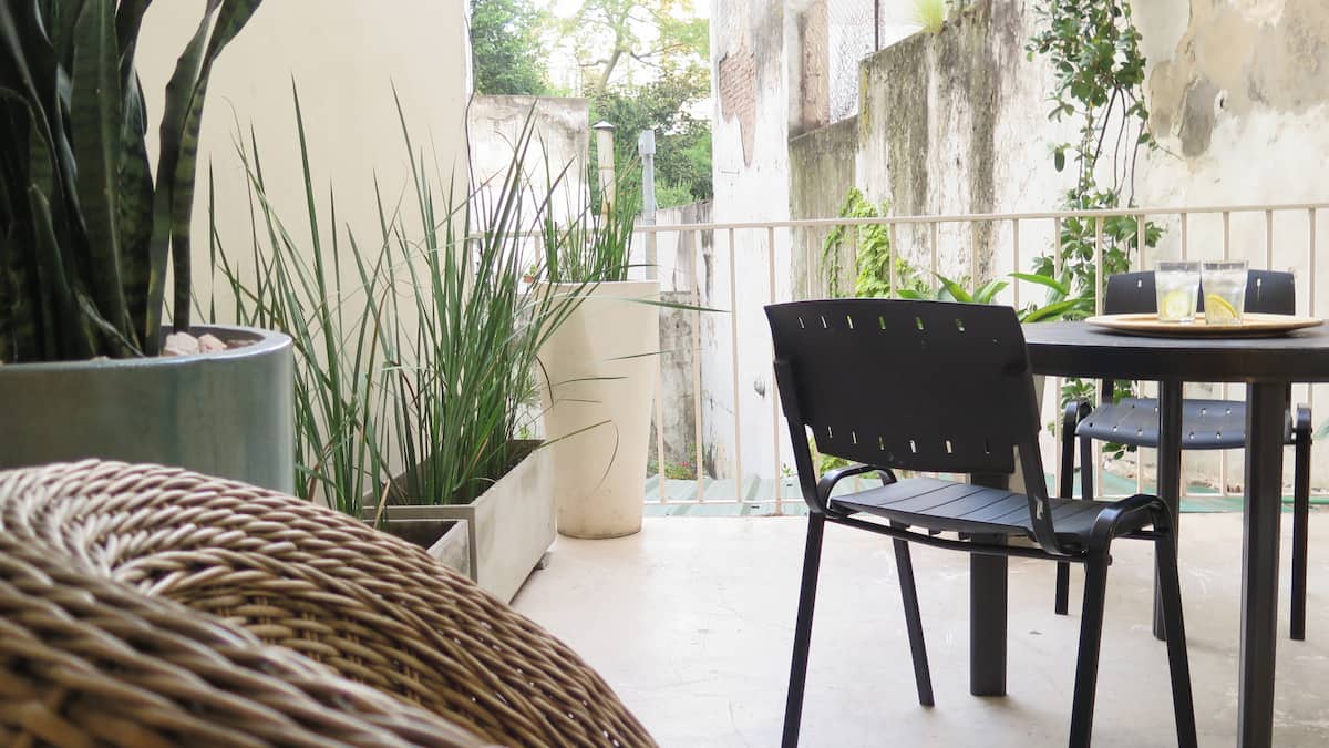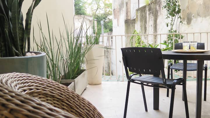 Apartment with 4 bedrooms, 2 bathrooms and a living room in Recoleta. It is on the first floor, with garden-facing outdoor balcony, and comes fully equipped with central heating and air conditioning in the living room. The apartment includes a kitchen with refrigerator, microwave and gas stove, plus WiFi internet and cable TV in the living room. It is located between Recoleta and Palermo, half a block from Av. Santa Fe and about two blocks from Metro D & H.