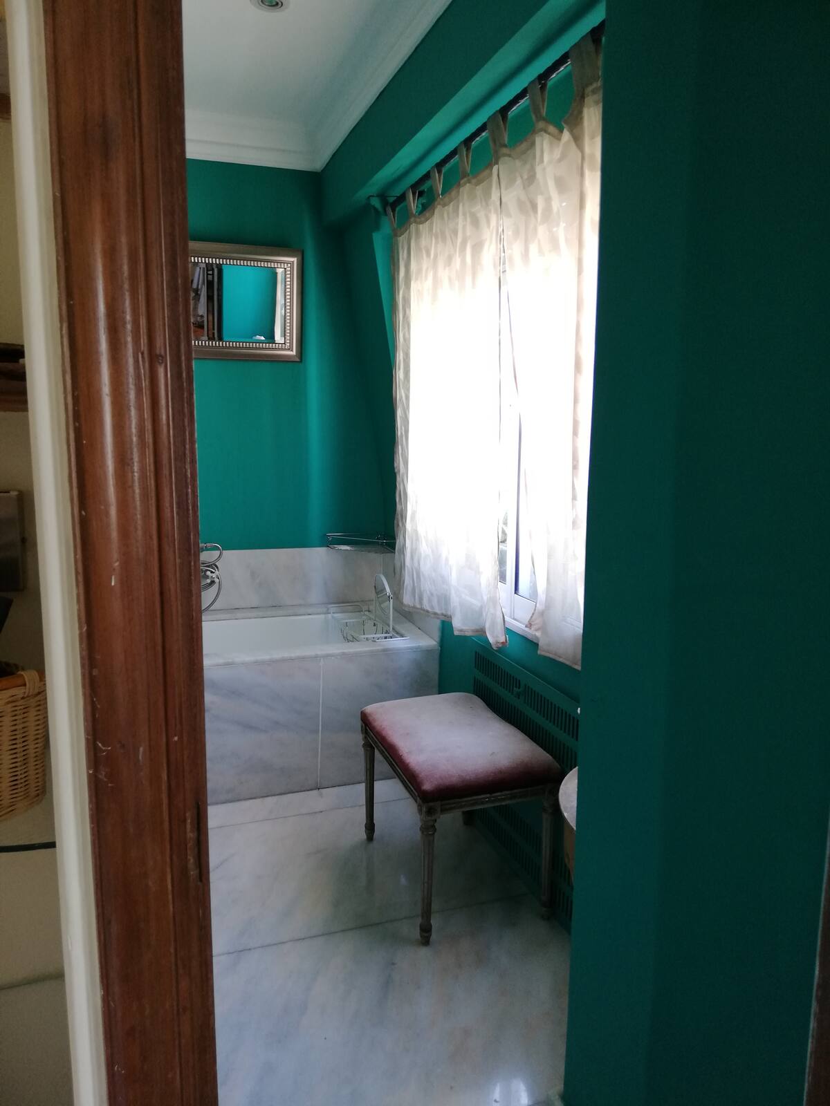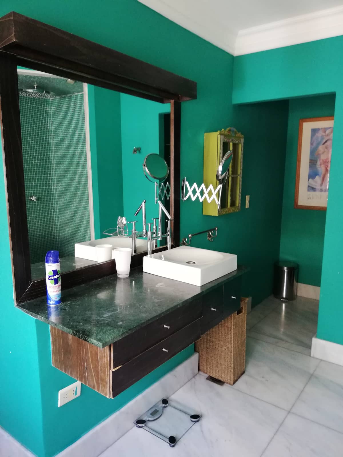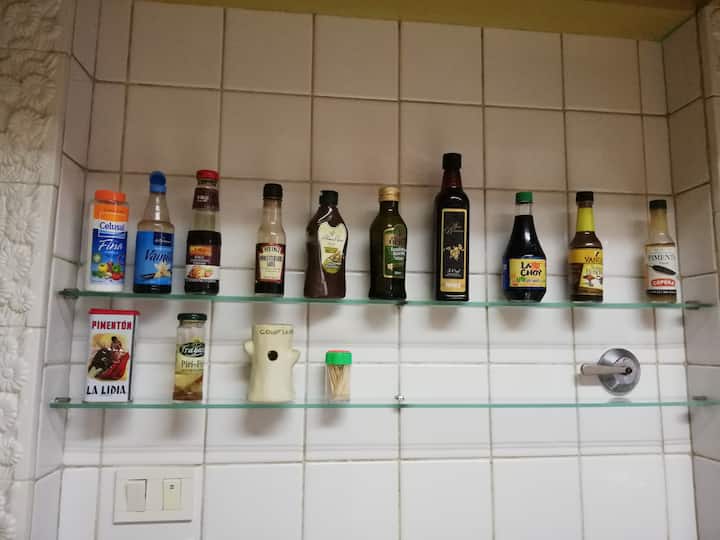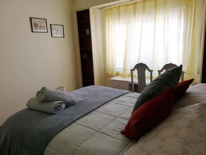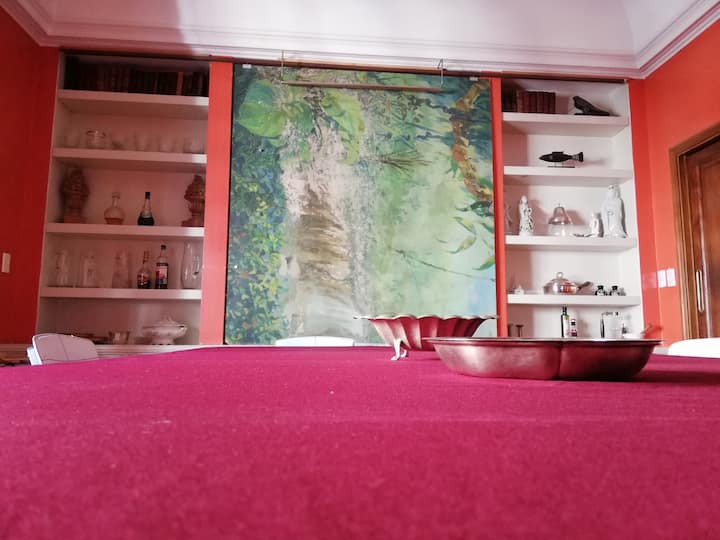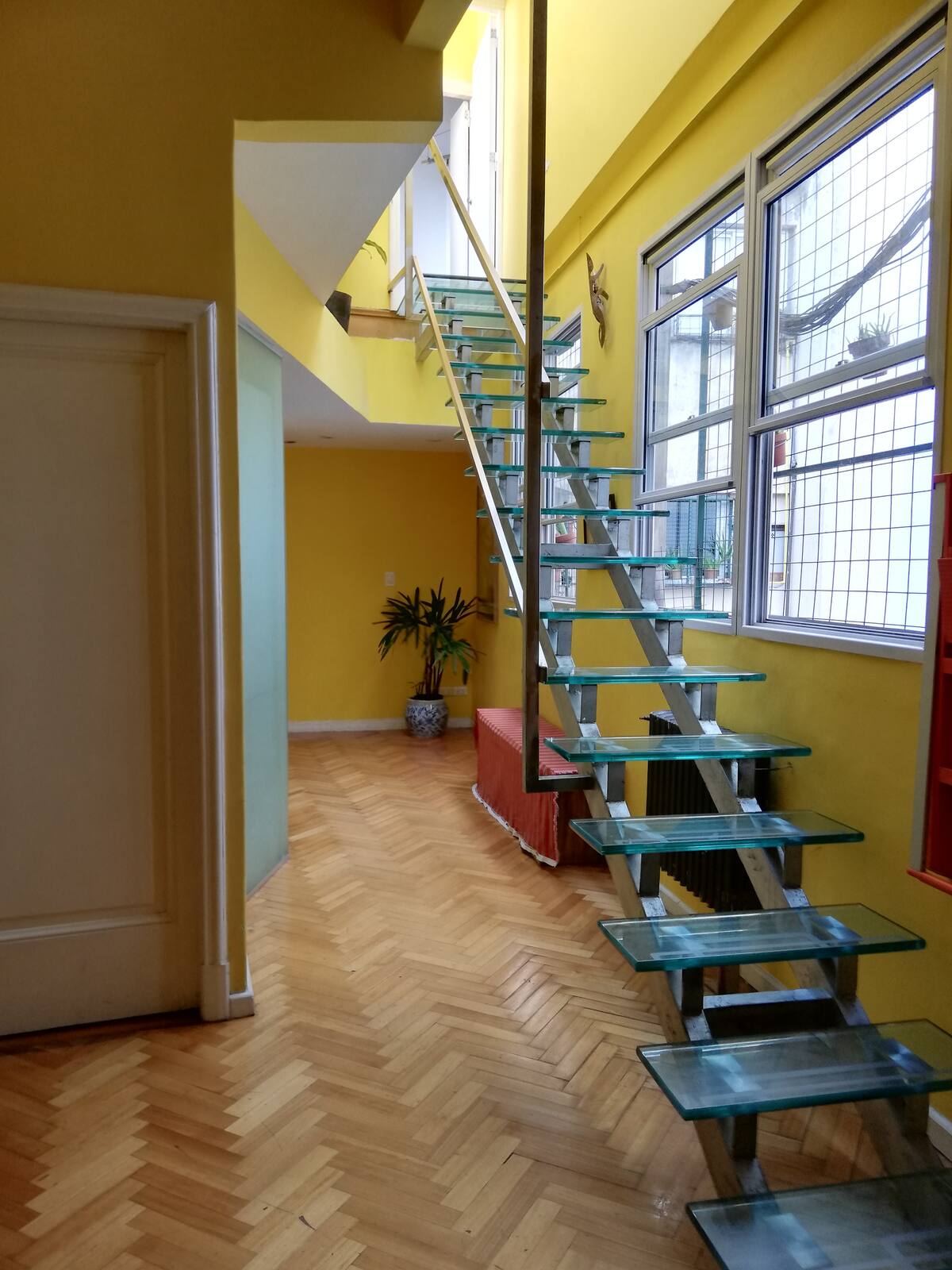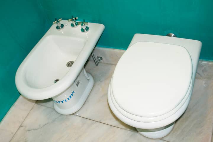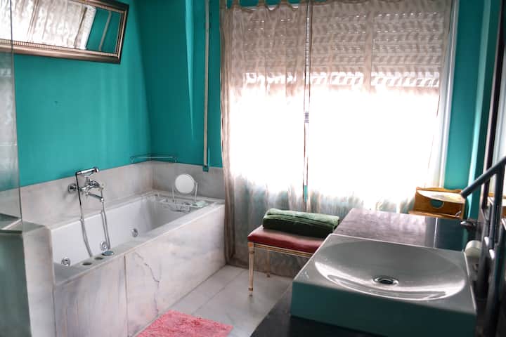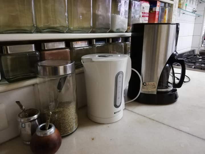 Four-bedroom apartment in Recoleta with air conditioning in each room. Each bedroom has a private en-suite bathroom; the main bedroom has a king-size bed, two bedrooms have queen-size beds, and the fourth has 3 single beds, with an additional two single mattresses available in the library area. The living room has a 40” TV; the dining room has a large table for up to 18 people and there is a well-equipped kitchen with two ovens and two refrigerators. Guests have private access to a terrace with