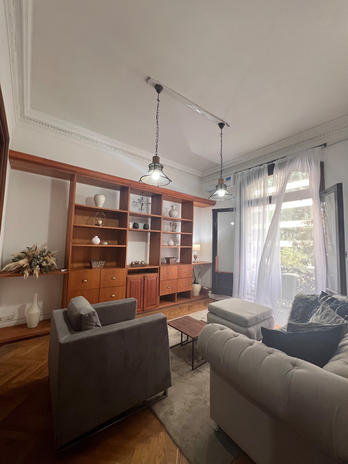 Apartment in Retiro, in a historic building on the main avenue. Street-facing, with 2 balconies. Includes hot water, heating and air conditioning.