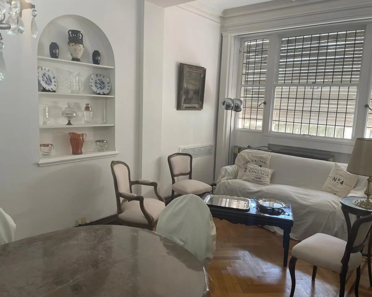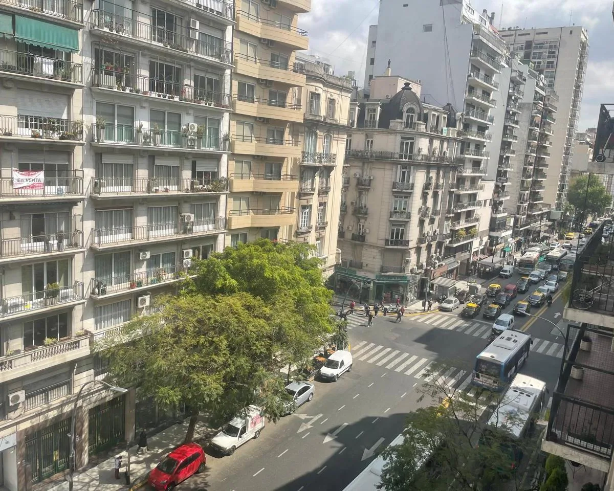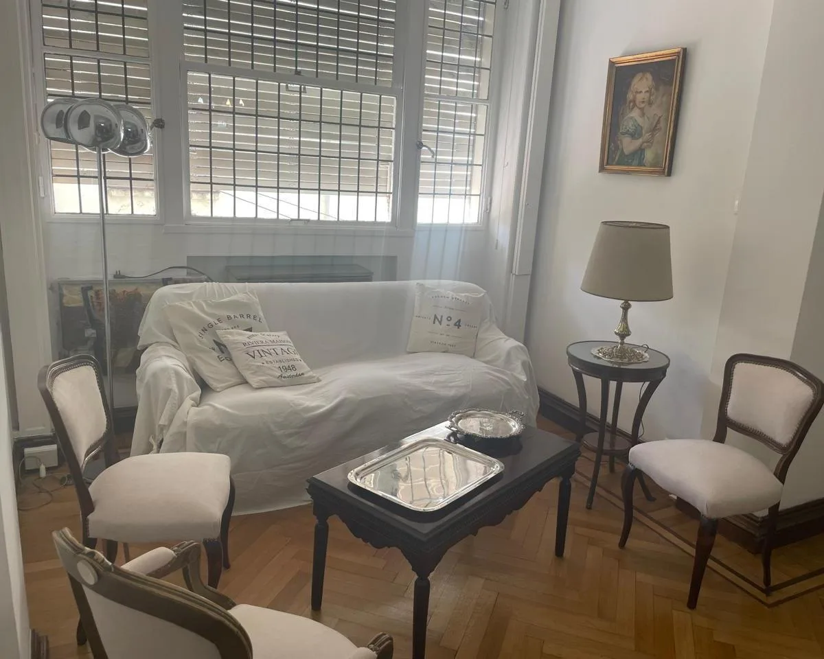 Furnished and equipped four-bedroom apartment, half-floor unit, street-facing with views of Av. Santa Fe between Libertad and Cerrito. The layout includes a separate living and dining reception, three bedrooms, an en-suite bathroom plus a full second main bathroom, and storage in all rooms. The unit has a kitchen with a daily dining area, a separate laundry room, and a service room with its own bathroom; it is equipped with a fridge and microwave, plus coffee maker and kitchenware. The building