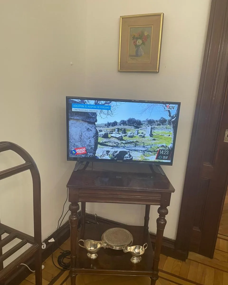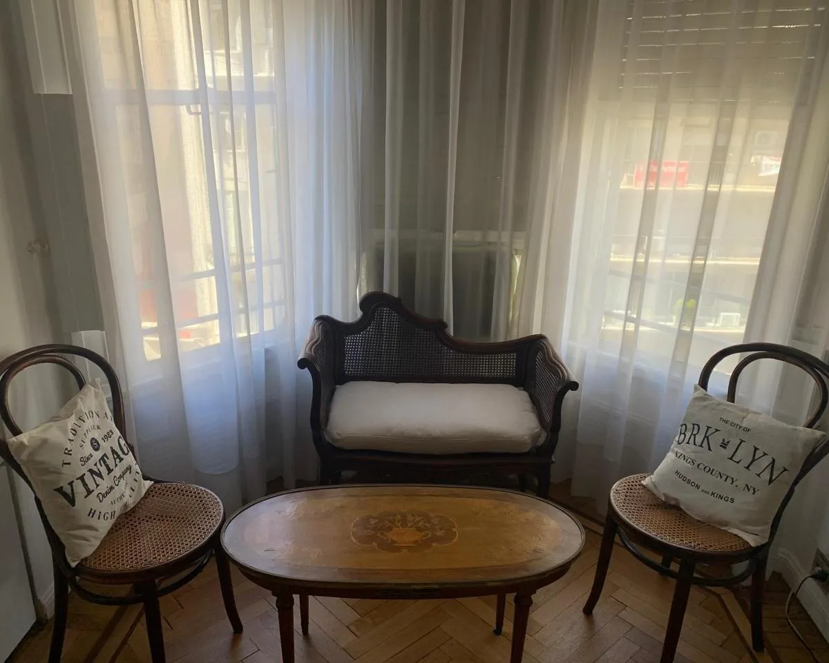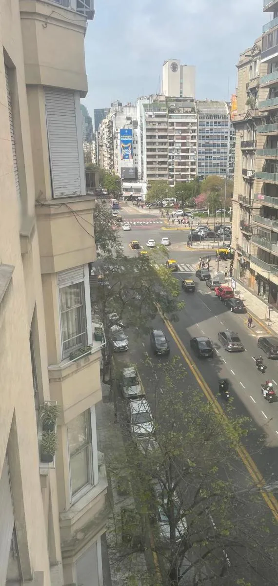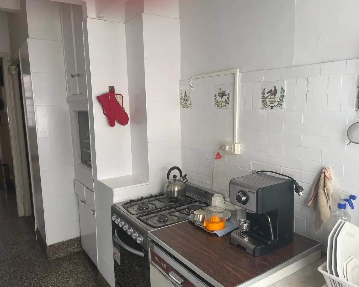 Furnished and equipped four-bedroom apartment, half-floor unit, street-facing with views of Av. Santa Fe between Libertad and Cerrito. The layout includes a separate living and dining reception, three bedrooms, an en-suite bathroom plus a full second main bathroom, and storage in all rooms. The unit has a kitchen with a daily dining area, a separate laundry room, and a service room with its own bathroom; it is equipped with a fridge and microwave, plus coffee maker and kitchenware. The building