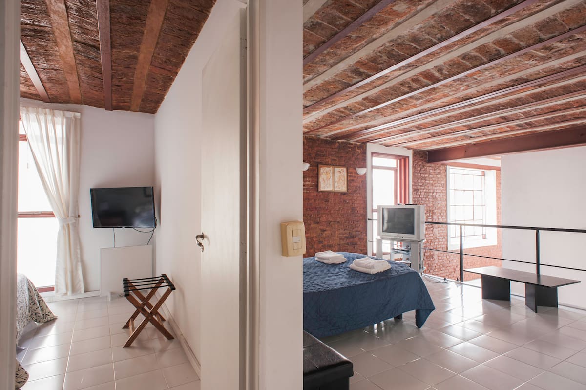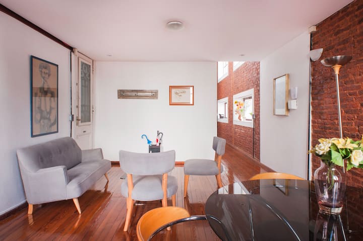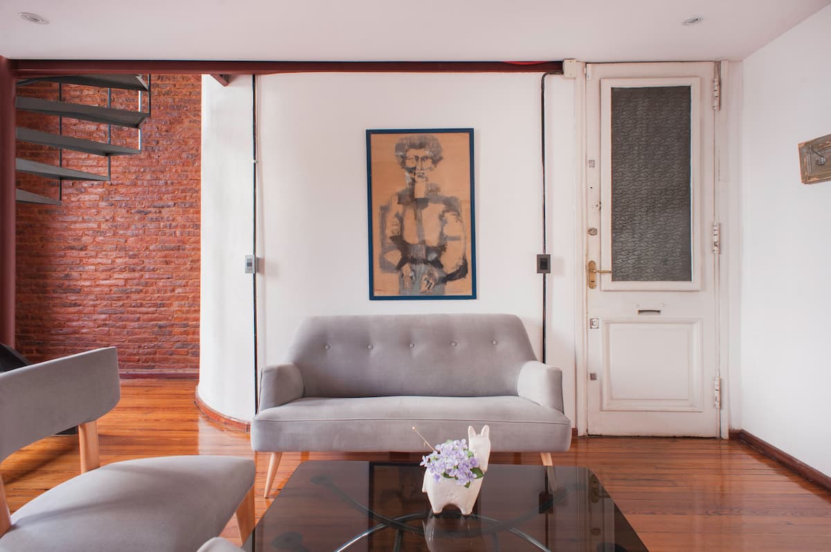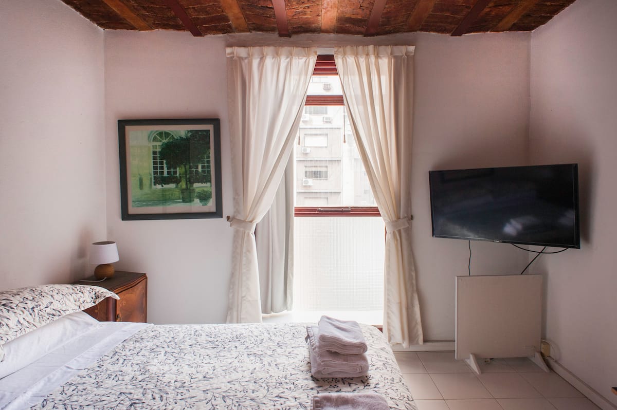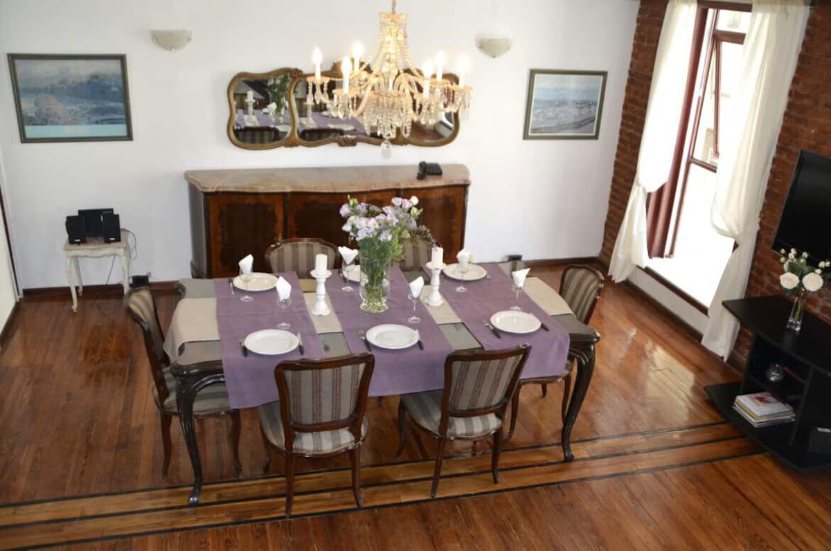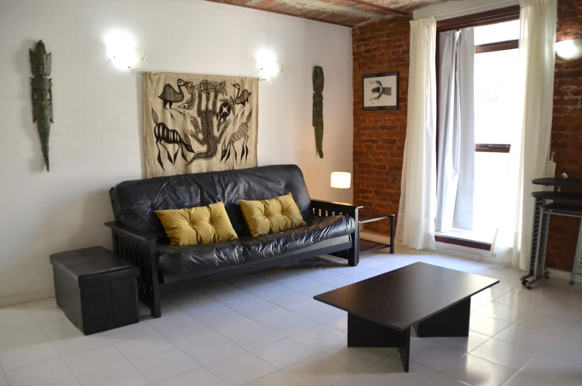 Apartment with 180 m² on two floors in Retiro, reported as very bright. It includes a spacious living room and a large reception area. There are 4 bedrooms (one double, one triple, two single) plus a common space with a futon for 2 people, and 2 full bathrooms. Internet with Wi‑Fi, cable TV, and a landline phone are mentioned. An alarm is included, and the reception has a balcony facing the street. Located 100 metres from Av 9 de Julio, Av Santa Fe and Av Córdoba, and 400 metres from Subte lines