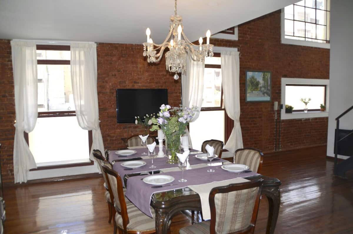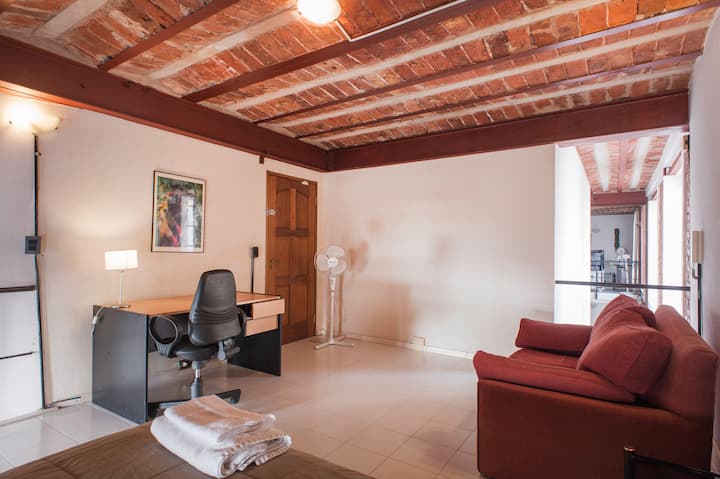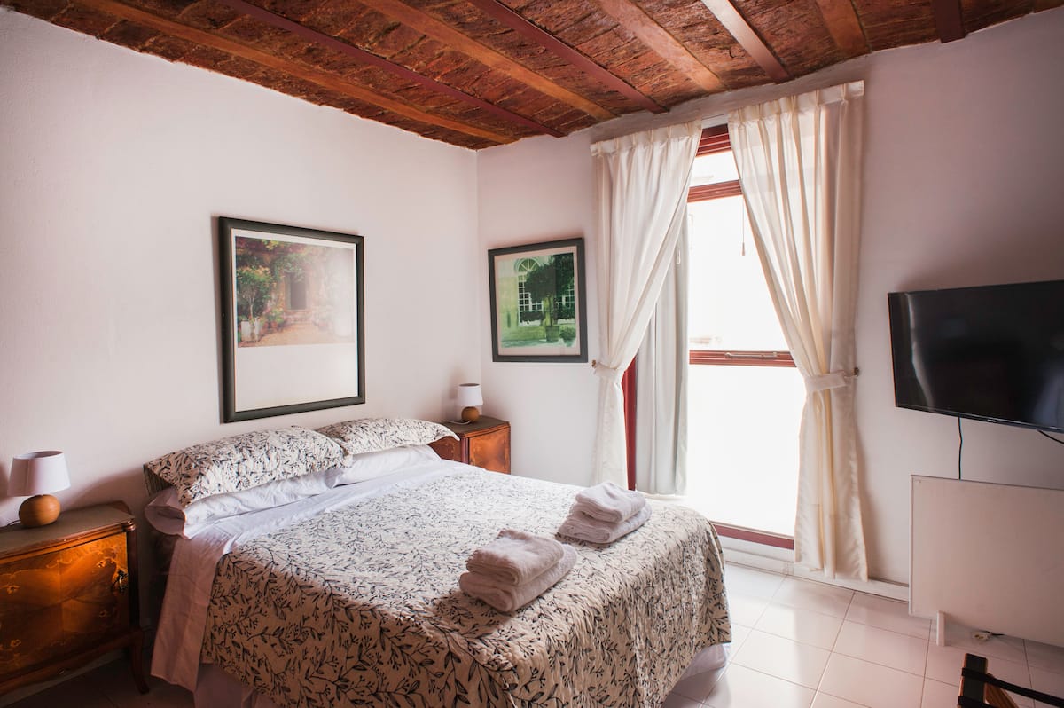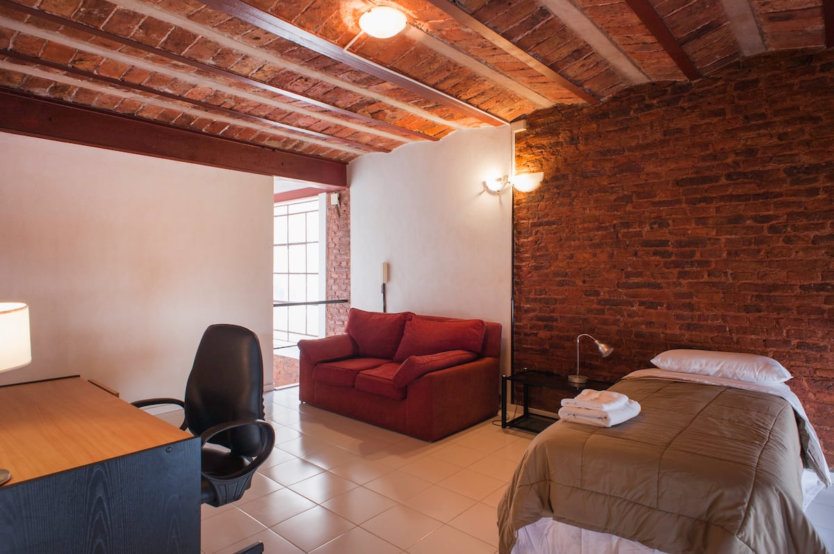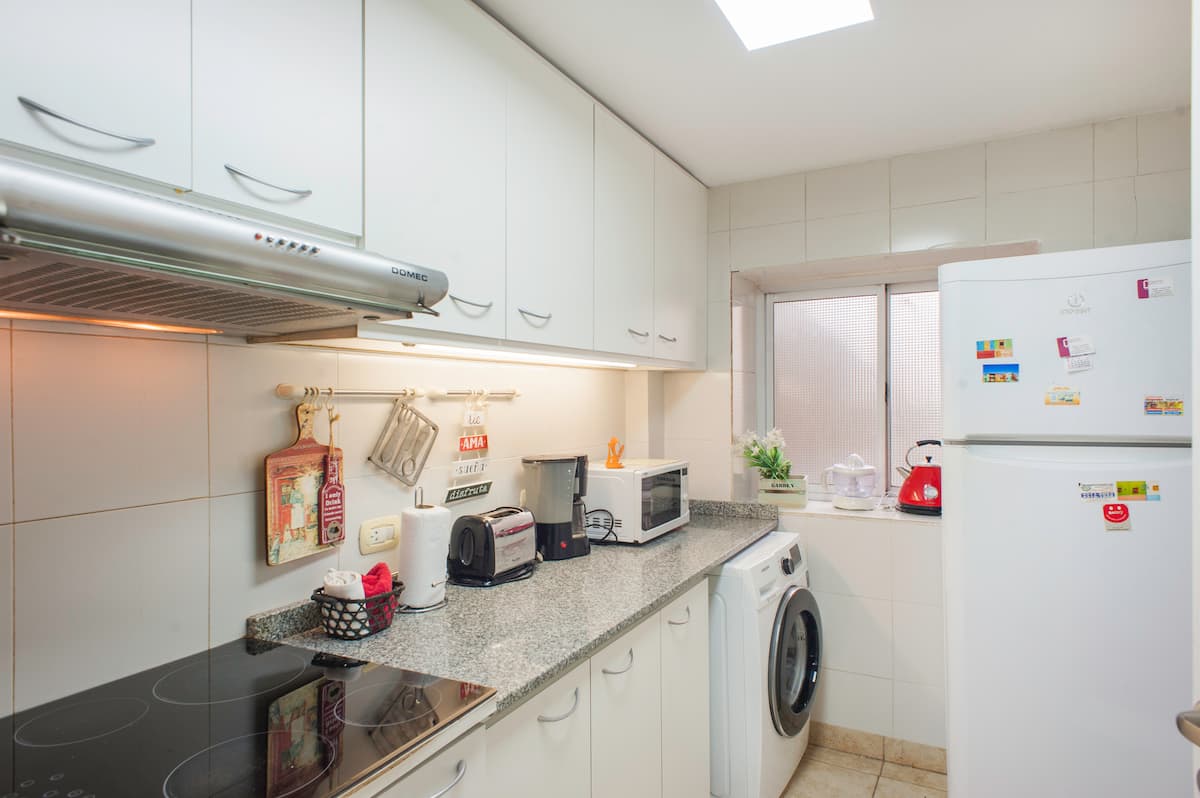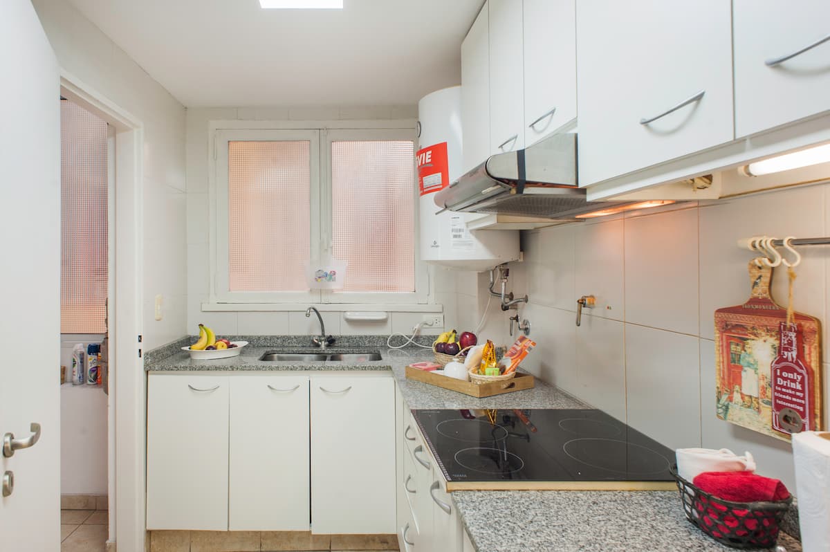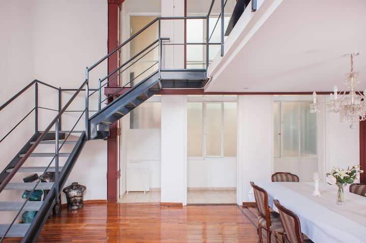 Apartment with 180 m² on two floors in Retiro, reported as very bright. It includes a spacious living room and a large reception area. There are 4 bedrooms (one double, one triple, two single) plus a common space with a futon for 2 people, and 2 full bathrooms. Internet with Wi‑Fi, cable TV, and a landline phone are mentioned. An alarm is included, and the reception has a balcony facing the street. Located 100 metres from Av 9 de Julio, Av Santa Fe and Av Córdoba, and 400 metres from Subte lines