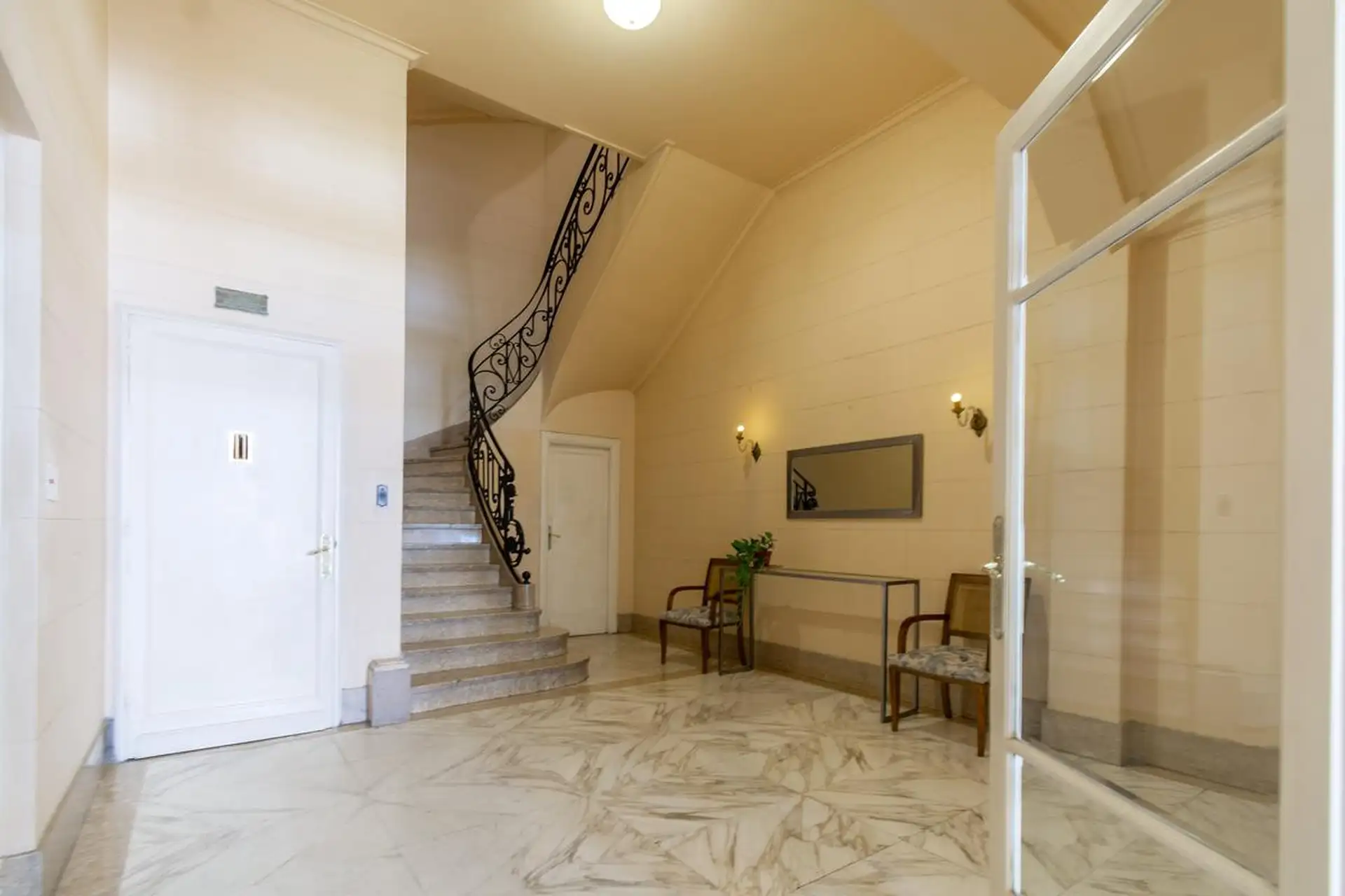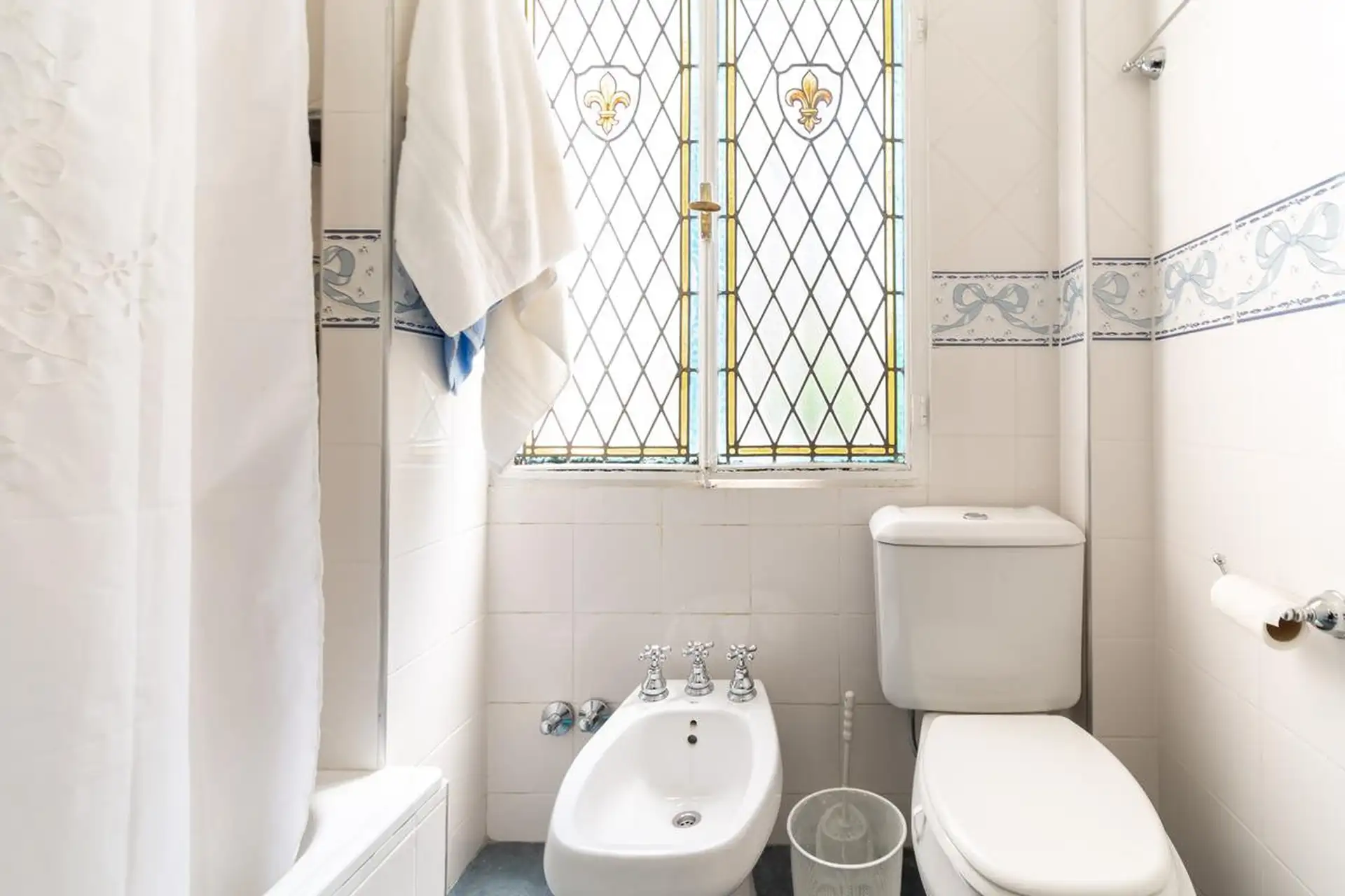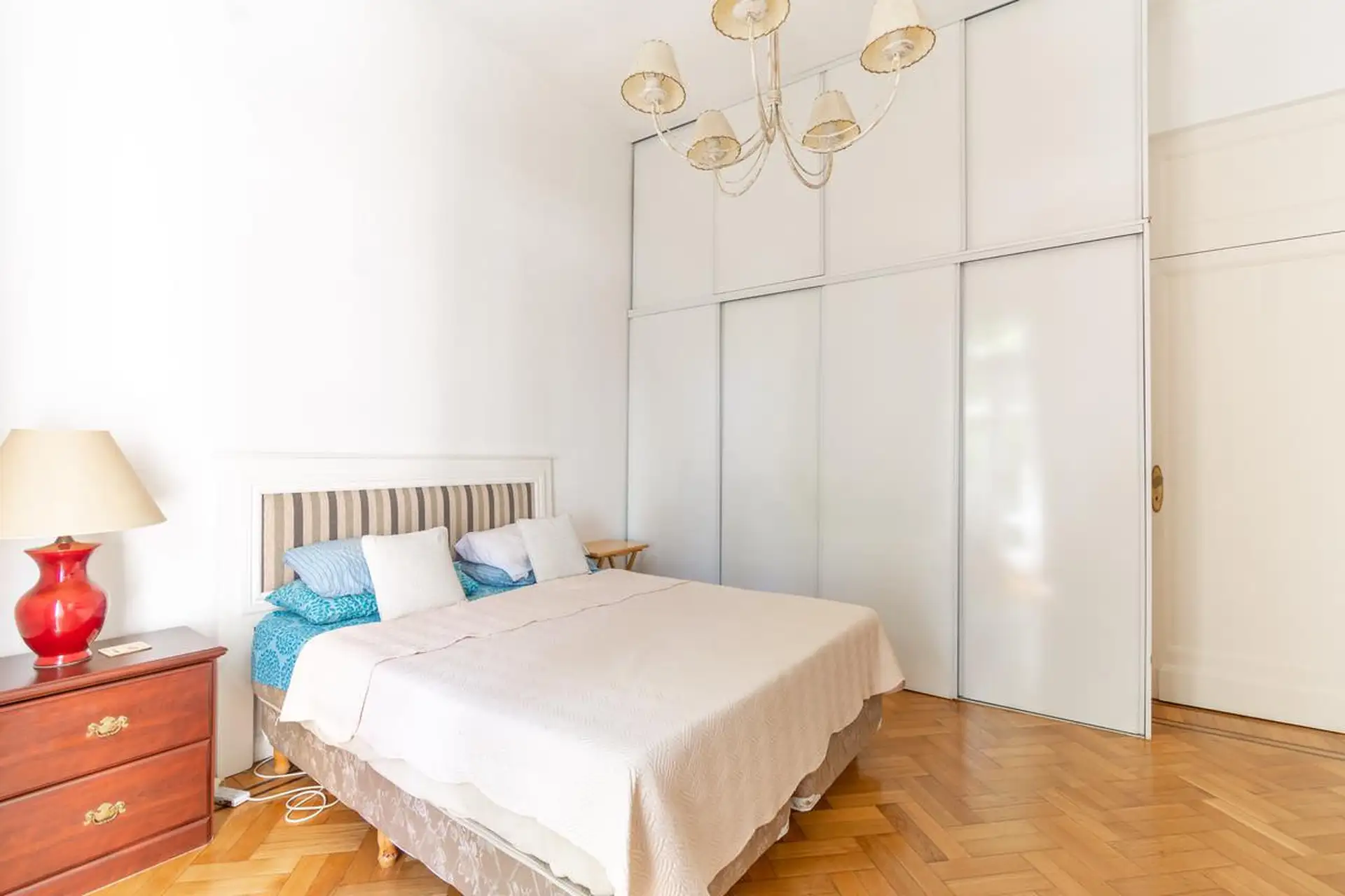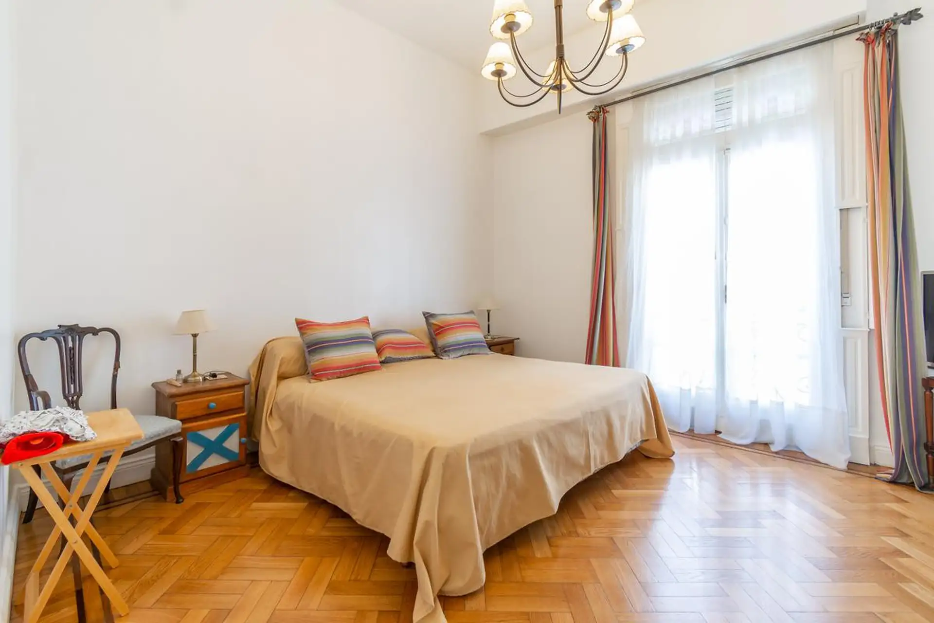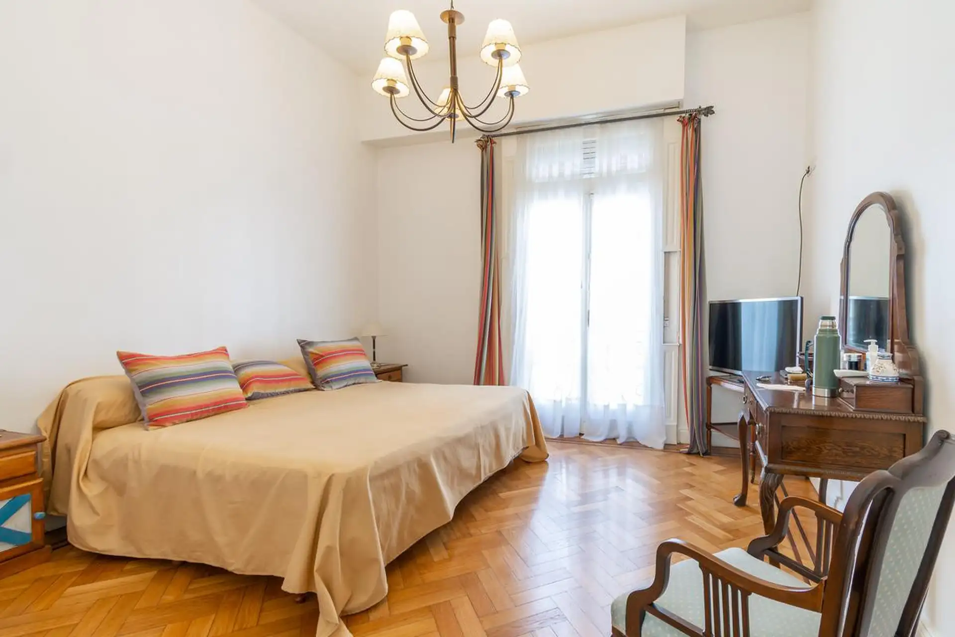 Four-bedroom apartment in Recoleta (Arenales y Libertad), 250 m² (RAM). Available from 1 May 2026. Large front reception with period-style windows and double-height ceilings, plus two additional living areas. Primary suite with double bed and en-suite bathroom, with courtyard-facing views; other bedrooms include an additional bathroom in two of them. Rebuilt modern kitchen with fridge, washer and dishwasher, plus dining area with garden views and a rear terrace on the top floor with a grill. Uti