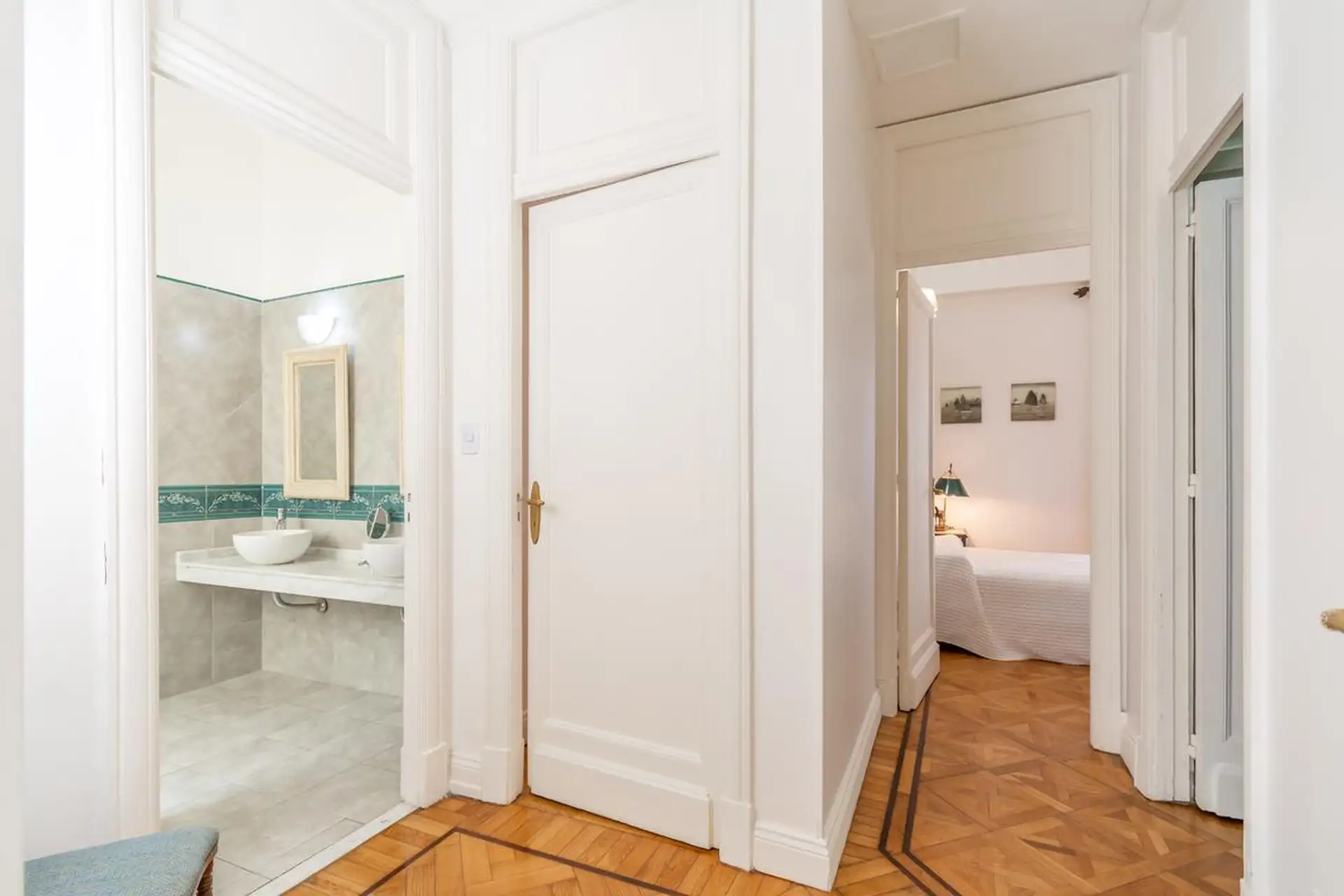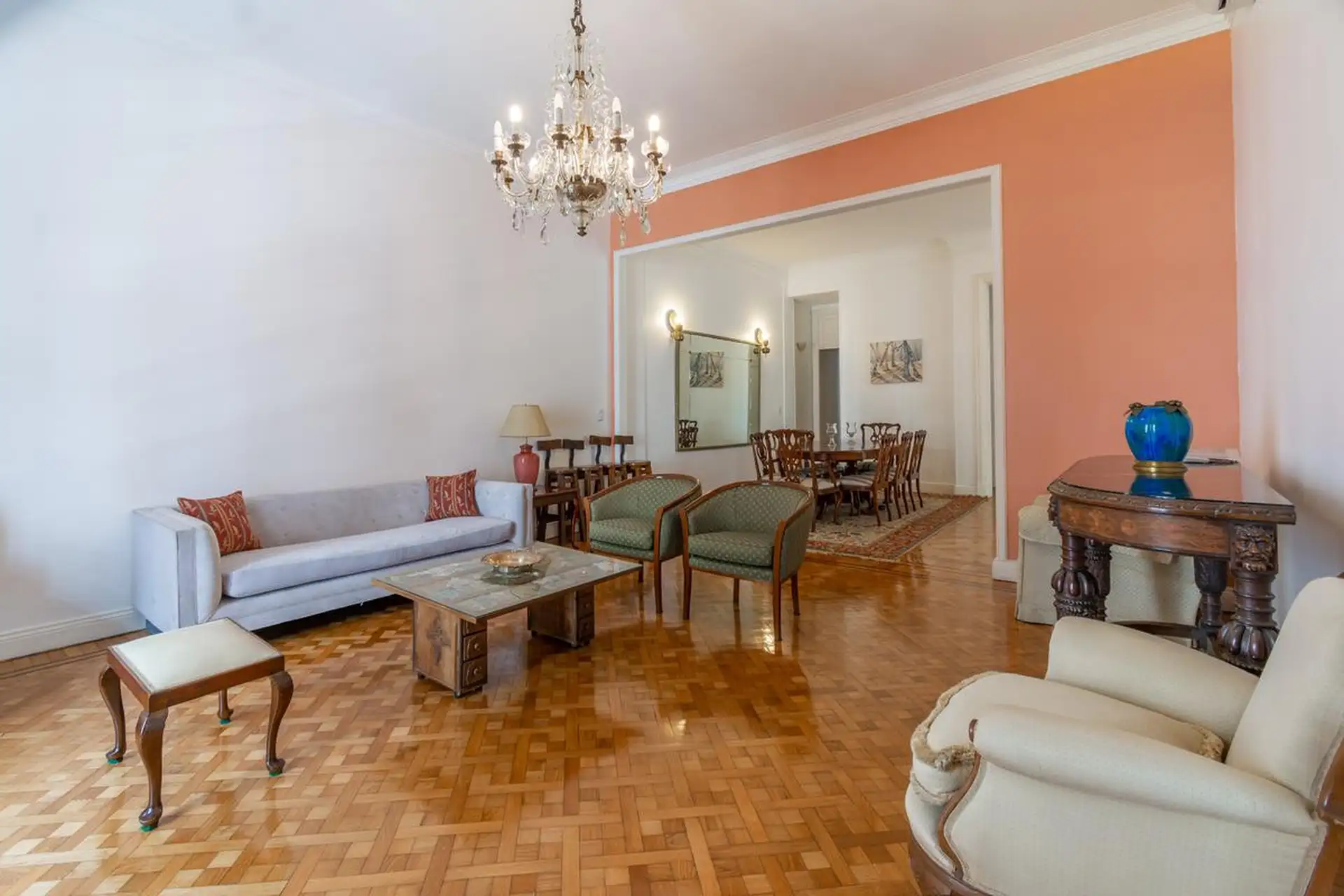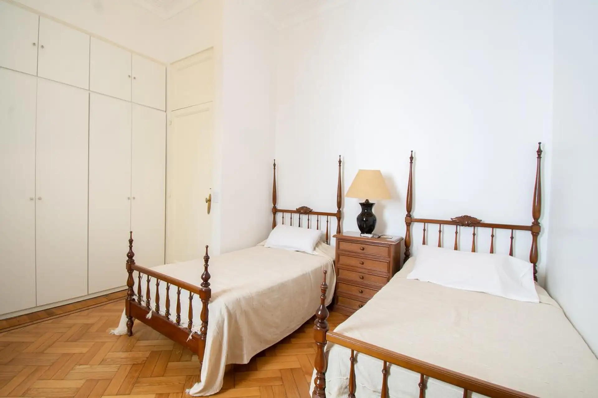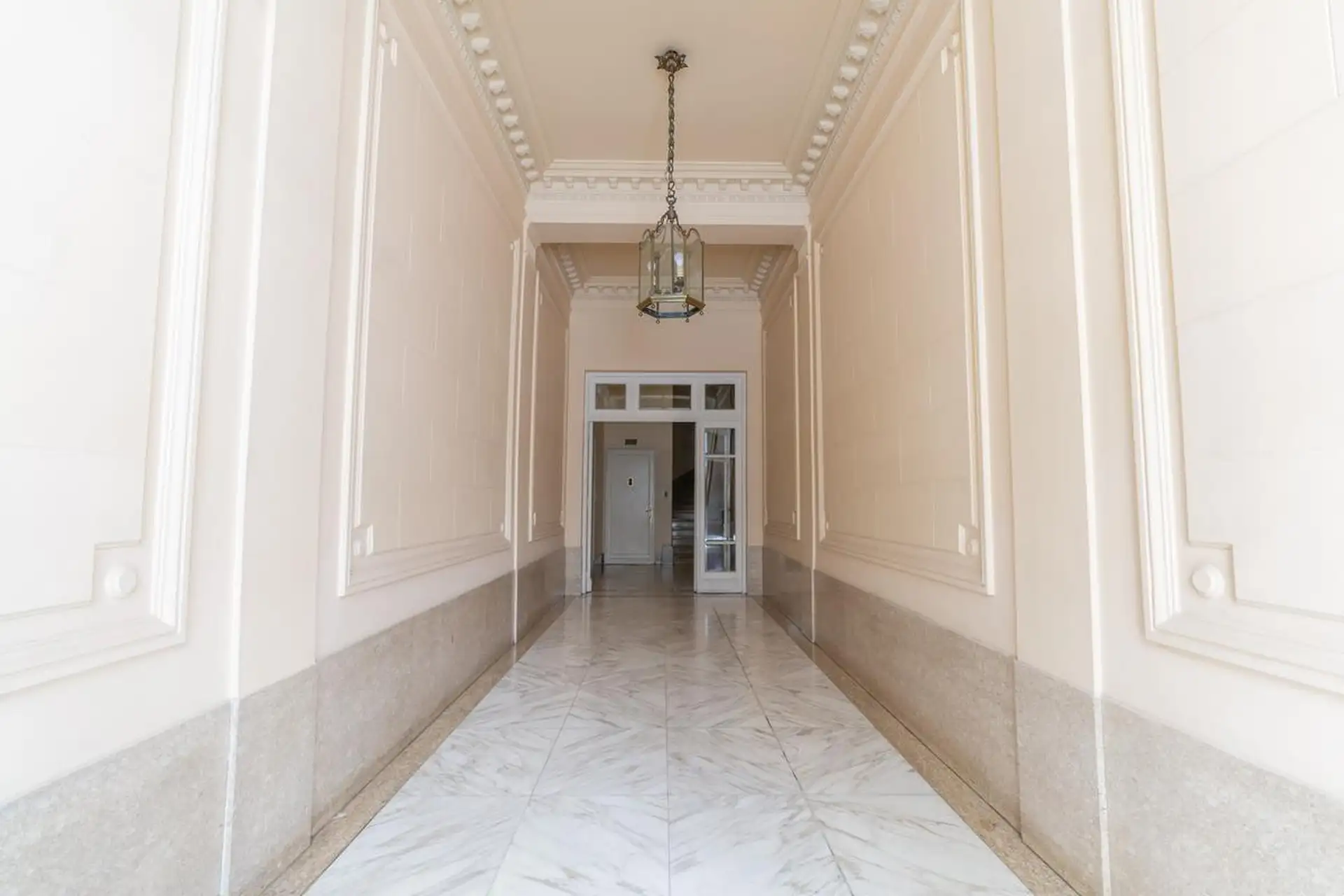 Four-bedroom apartment in Recoleta (Arenales y Libertad), 250 m² (RAM). Available from 1 May 2026. Large front reception with period-style windows and double-height ceilings, plus two additional living areas. Primary suite with double bed and en-suite bathroom, with courtyard-facing views; other bedrooms include an additional bathroom in two of them. Rebuilt modern kitchen with fridge, washer and dishwasher, plus dining area with garden views and a rear terrace on the top floor with a grill. Uti