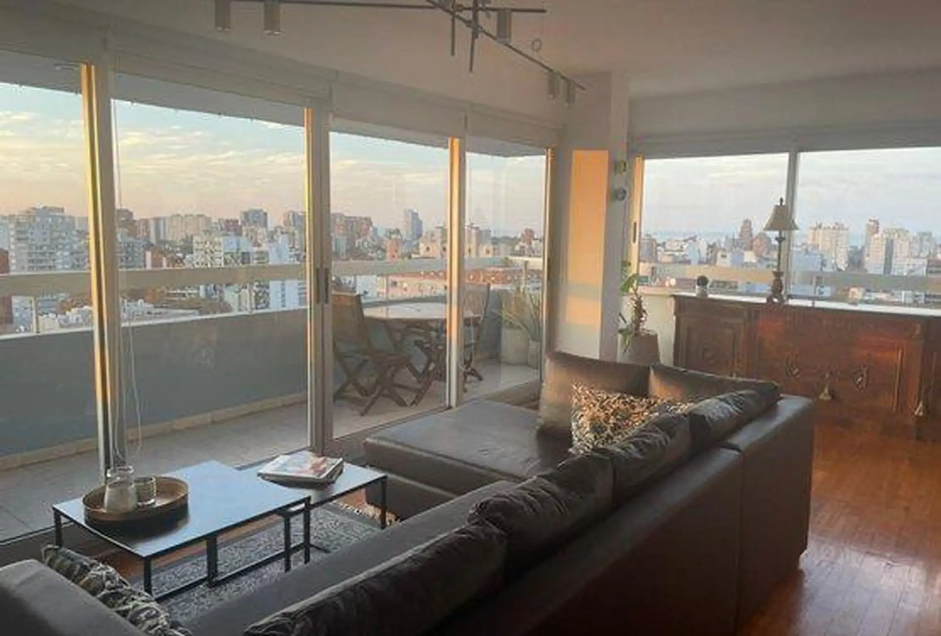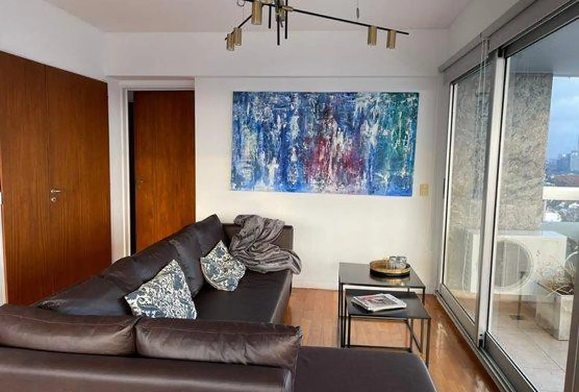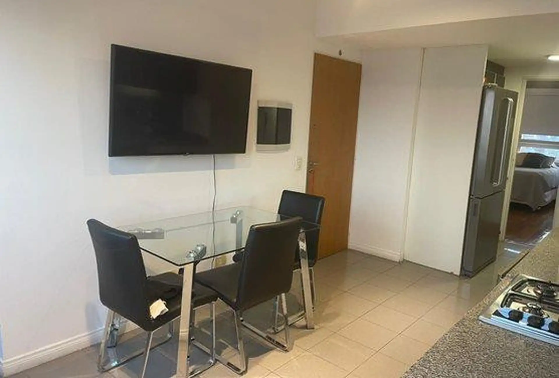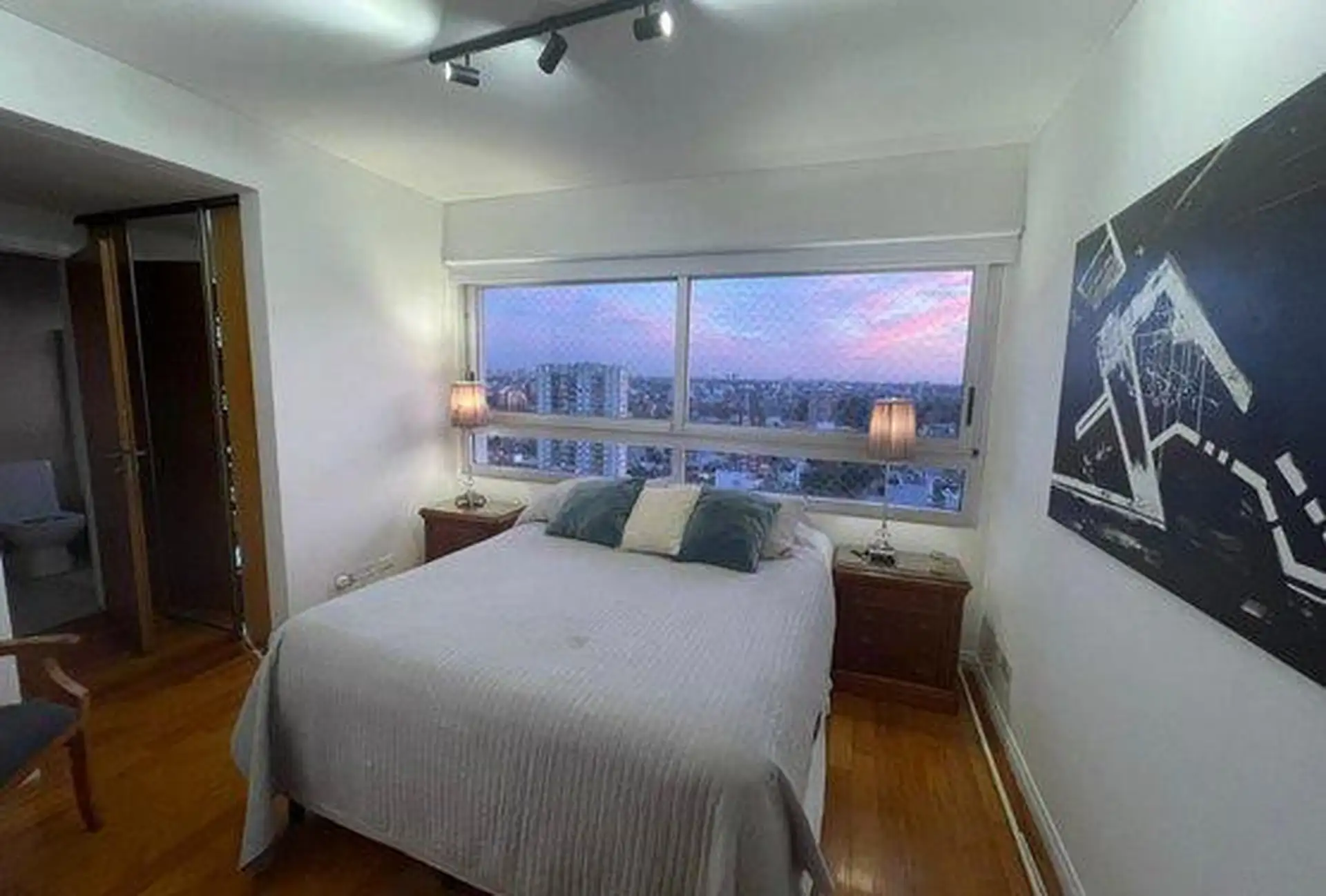 Semi-floor apartment for temporary rental in Saavedra, on García del Río between Moldes and Amenábar, at the border with Núñez. It has 3 bedrooms (1 en suite), 3 full bathrooms in total, an additional bathroom in the living area for guests, and a separate service bedroom and bathroom, with an independent kitchen. The unit is furnished and equipped, with radiant floor heating and cooling via one air conditioner in the main bedroom; it includes an assigned parking space and access to a pool, ping-