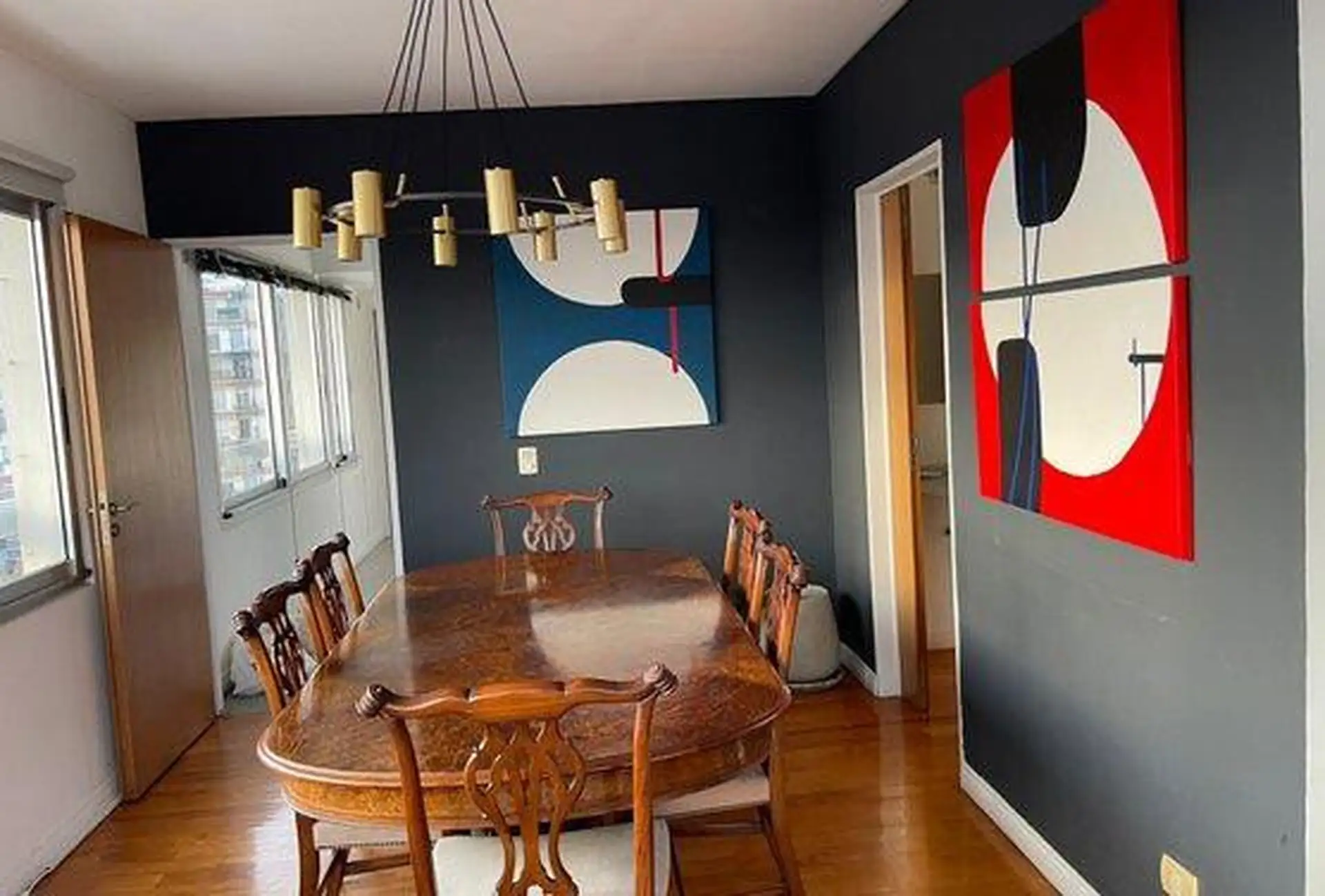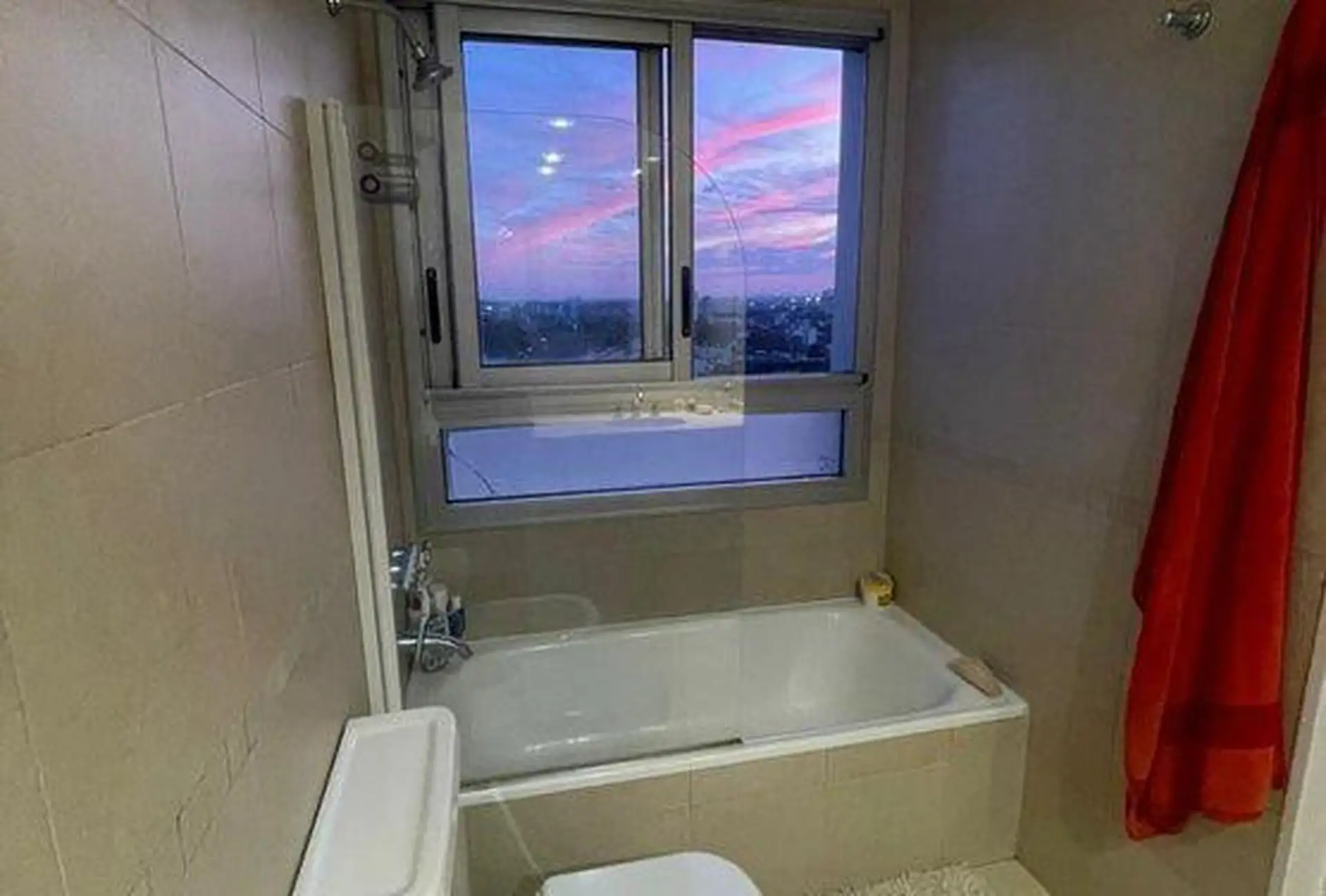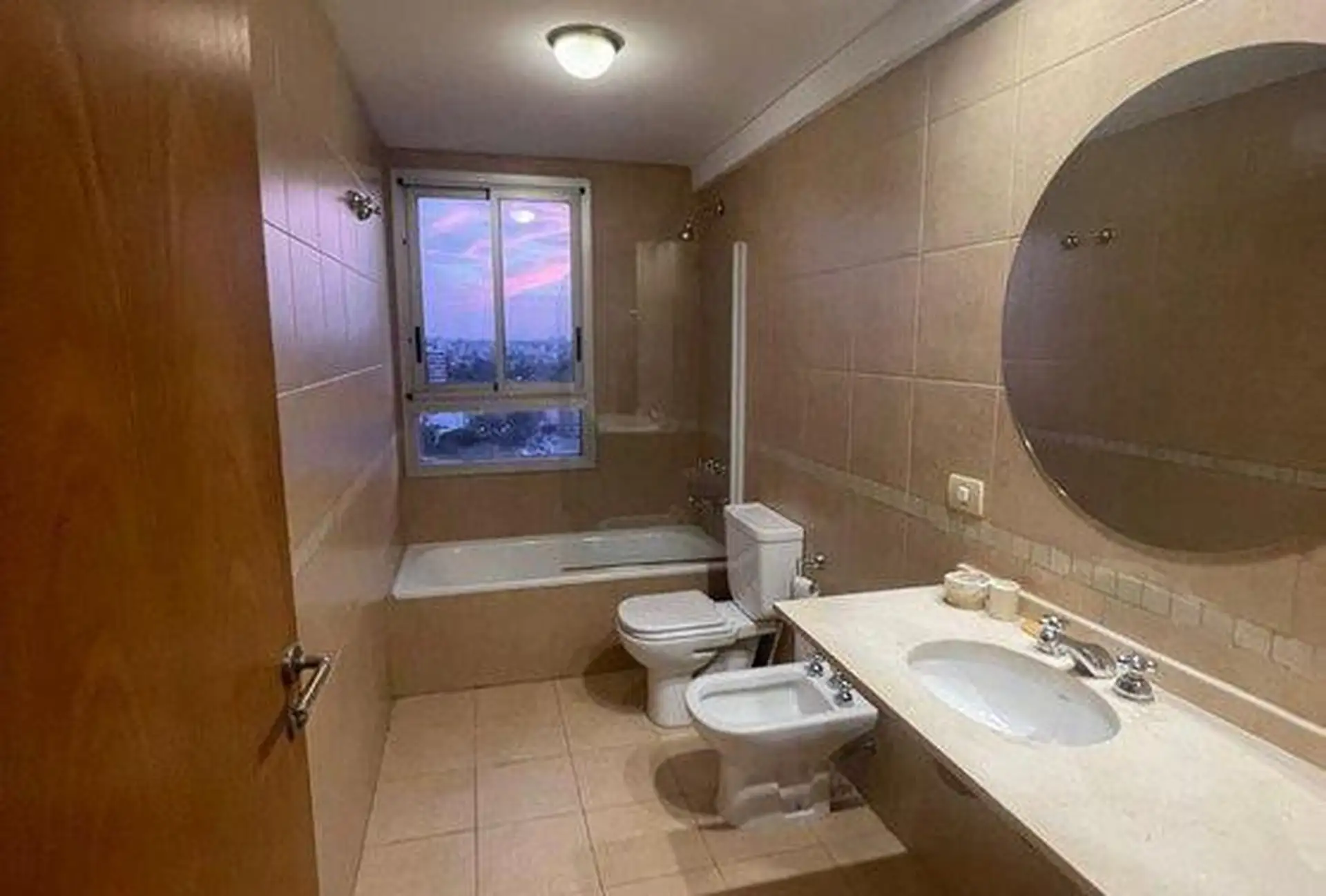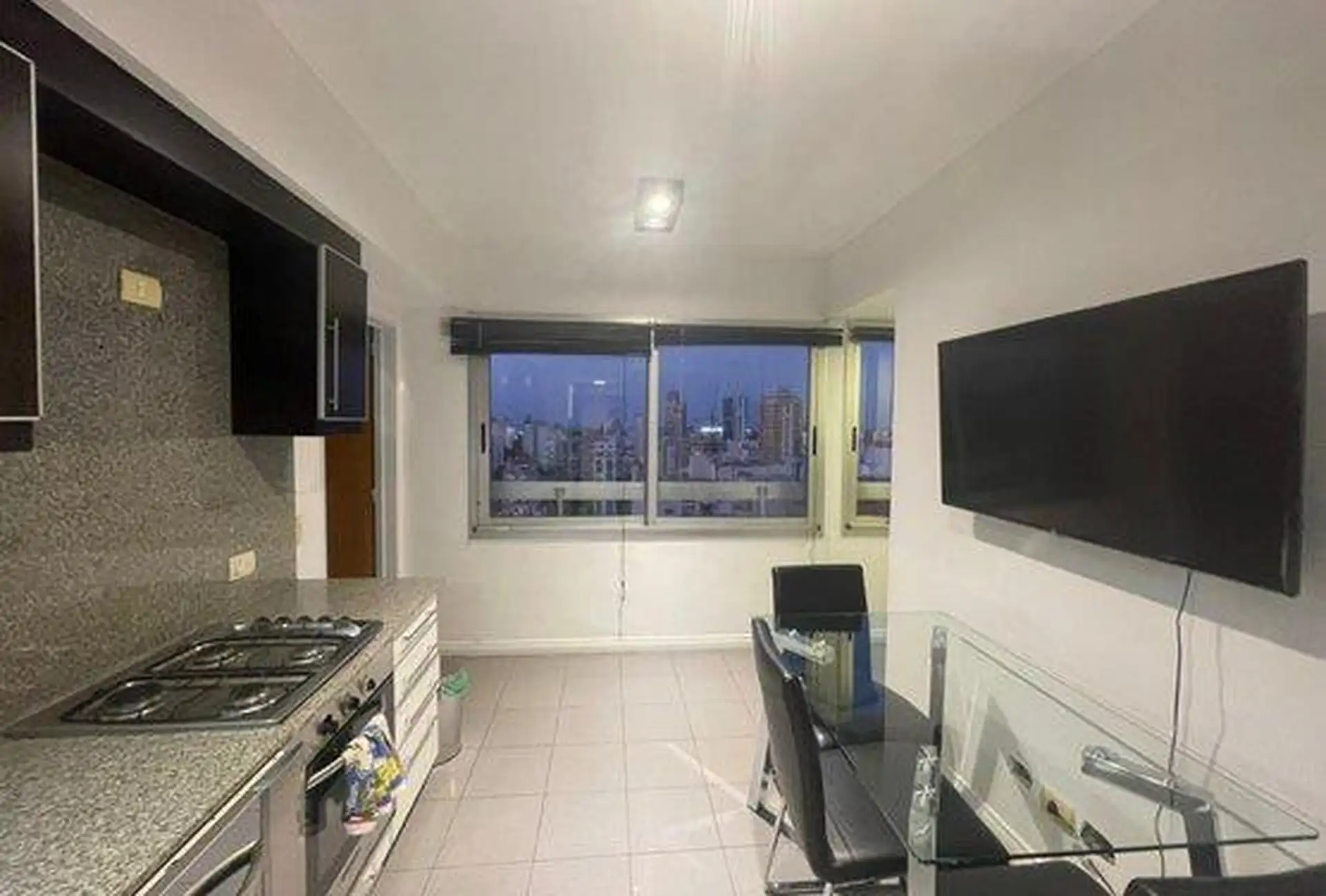 Semi-floor apartment for temporary rental in Saavedra, on García del Río between Moldes and Amenábar, at the border with Núñez. It has 3 bedrooms (1 en suite), 3 full bathrooms in total, an additional bathroom in the living area for guests, and a separate service bedroom and bathroom, with an independent kitchen. The unit is furnished and equipped, with radiant floor heating and cooling via one air conditioner in the main bedroom; it includes an assigned parking space and access to a pool, ping-