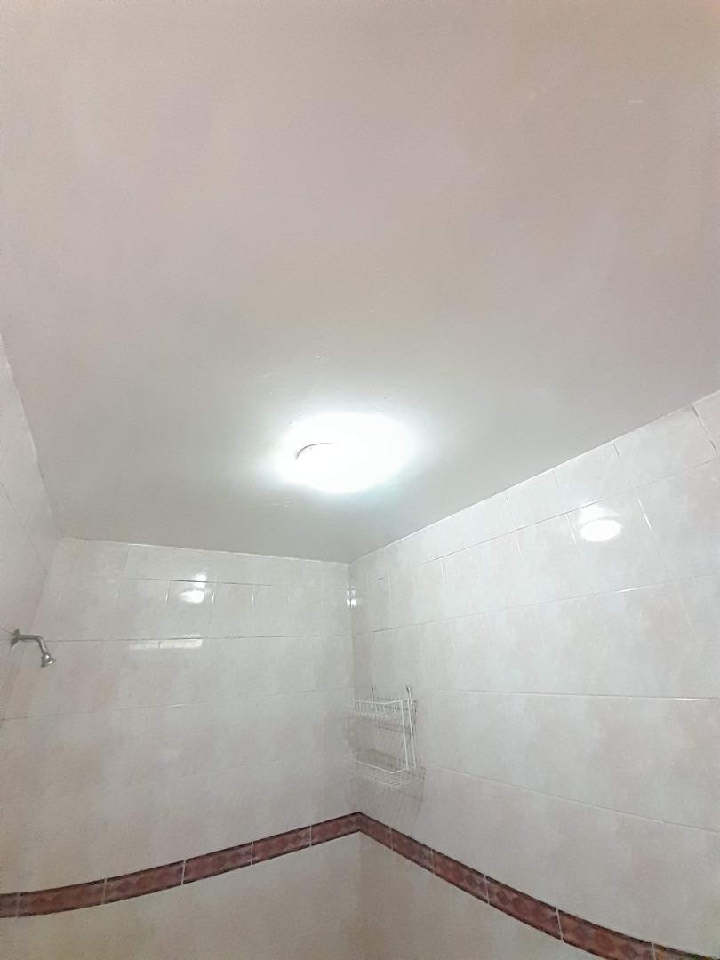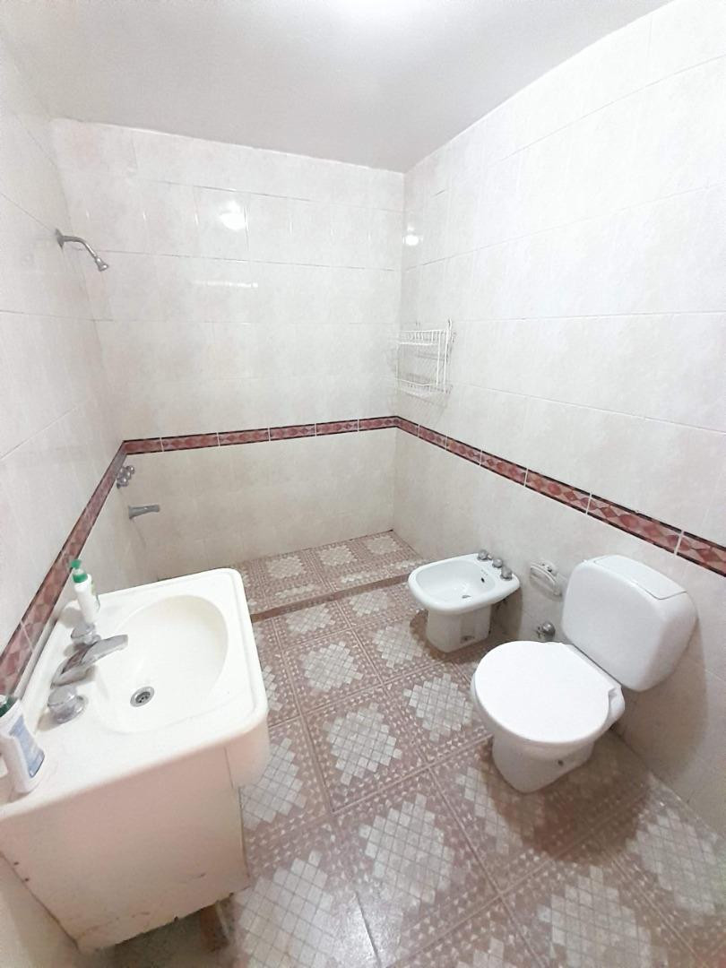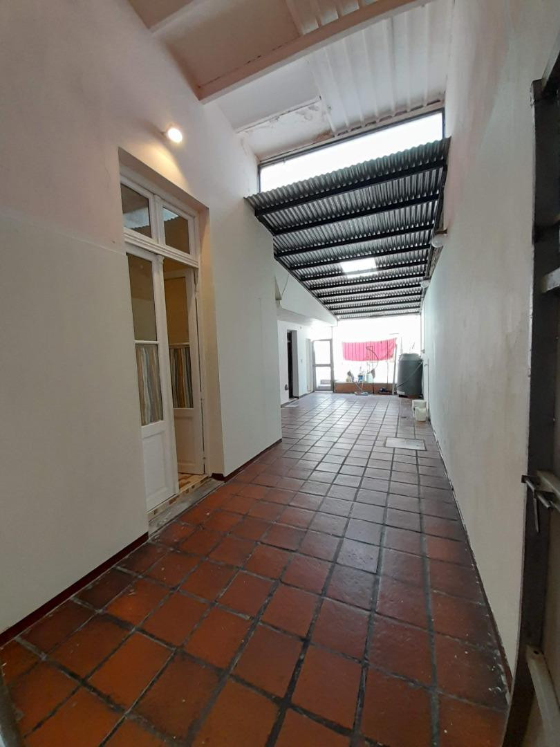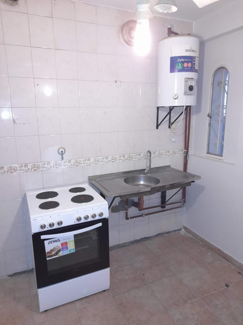 PH apartment with rooms facing the courtyard (contrafrente). There is a backyard patio with a grill and a semi-covered patio connecting the main hallway to the bedrooms and bathroom. The unit runs on electricity only, with a four-burner electric cooktop and electric oven in the kitchen.