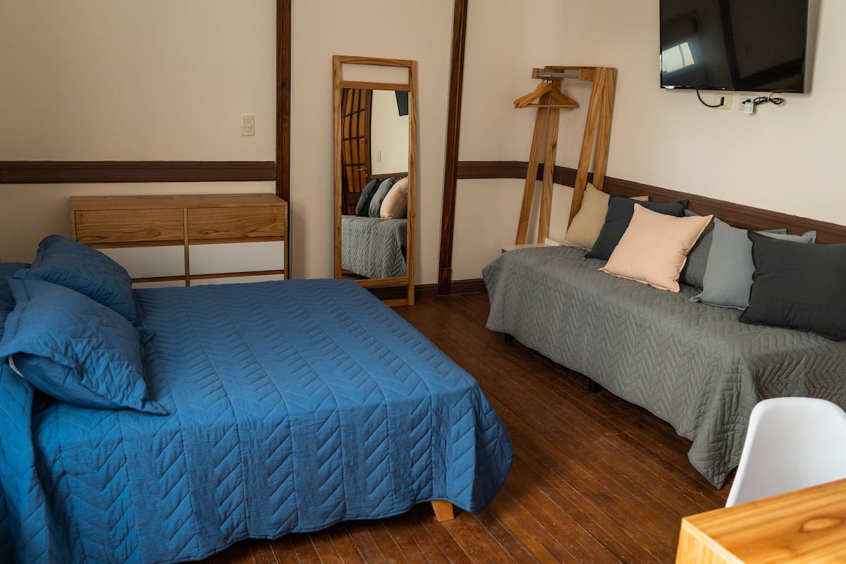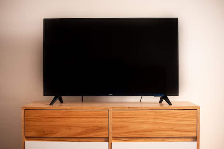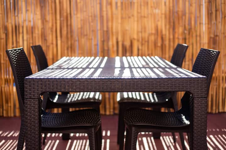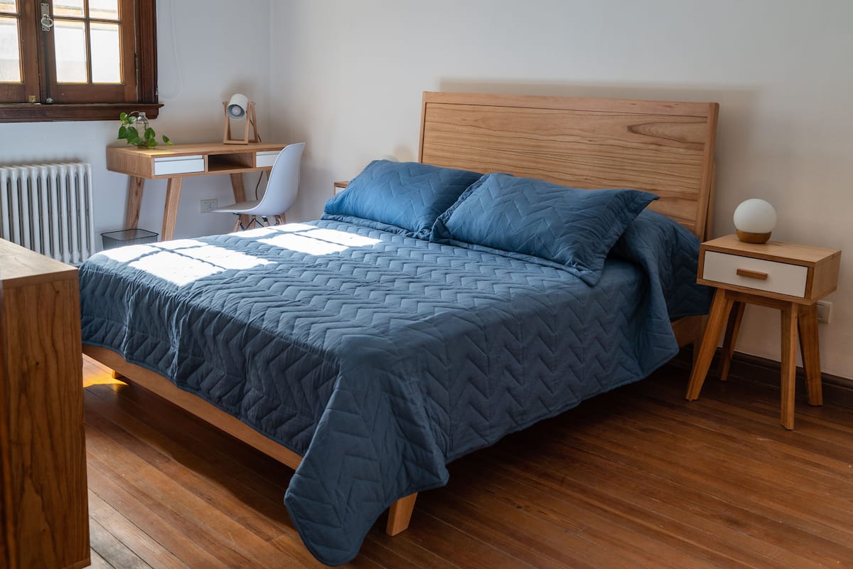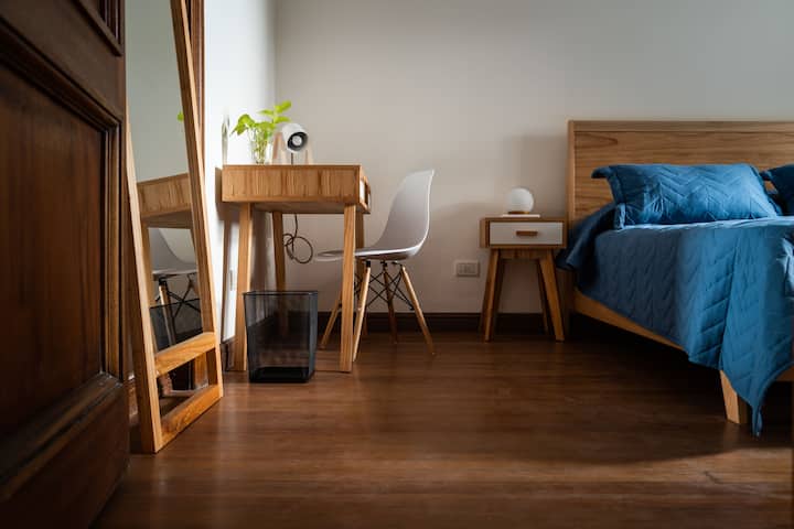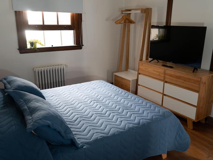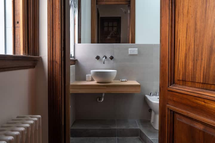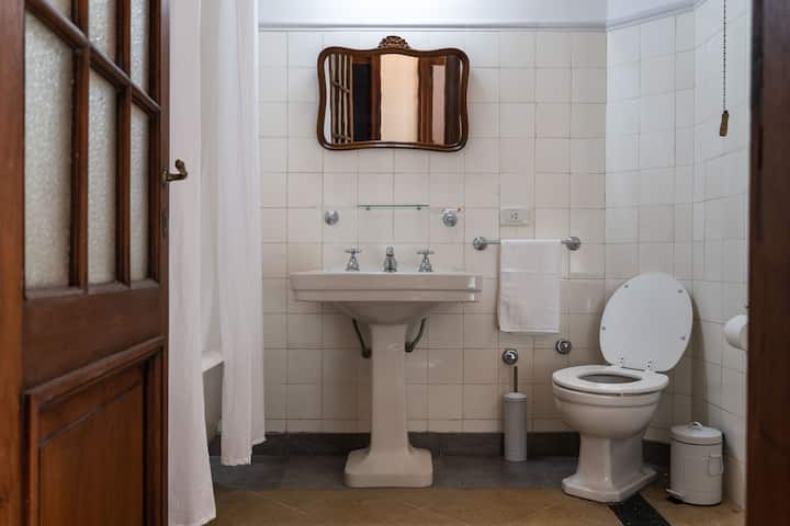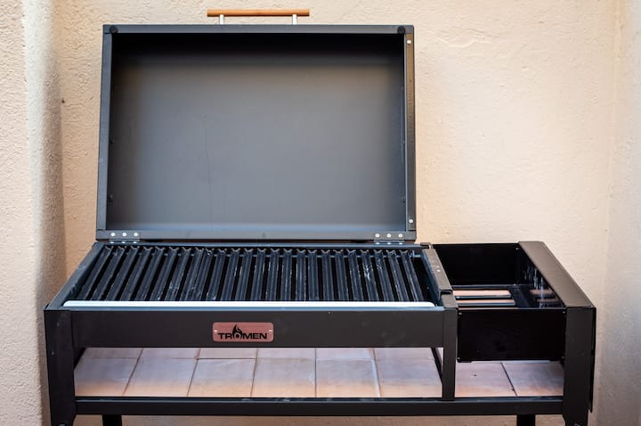 Apartment with 4 bedrooms, each with a private bathroom. The fully equipped kitchen opens to a living room and there is a large terrace with a grill and furnished seating. All rooms have air conditioning and radiators, plus a 43-inch smart TV and a work desk. WiFi up to 300 Mbps is available throughout the home. The entrance and hallway are shared with the hostess who lives upstairs.