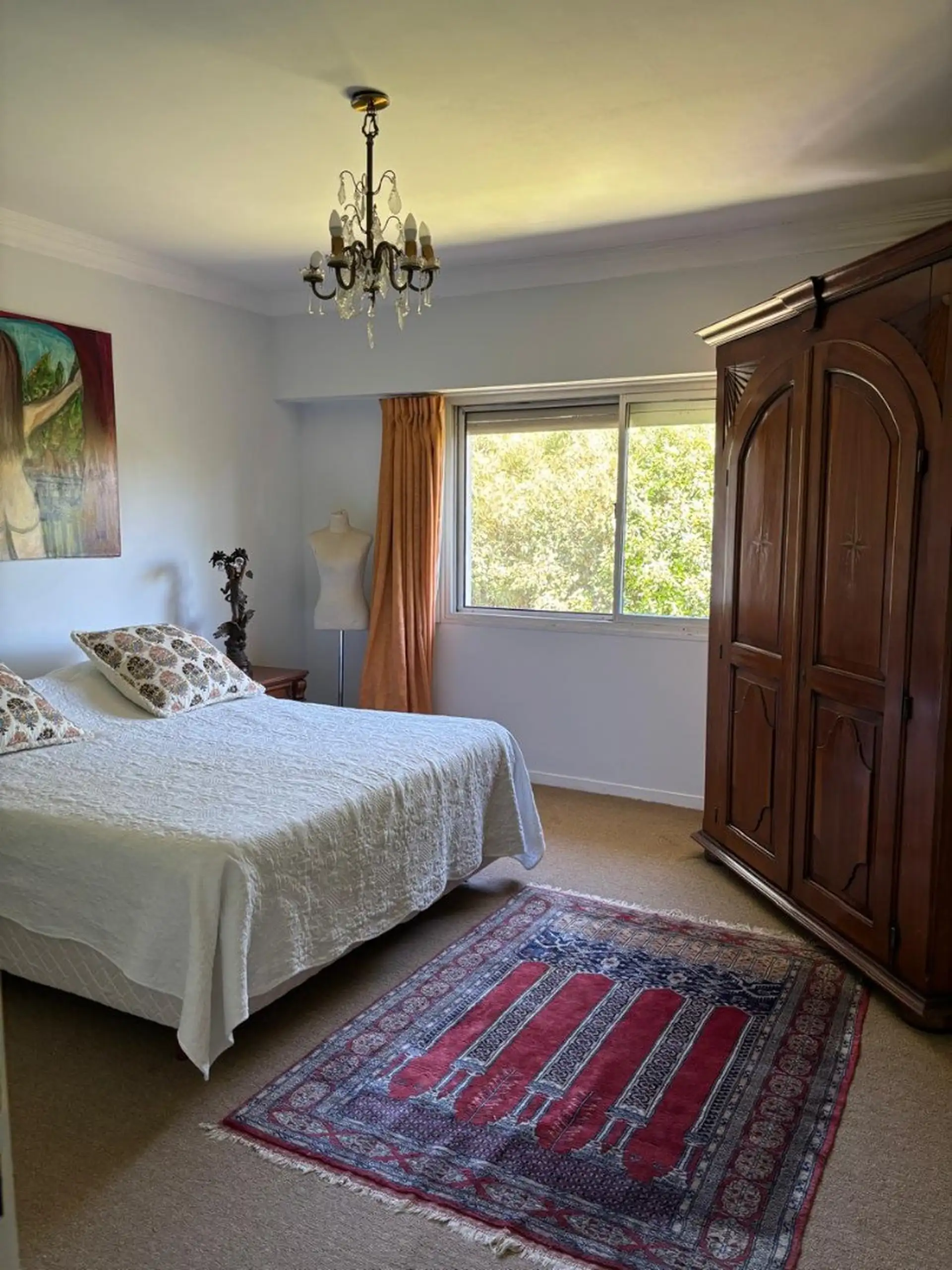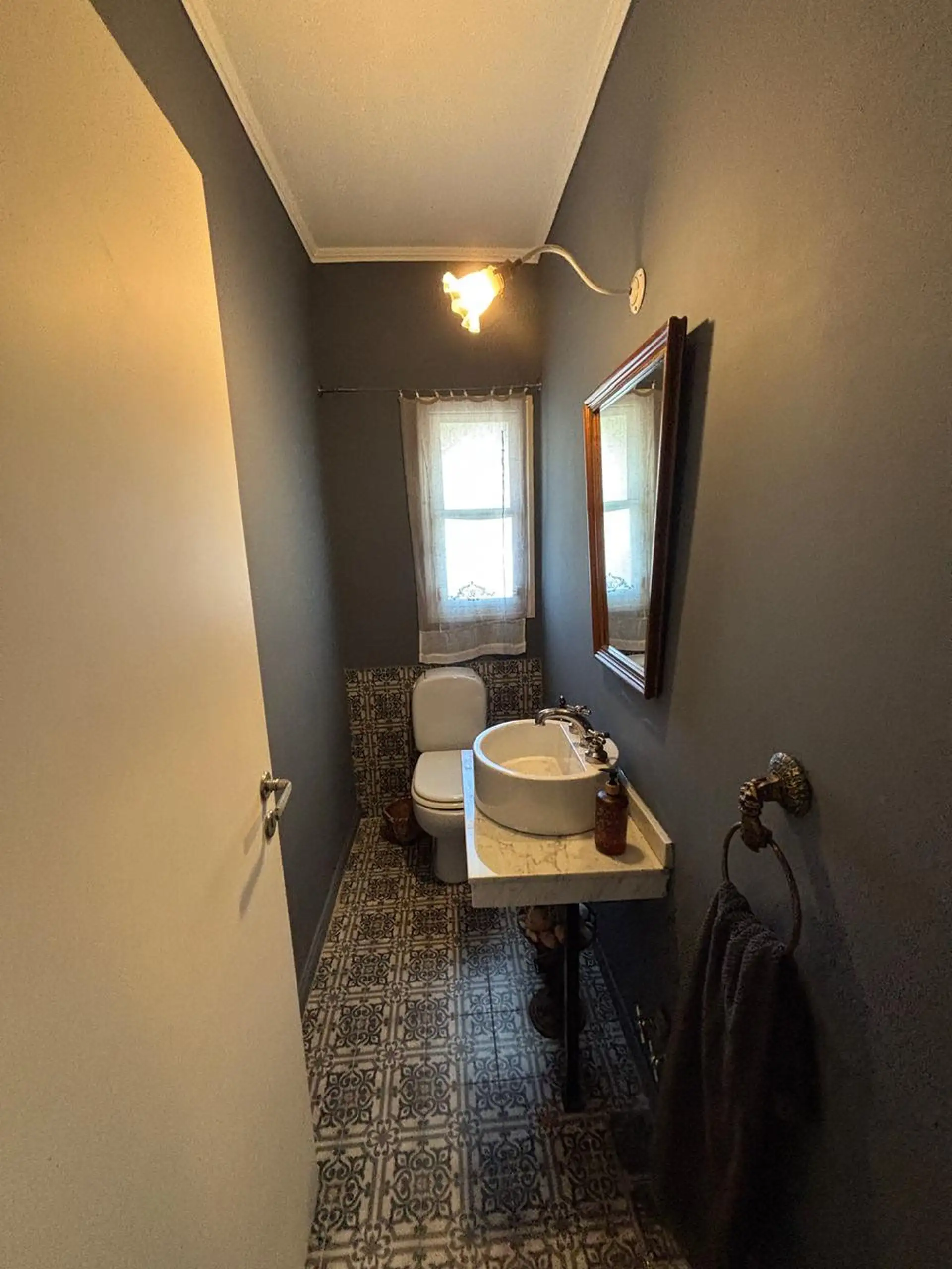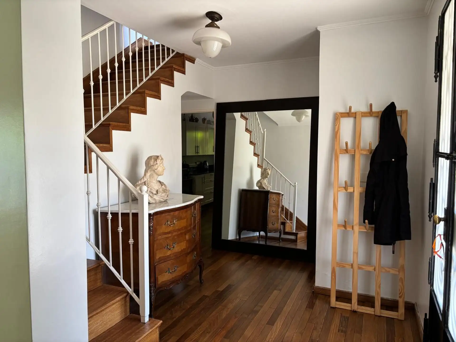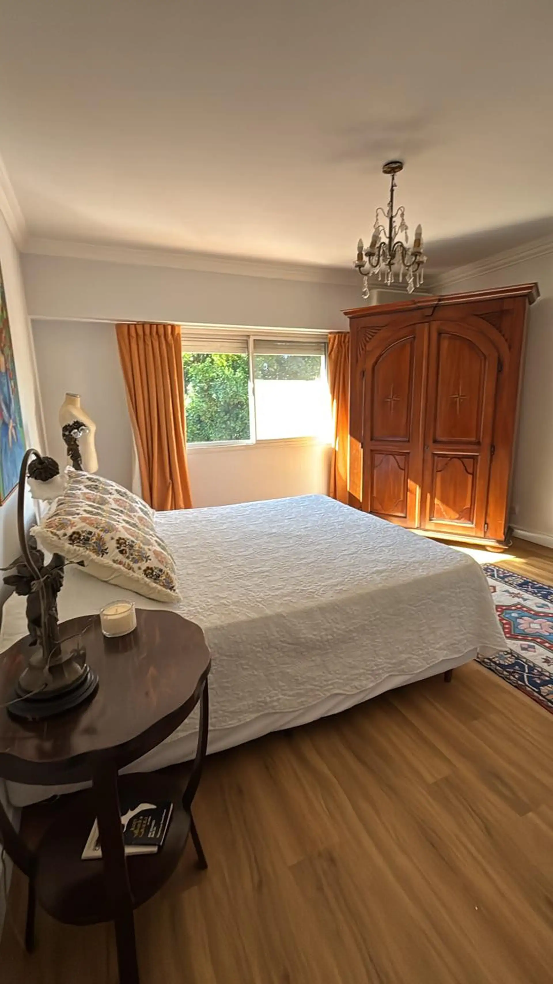 Chalet-style house in the gated community Rincon del Arca, set over 3 storeys. Ground floor has a lapacho floor, fireplace, a reception toilet, an L-shaped living-dining room with air conditioning, a modern kitchen with a daily dining area, access to a gallery and large windows to the garden, plus a full laundry and a service bedroom with a shower bathroom. The first floor includes a distribution hall with a desk and air conditioning, 4 bedrooms (2 en suite) with a main suite featuring a jacuzzi