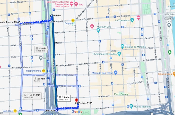 Three apartments in the same building in San Telmo and Monserrat. Two units are in San Telmo and a third is one stop from Subte (10'). The main building has a pool, a BBQ grill area, a gym and a laundry room. Each apartment accommodates up to 13 people and is provided with white linens plus 1 set of towels per person. Parking is available nearby for both buildings.