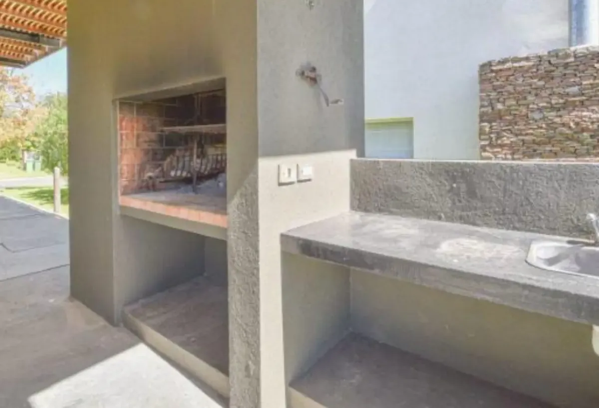 Two-storey house on an internal lot in Tigre. On the ground floor there is a living-dining room with a wood-burning fireplace and direct access to the garden, a bedroom or study, a guest toilet and a service room with a bathroom. The kitchen has Johnson melamine cabinetry, a breakfast bar, a daily dining area, a black Brazil marble countertop and a laundry area. Outside there is a large covered gallery with a grill and a bar with a wash basin, a landscaped garden with automatic sprinkler irrigat
