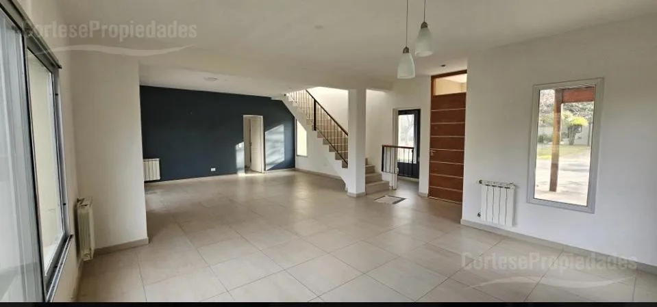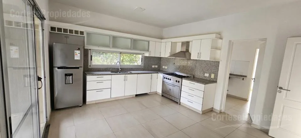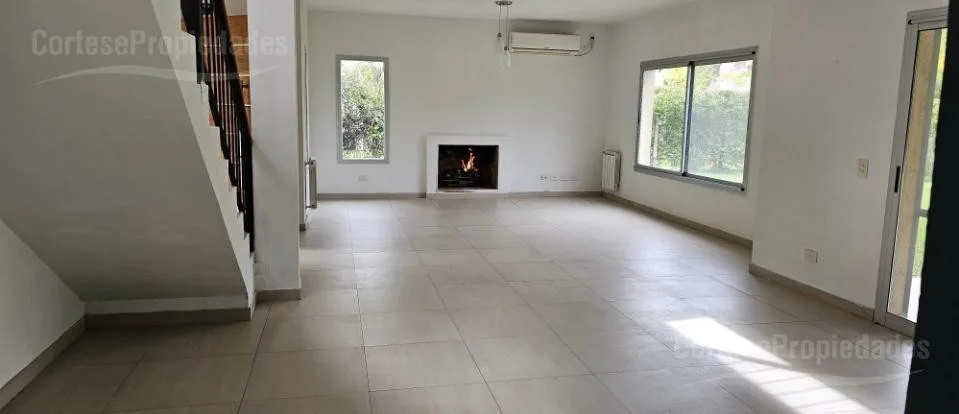 House on an interior lot in Villanueva, Tigre. Spread over two levels, it has a large living-dining room with a fireplace and access to the gallery, a reception toilet, and a room with a full bathroom that can be used as a service room or office. There is a spacious kitchen-dining area with access to the gallery, a master suite with garden views plus dressing room, and 2 additional bedrooms sharing a full bathroom. Outside there is a landscaped garden with automatic irrigation, a 5x10 pool, and