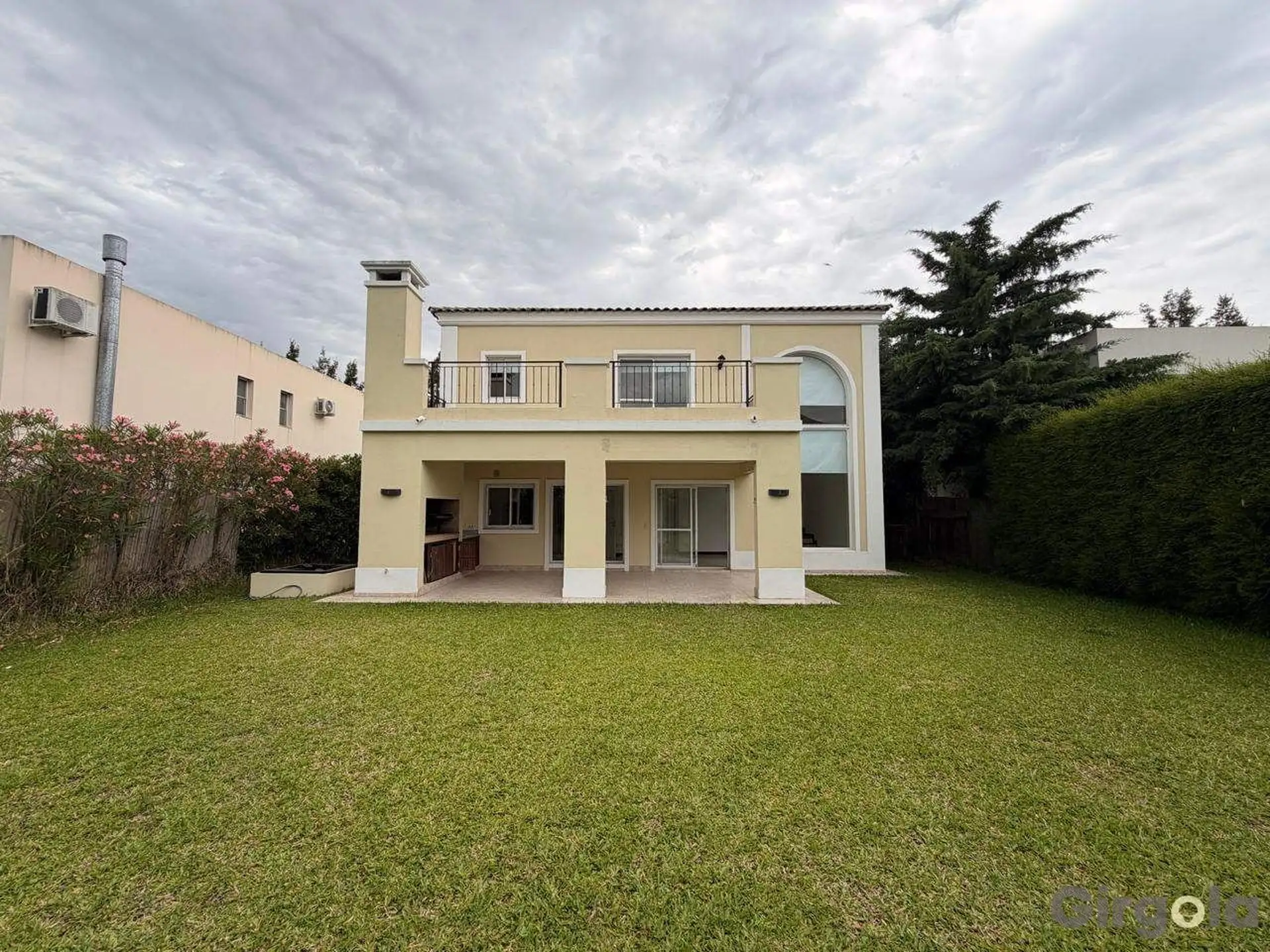 House for rent in Los Sauces, Nordelta, Tigre. Total land area is 600 m², with 248 m² covered. There are 38 m² of gallery and 38 m² of balcony in the master suite. The layout includes 3 bedrooms plus a ground-floor room with a bathroom, along with 1 en-suite bathroom for the principal bedroom, a separate full bathroom for one bedroom, an additional bedroom without a bathroom, and a downstairs toilet. Covered parking, a grill (parrilla), and a laundry area with storage and a washing-machine pre-i