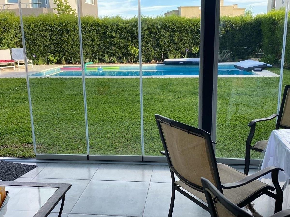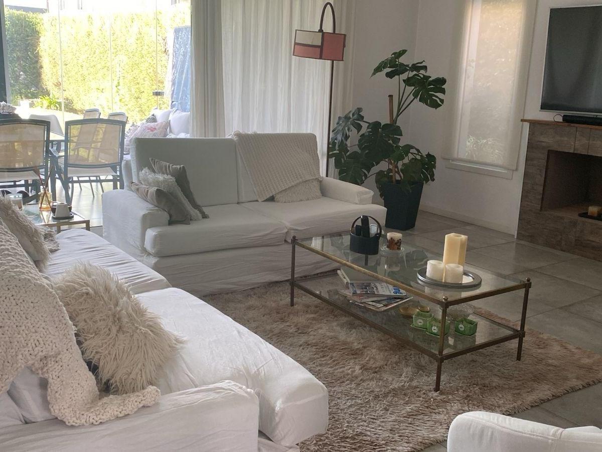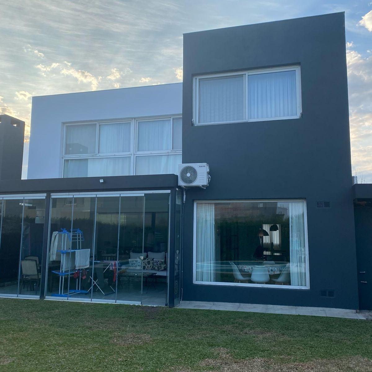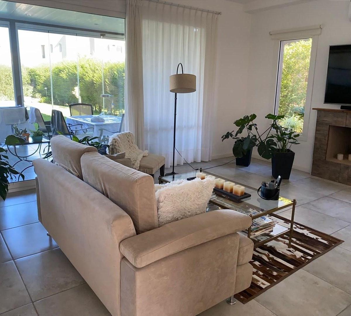 Modern four-bedroom house in Las Tipas, Nordelta. Ground floor includes a living-dining area, integrated kitchen, office or maid’s room, guest toilet, separate laundry, semi-covered gallery, landscaped garden with automatic irrigation, private pool and a double covered (assigned) parking space. Upstairs has a primary bedroom en suite with dressing area, two secondary bedrooms with wardrobes, a shared bathroom and a playroom or TV room. The property may be rented furnished for u$s3.700. The Las T