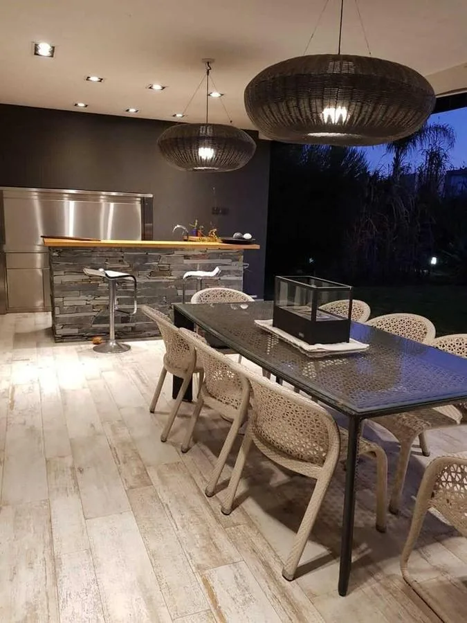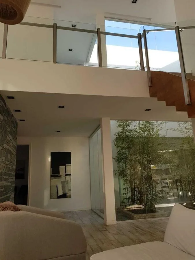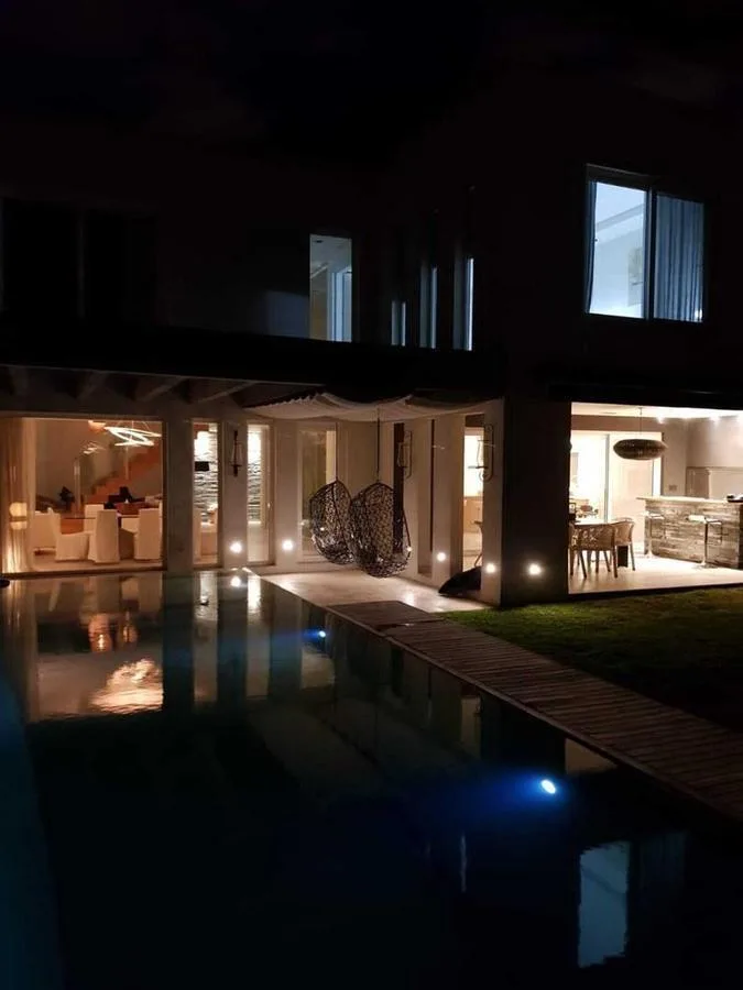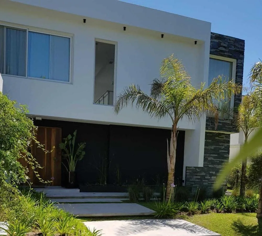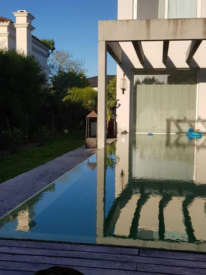 Furnished and equipped four-bedroom house in Los Castores, Nordelta, Tigre. Set on an interior lot, it includes a reception hall, guest toilet, living and dining room with fireplace, winter garden, bright kitchen with storage space, separate laundry and a covered gallery with stainless-steel grill. Outdoors it has a pool and landscaped garden. The upper floor has a main en-suite bedroom with dressing room, a second en-suite master junior, two additional bedrooms sharing a full bathroom, and a st