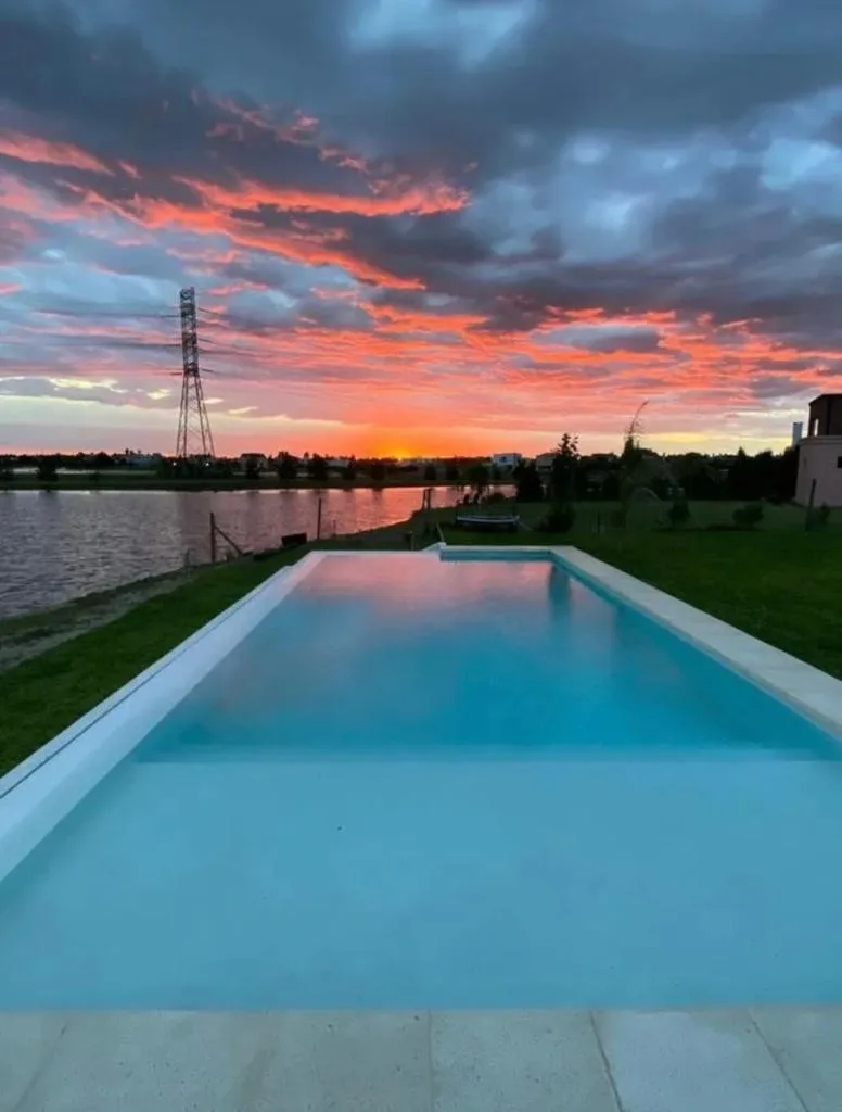 House over two floors overlooking the lagoon in Barrio San Gabriel, Villanueva, Tigre. Ground floor includes a reception hall, guest toilet, living-dining room with a fireplace, electrically powered full-opening window, kitchen with an island with electric oven and cooktop, a bedroom with shower bathroom, and a laundry area with independent access. Upper floor has a lounge that can be used as a family room or office, a primary suite with dressing room, and 2 additional bedrooms in semi-suite con