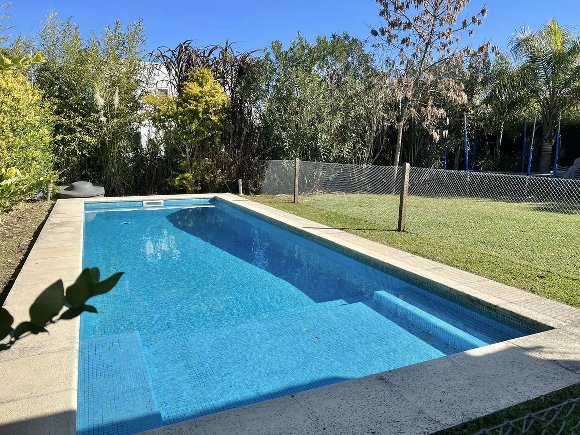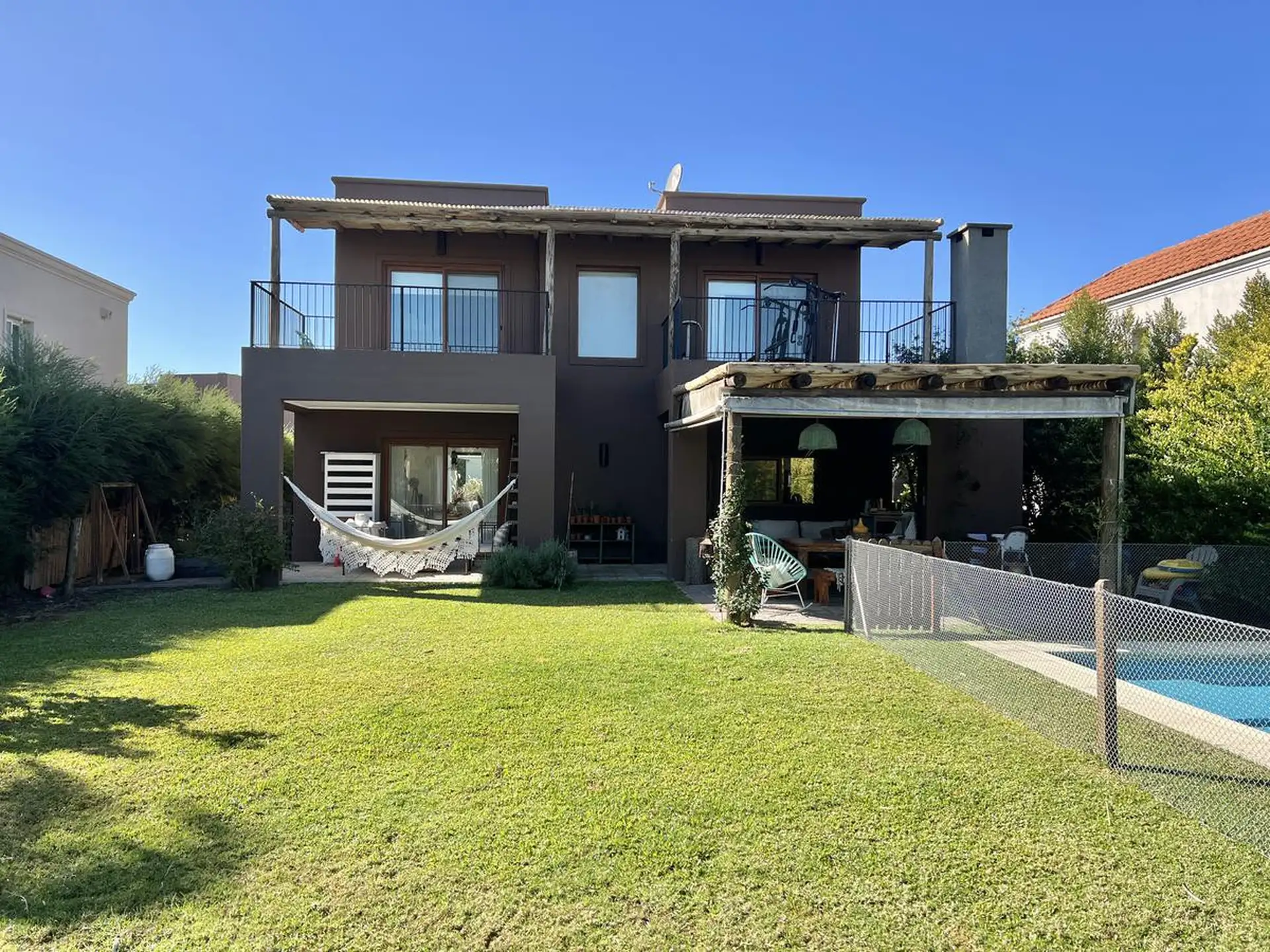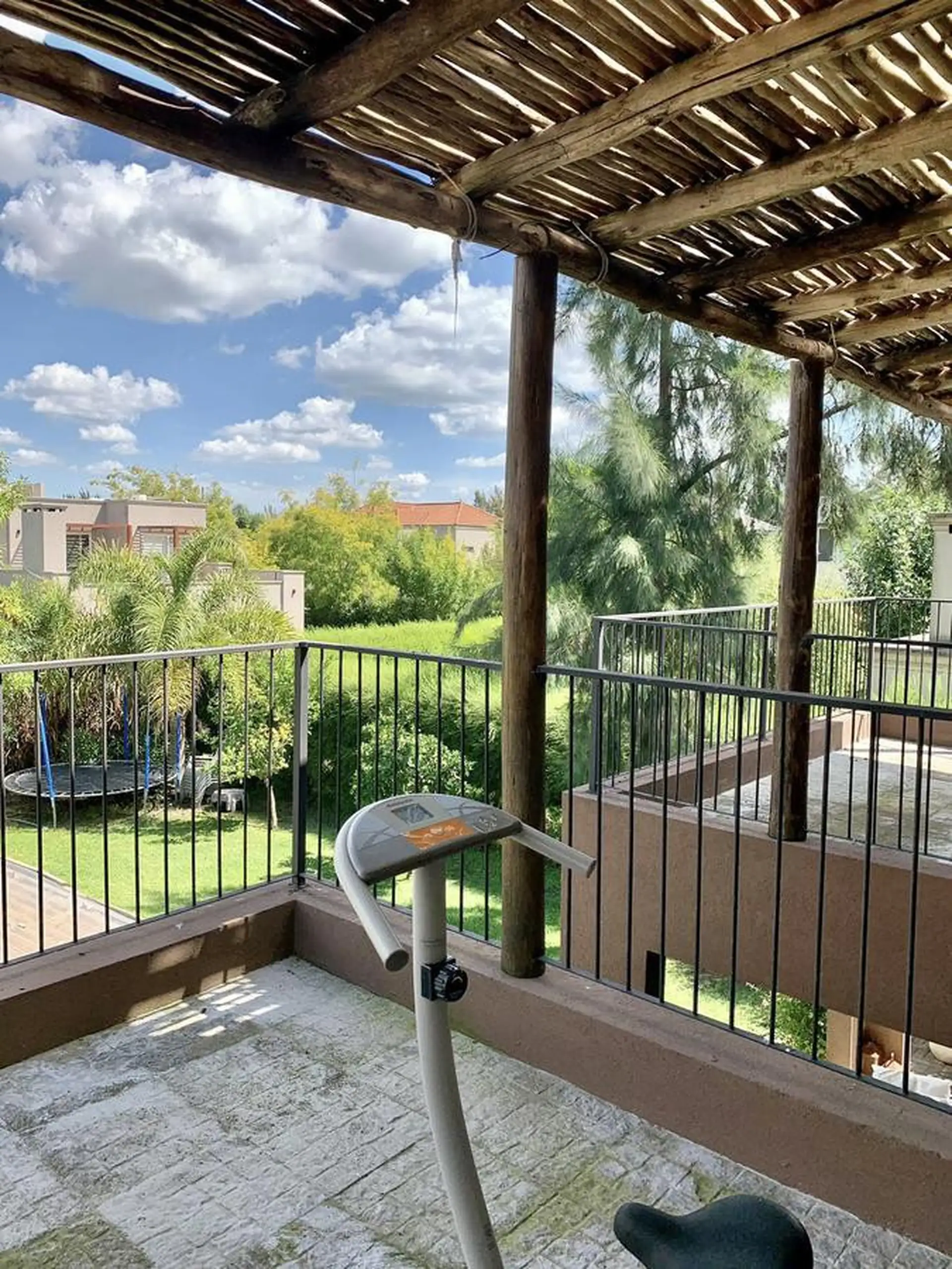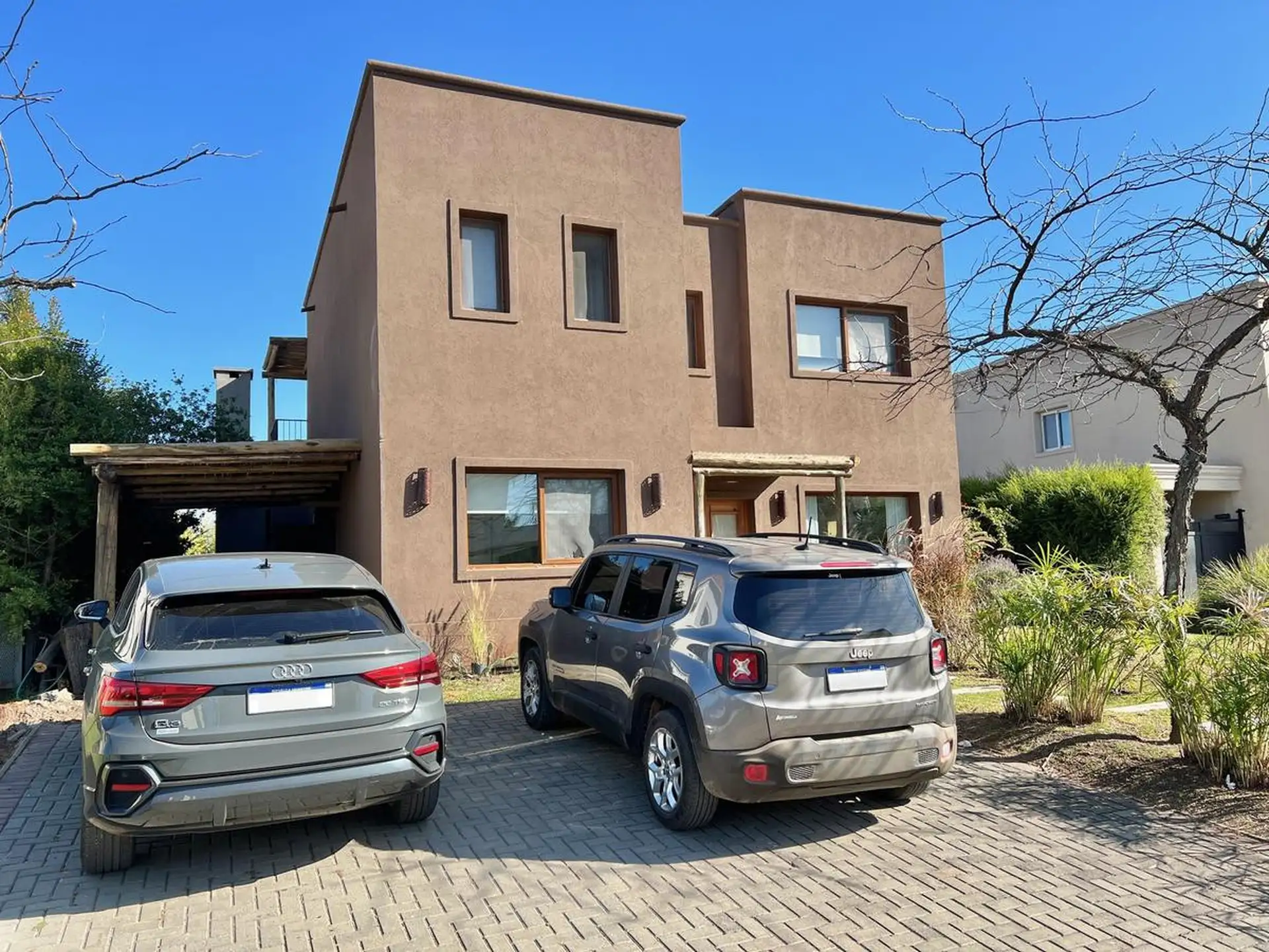 House in Los Sauces, Nordelta. The ground floor has a living-dining room facing the front and the park, a guest toilet, a kitchen with an eat-in area, and a service quarter with a bathroom that can be used as a playroom or as an additional bedroom/office in suite. There is a laundry room with a separate entrance. The upper floor has a master suite with a dressing room, a full bathroom with an antechamber, and a terrace, plus two bedrooms that share a second full bathroom; both have built-in ward