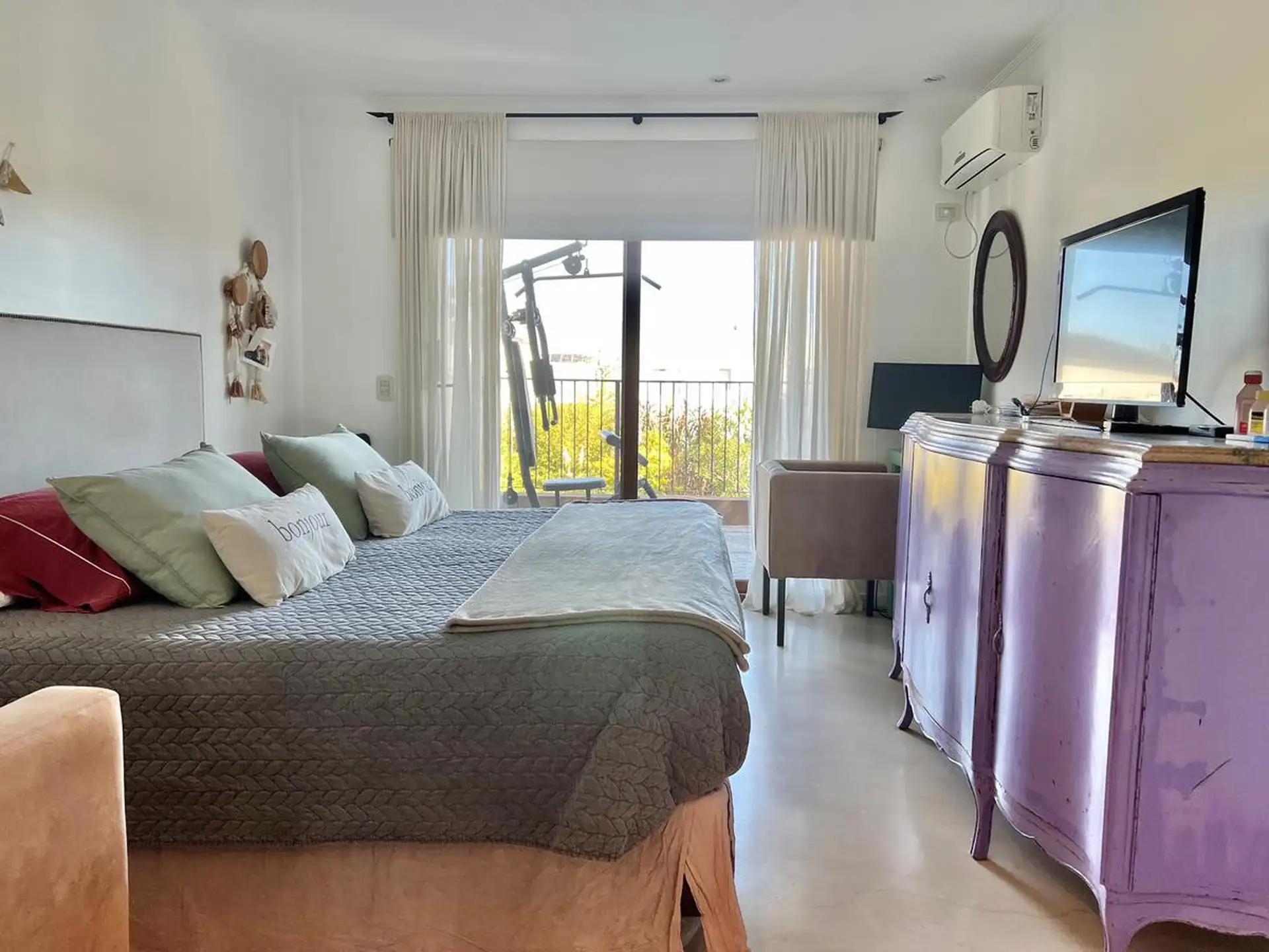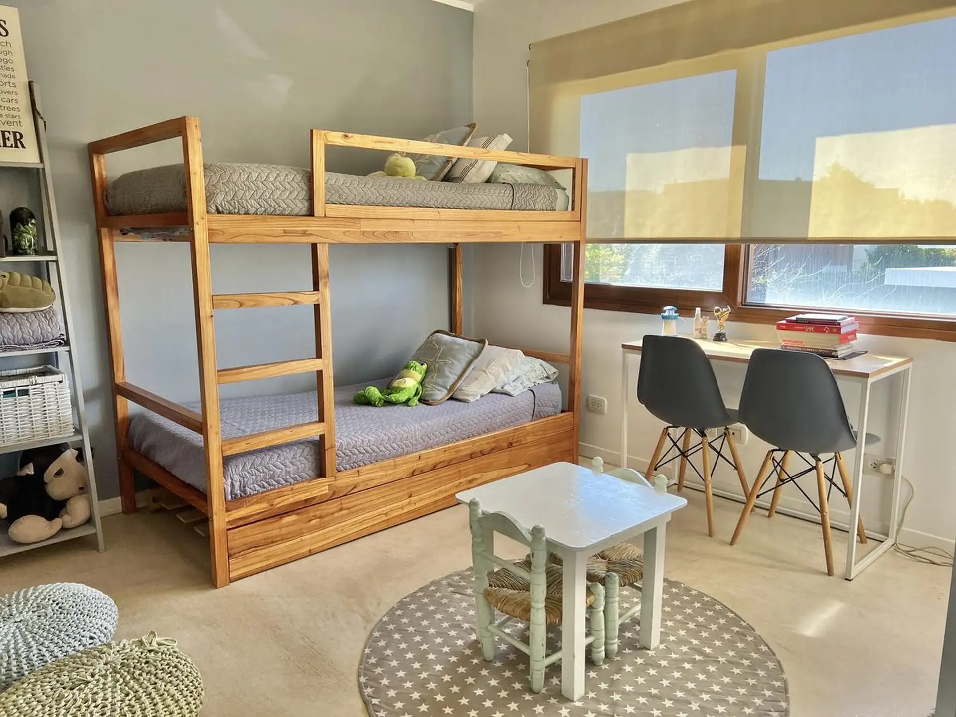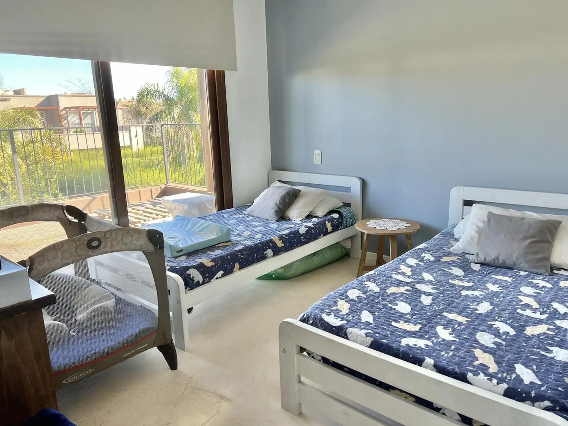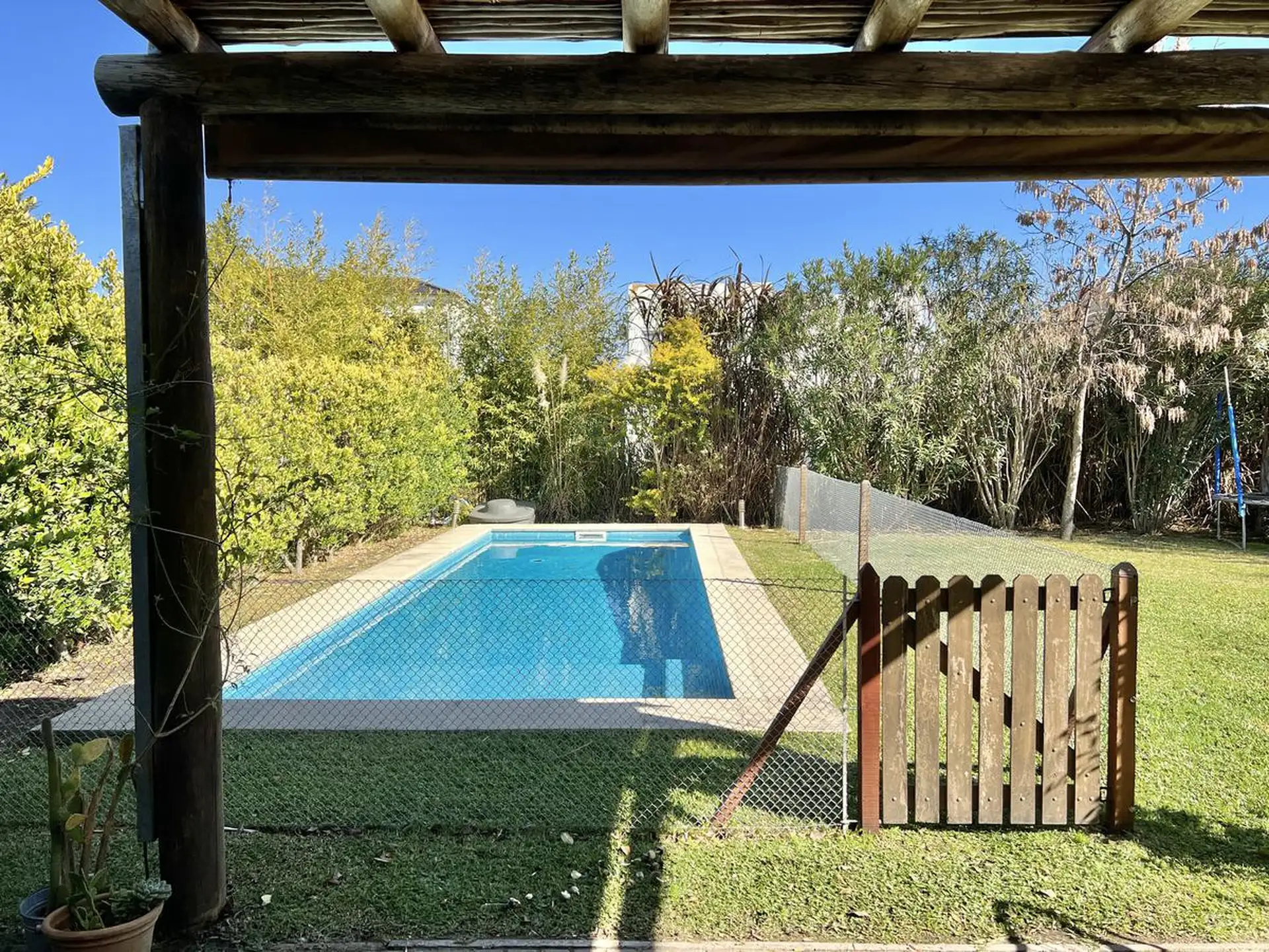 House in Los Sauces, Nordelta. The ground floor has a living-dining room facing the front and the park, a guest toilet, a kitchen with an eat-in area, and a service quarter with a bathroom that can be used as a playroom or as an additional bedroom/office in suite. There is a laundry room with a separate entrance. The upper floor has a master suite with a dressing room, a full bathroom with an antechamber, and a terrace, plus two bedrooms that share a second full bathroom; both have built-in ward