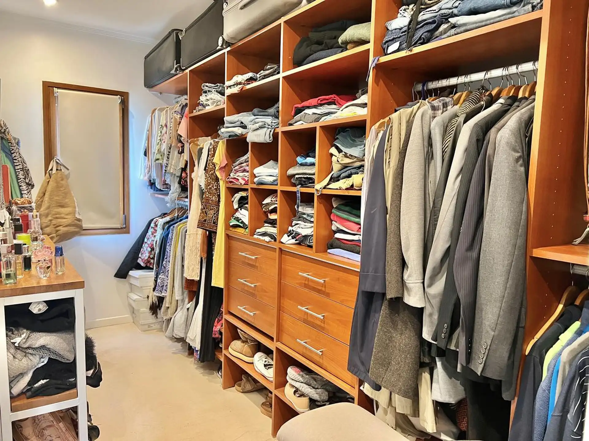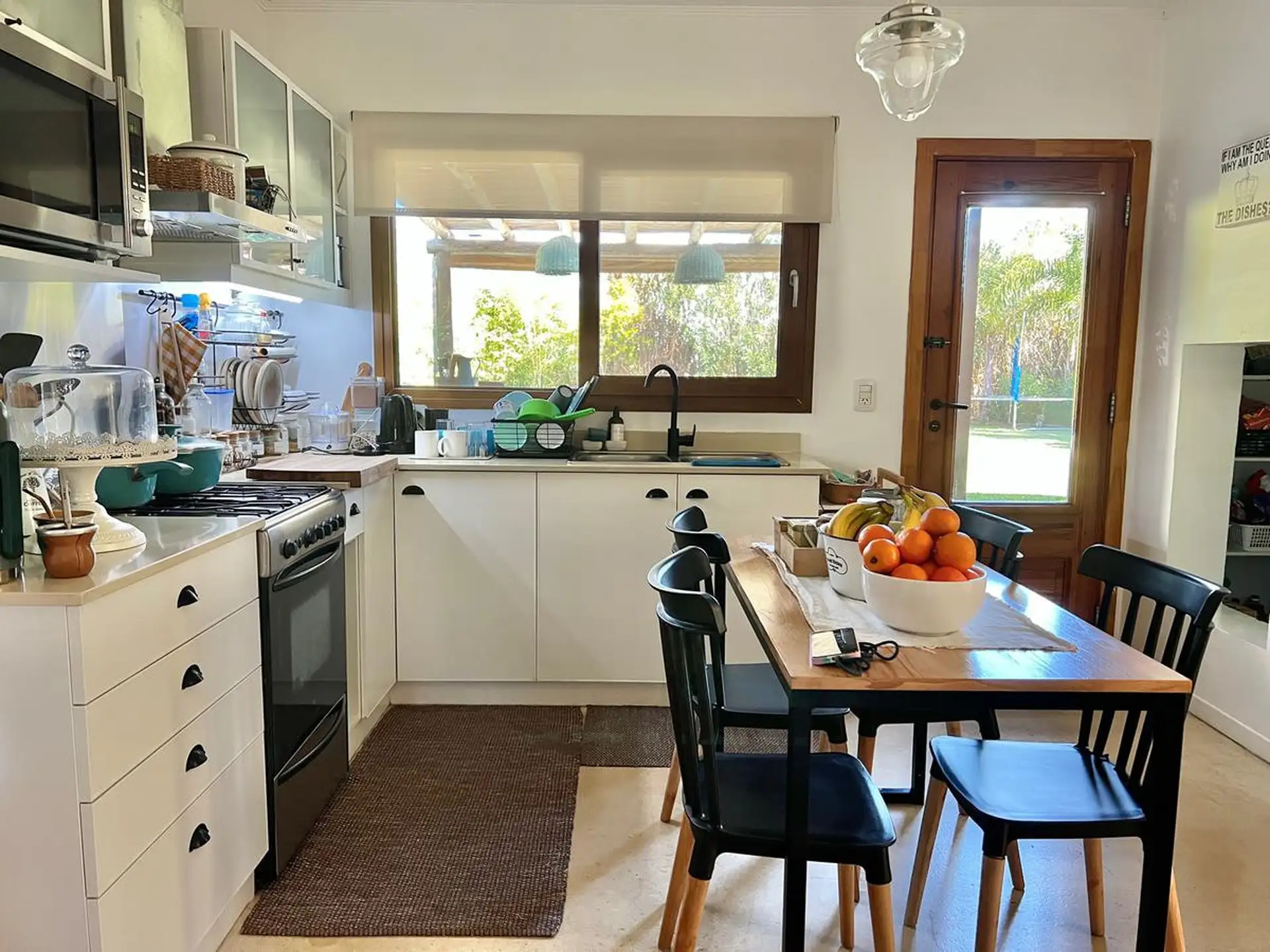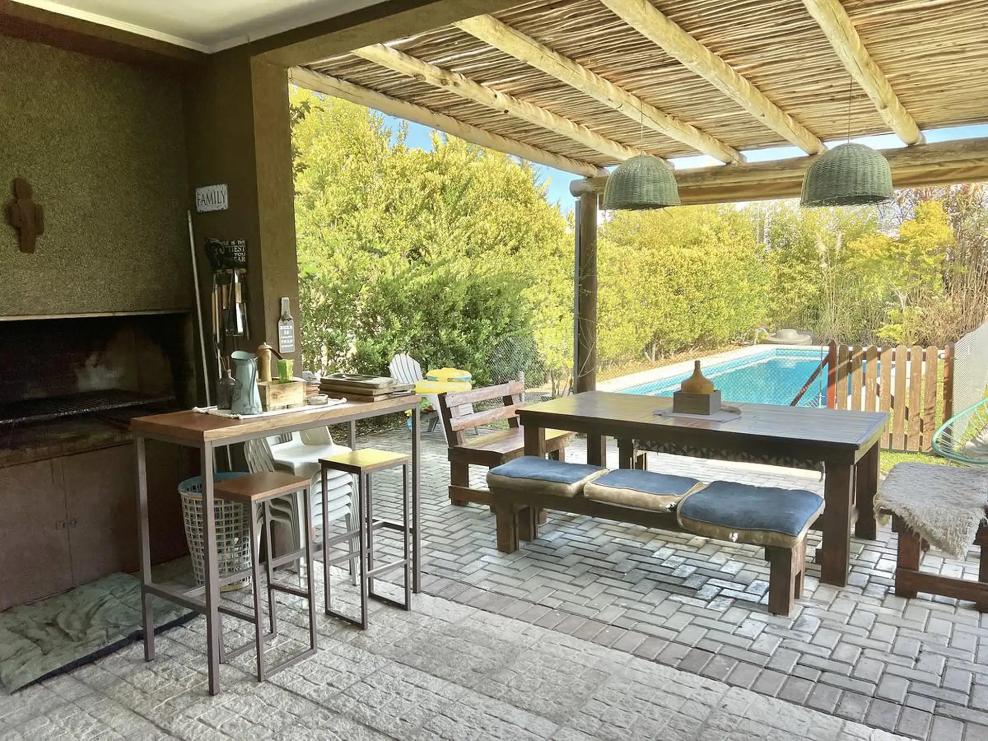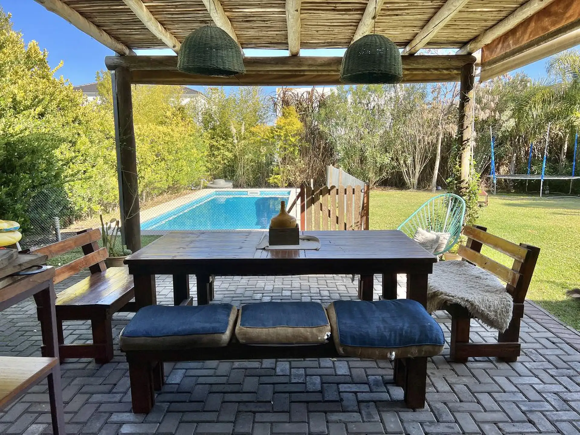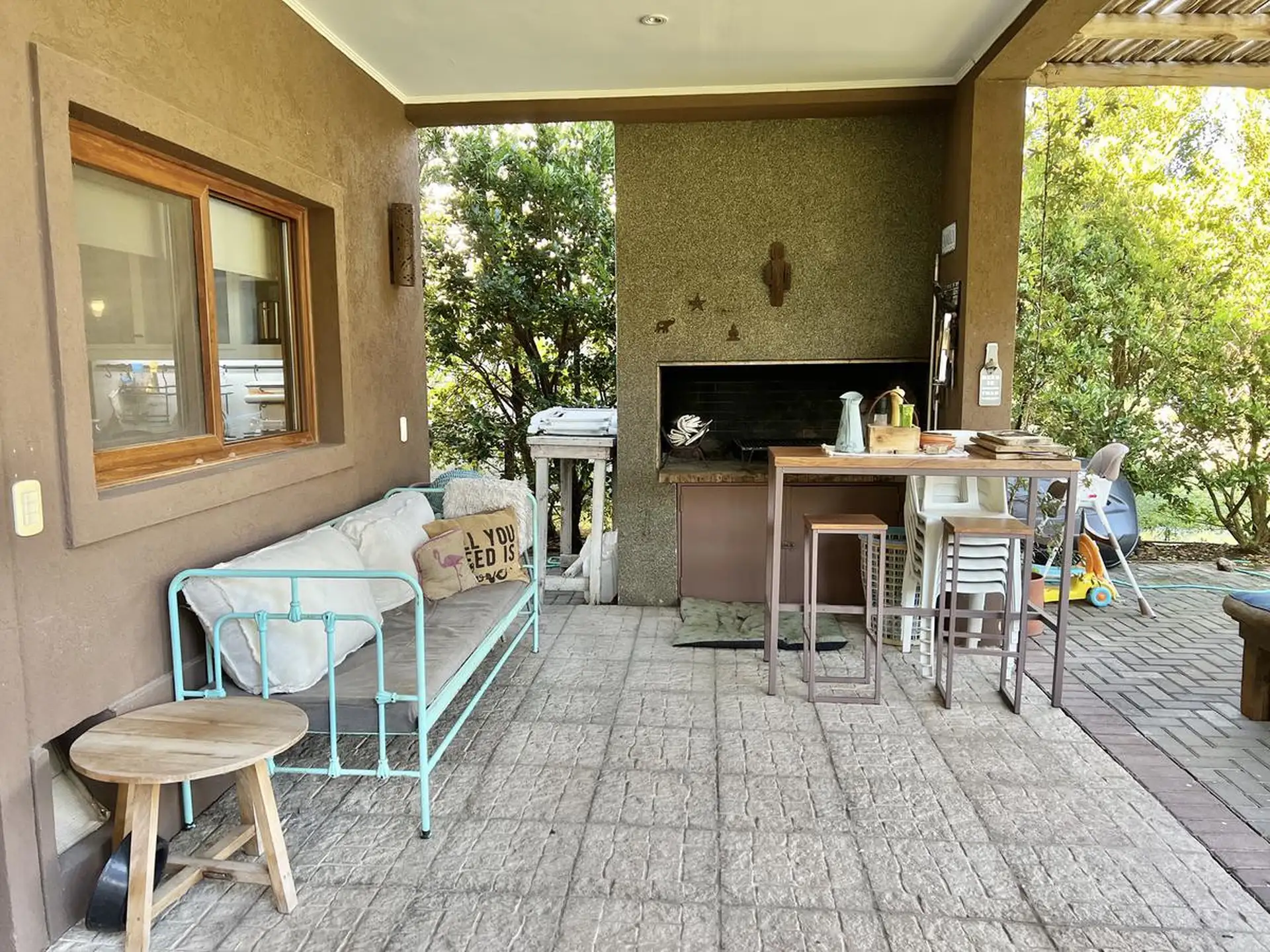 House in Los Sauces, Nordelta. The ground floor has a living-dining room facing the front and the park, a guest toilet, a kitchen with an eat-in area, and a service quarter with a bathroom that can be used as a playroom or as an additional bedroom/office in suite. There is a laundry room with a separate entrance. The upper floor has a master suite with a dressing room, a full bathroom with an antechamber, and a terrace, plus two bedrooms that share a second full bathroom; both have built-in ward