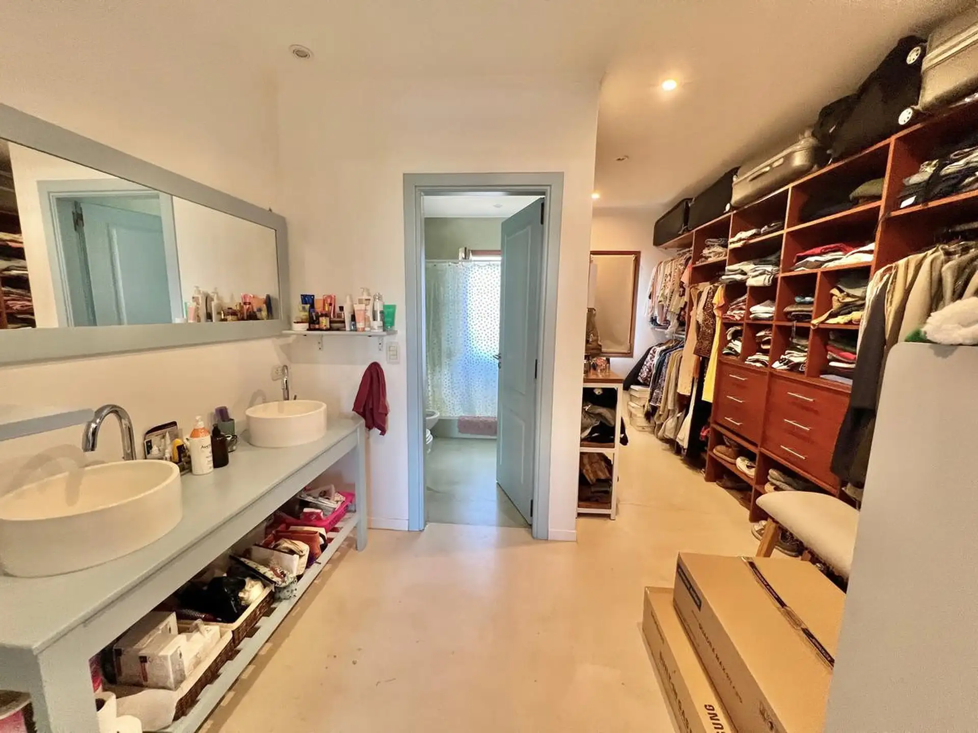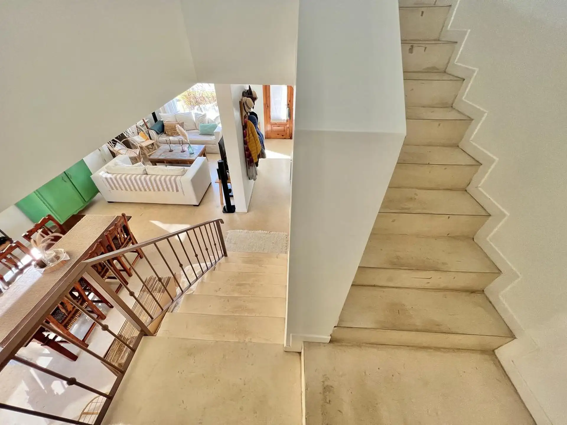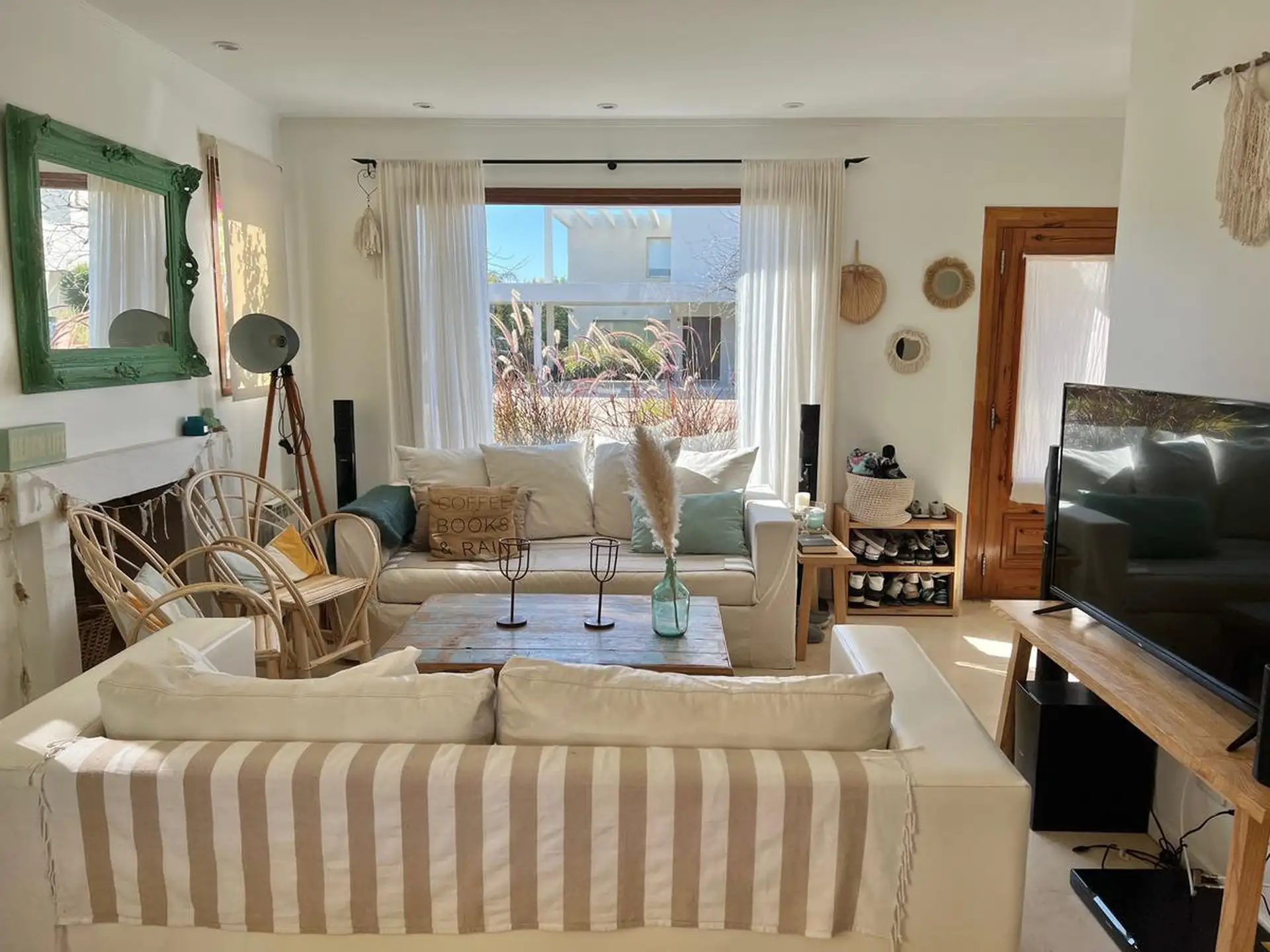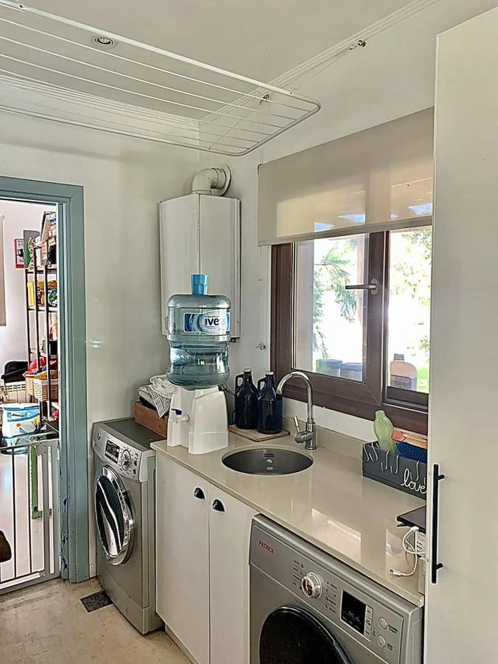 House in Los Sauces, Nordelta. The ground floor has a living-dining room facing the front and the park, a guest toilet, a kitchen with an eat-in area, and a service quarter with a bathroom that can be used as a playroom or as an additional bedroom/office in suite. There is a laundry room with a separate entrance. The upper floor has a master suite with a dressing room, a full bathroom with an antechamber, and a terrace, plus two bedrooms that share a second full bathroom; both have built-in ward