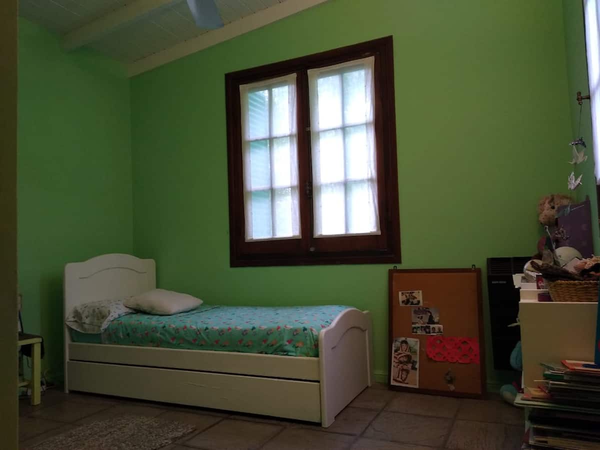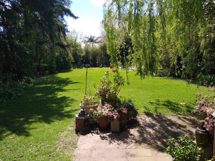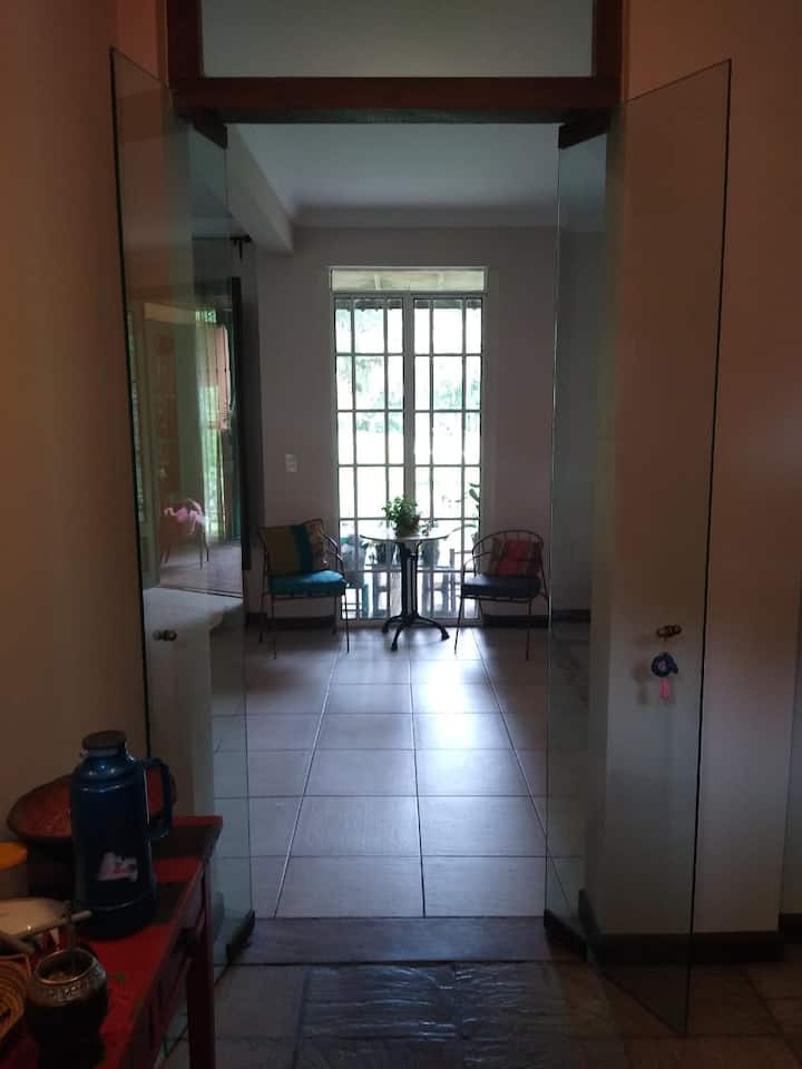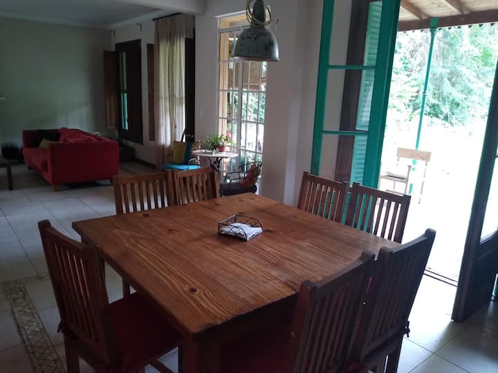 House on a property in Tigre with a gallery and pool. The ground floor has a hall, living and dining room with access to the gallery and garden, a living room, a toilet, a kitchen, staff quarters, and a laundry room. Upstairs there is a hallway, a living area, 4-bed suite, another bathroom, and space for 2 uncovered parking spaces, two blocks from the end of Tigre access and a shopping mall.