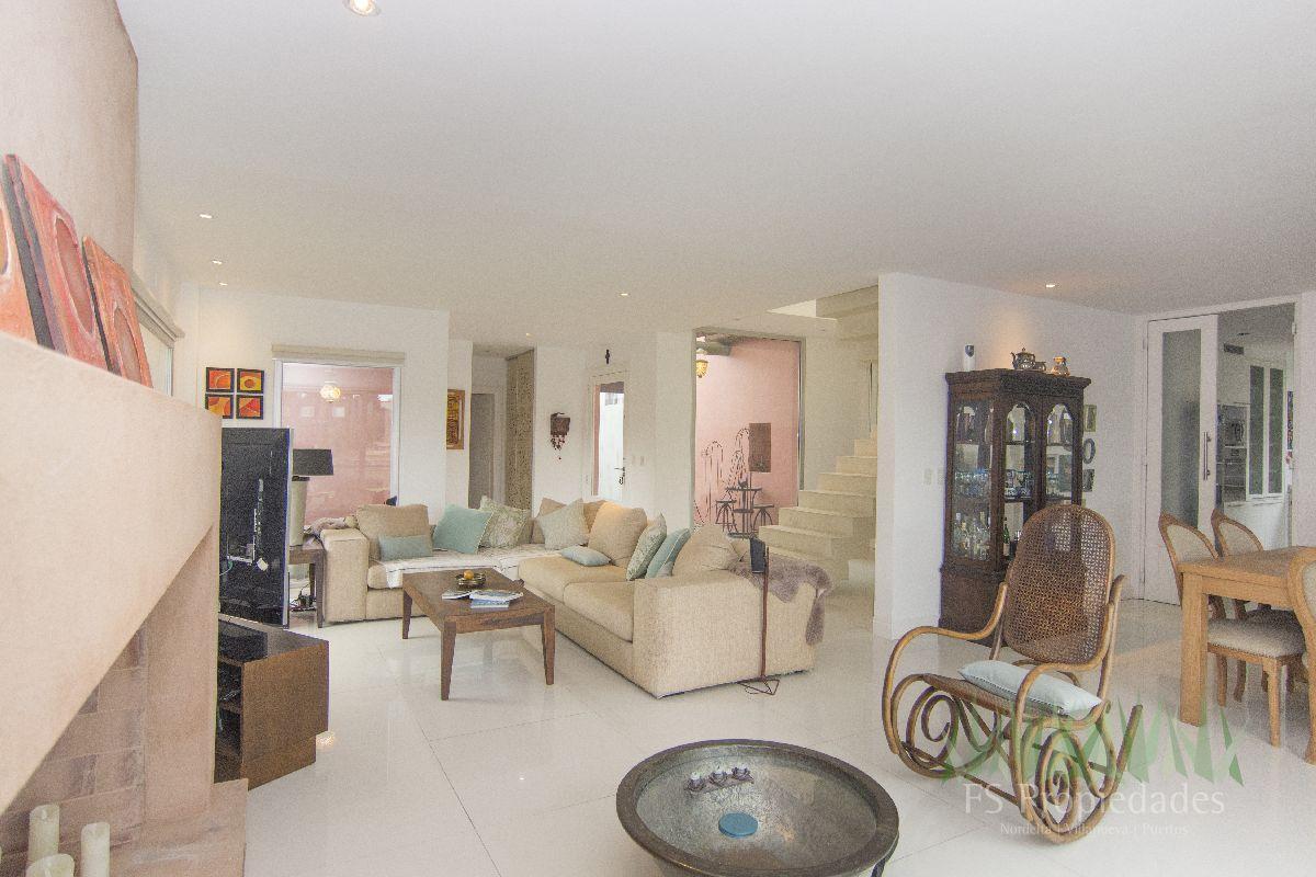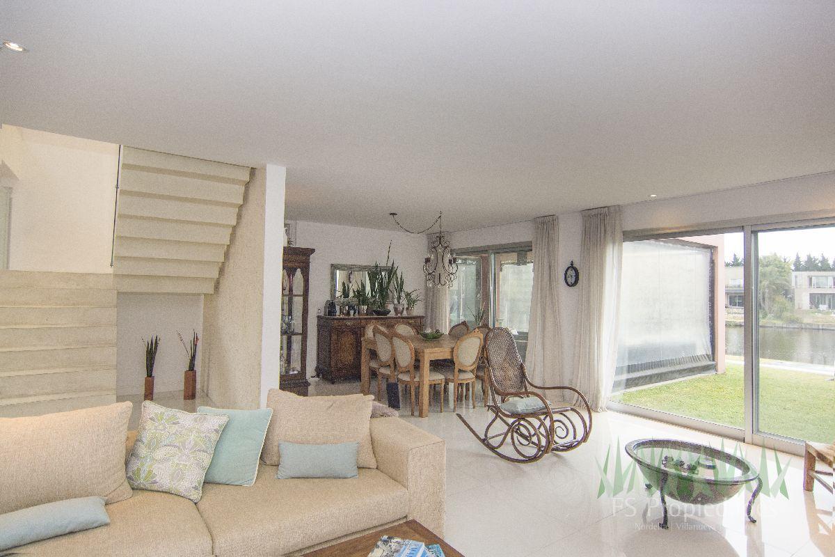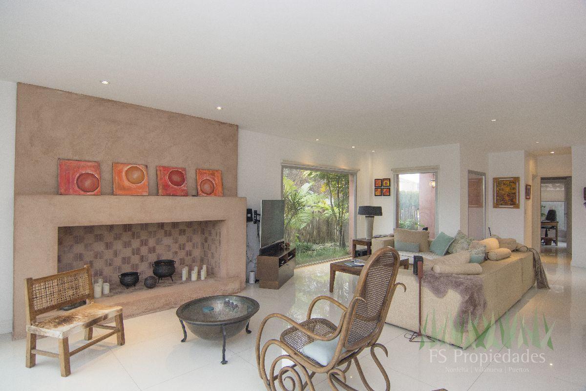 Mexican-style, modern house available from July 2026 in Los Sauces, Nordelta. The ground floor has a large reception area with a fireplace, a gallery with a grill, a garden with a pool and lakefront. The kitchen has granite countertops, a breakfast island, and a daily dining area with water views, plus a service dependency, independent laundry and a pantry; there is also a bedroom on the ground floor or the option to use it as an office or playroom, with a reception toilet. The upper floor inclu