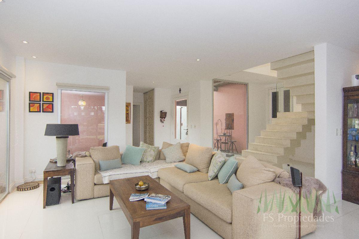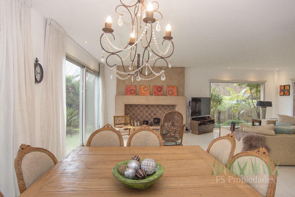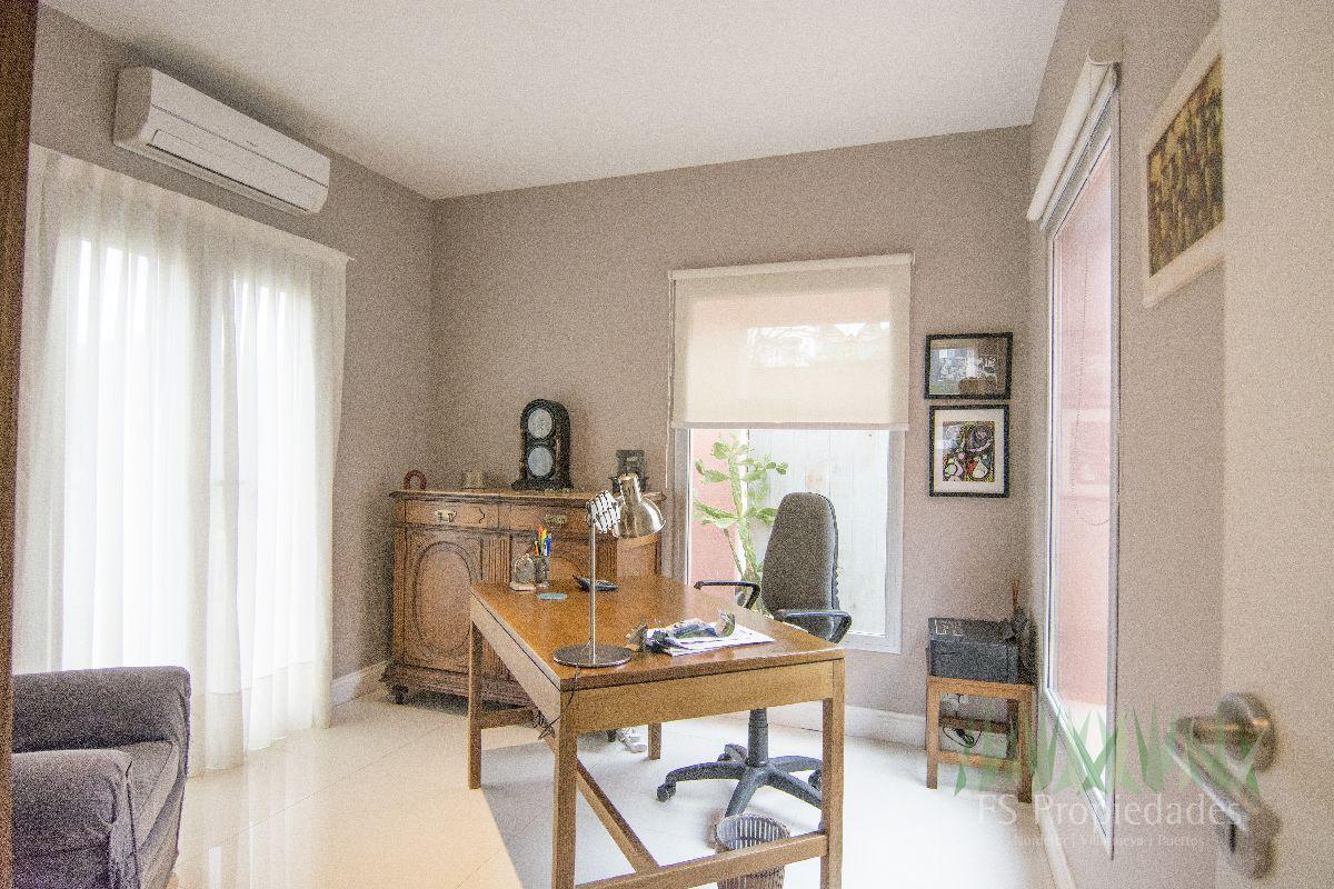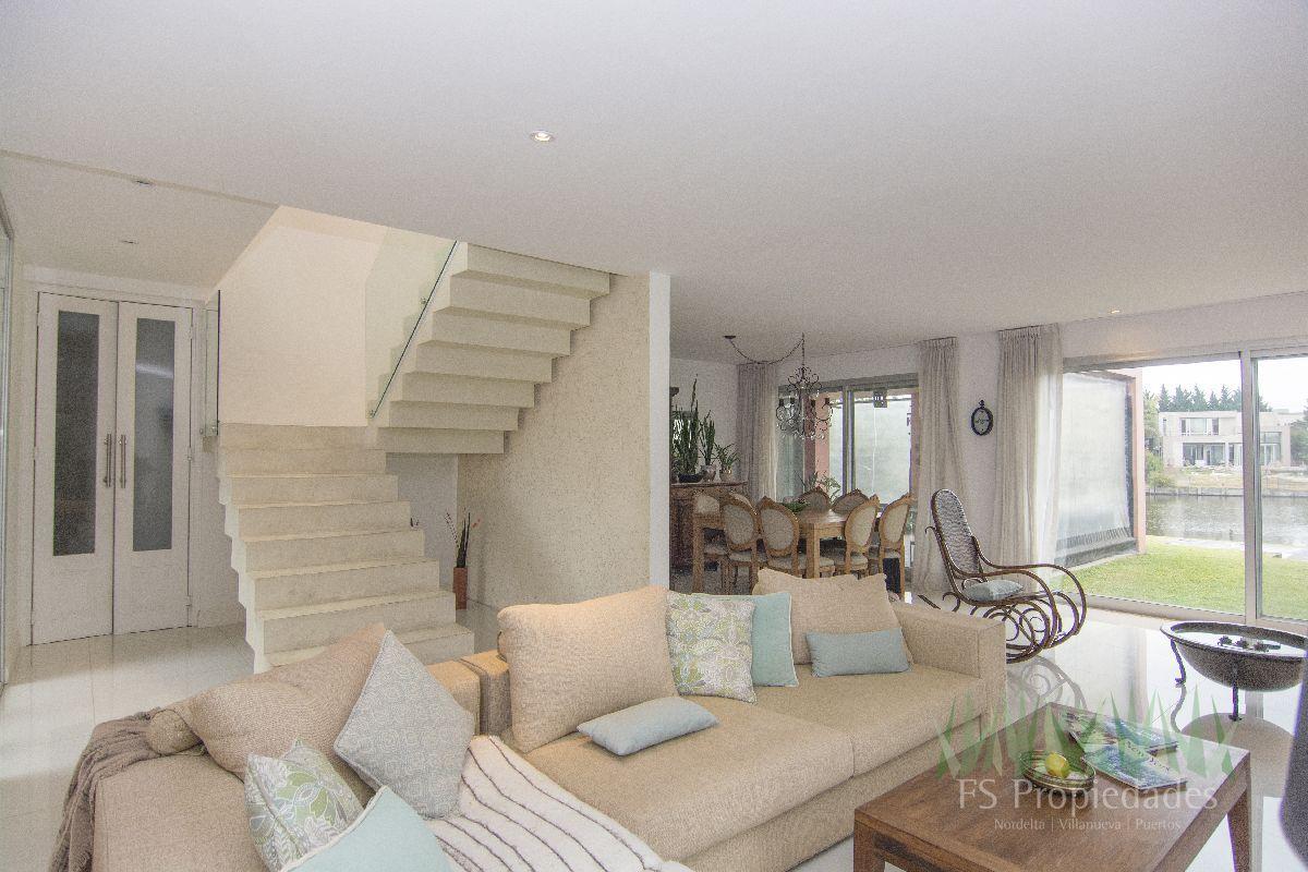 Mexican-style, modern house available from July 2026 in Los Sauces, Nordelta. The ground floor has a large reception area with a fireplace, a gallery with a grill, a garden with a pool and lakefront. The kitchen has granite countertops, a breakfast island, and a daily dining area with water views, plus a service dependency, independent laundry and a pantry; there is also a bedroom on the ground floor or the option to use it as an office or playroom, with a reception toilet. The upper floor inclu