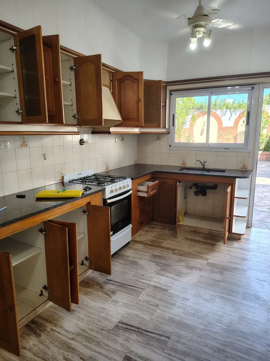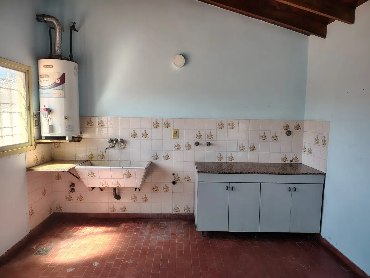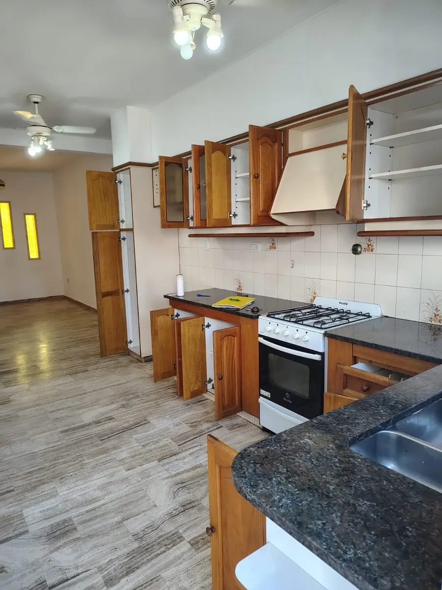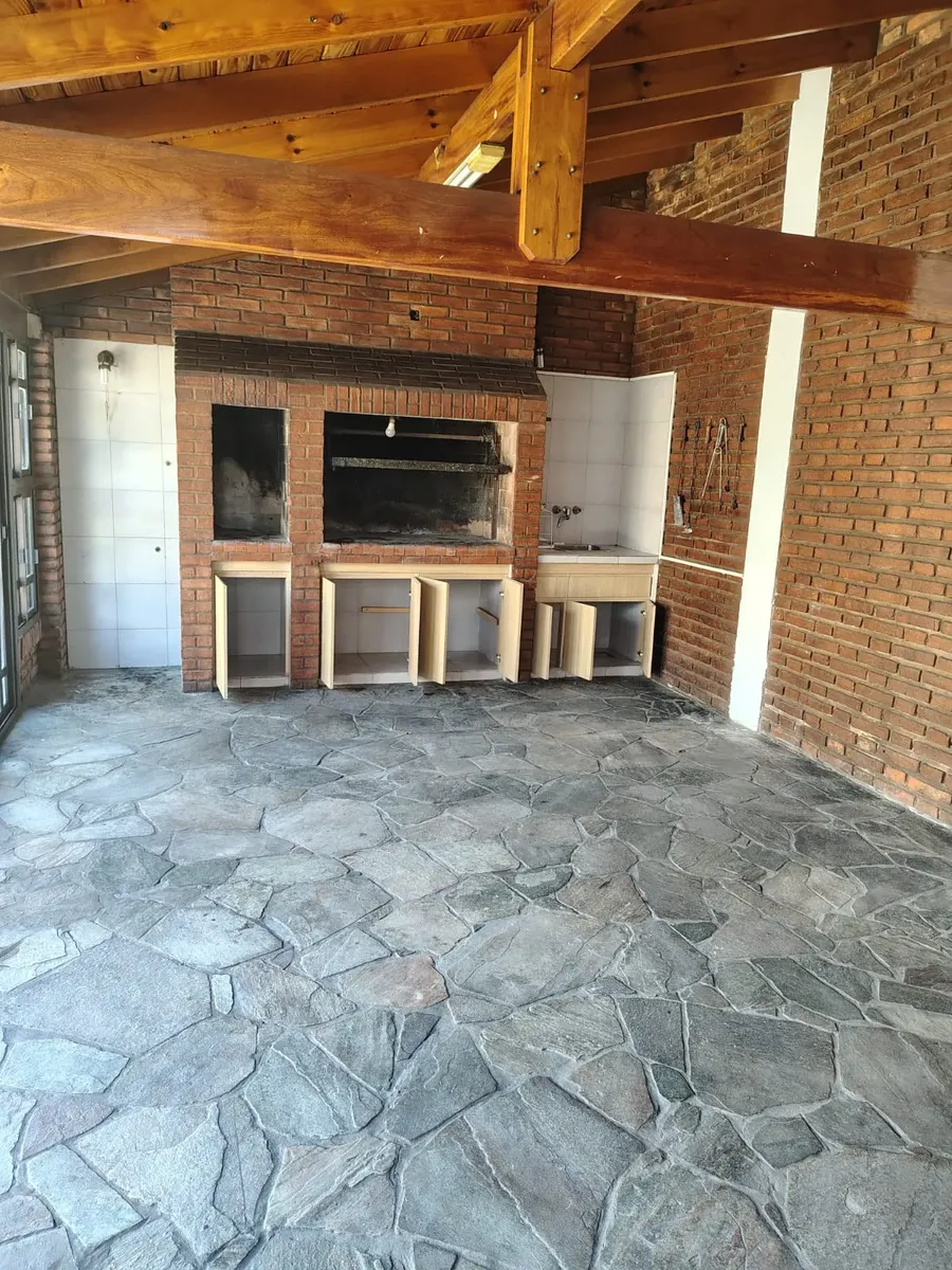 House-style apartment with 100 m² total area and 80 m² built area, spread over 2 floors. It has 3 bedrooms, 2 bathrooms and 1 guest toilet, plus a separate laundry area. The interior includes a kitchen and dining room. Outdoor space features a patio, terrace, grill area and a covered quincho, with 1 covered parking space; it has a water heater (termotanque) and internet/Wi-Fi. Rental is agreed for 24 months with a quarterly adjustment based on IPC; rental guarantee bond or a property guarantor i