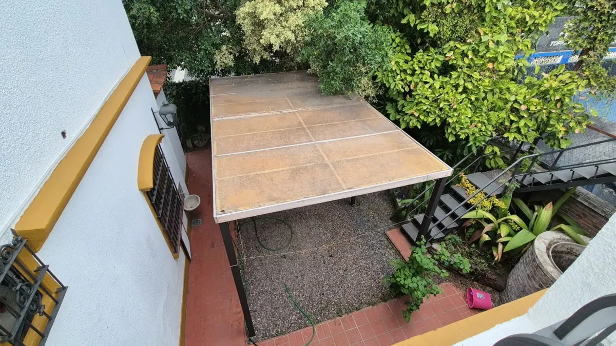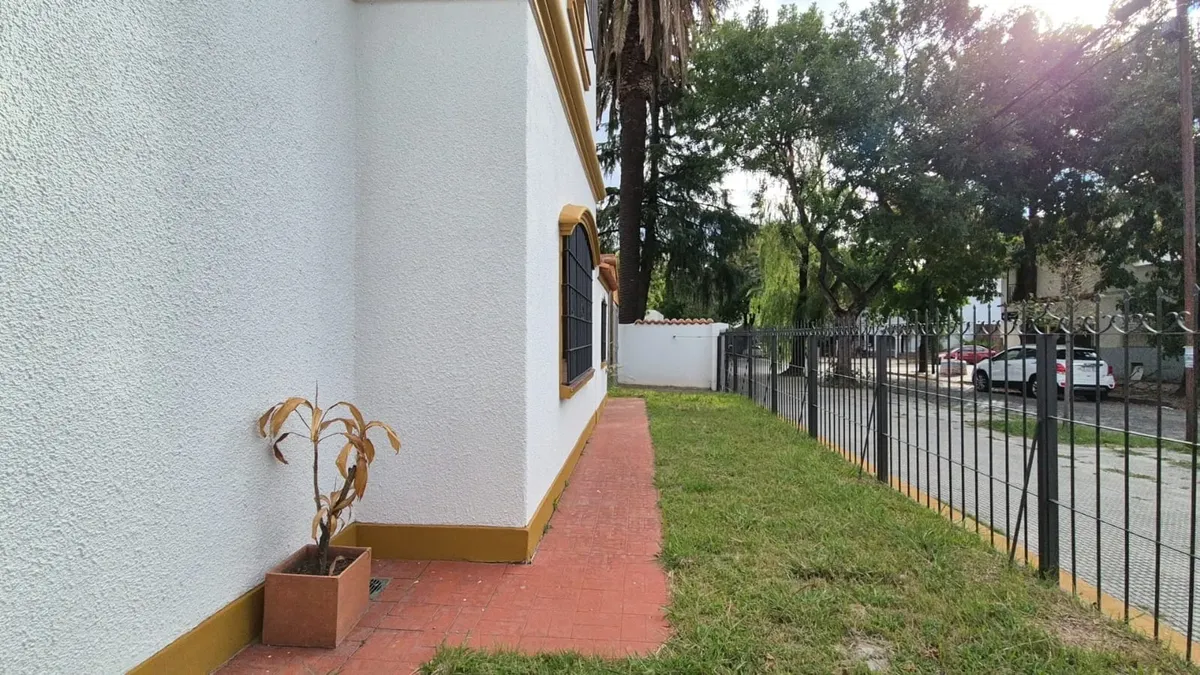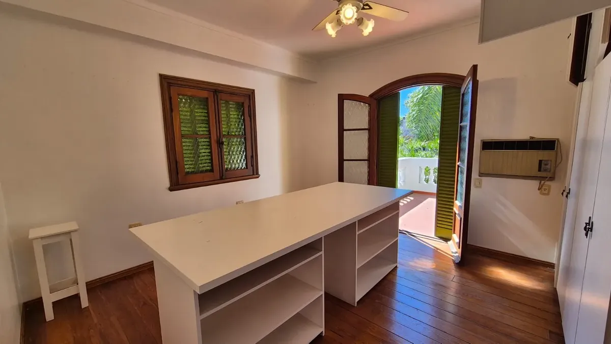 Perimeter garden, porch and 5.20 x 3.50 reception hall. Large living-dining room at the front (4.40 x 3.20 plus 2.75 x 3.00), fully fitted kitchen (2.40 x 4.20) and daily dining area (2.40 x 3.50), with a 4.20 x 2.40 office and full bathroom. Garage for 2 cars, covered BBQ area (6.20 x 5.70), laundry (1.50 x 3.00), guest toilet, and a side rear yard (7.00 x 14.00) plus large terrace. Upstairs has 3 bedrooms with built-in closets (4.00 x 4.20, 3.50 x 3.50 and 3.80 x 2.40), all with closets and wo
