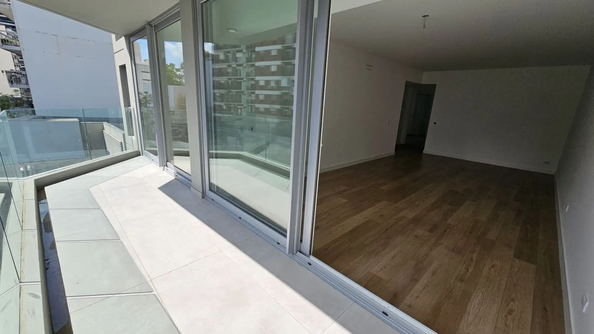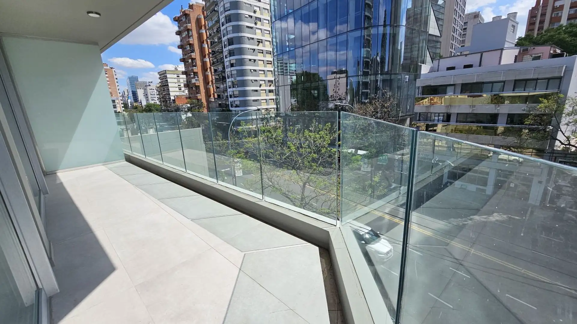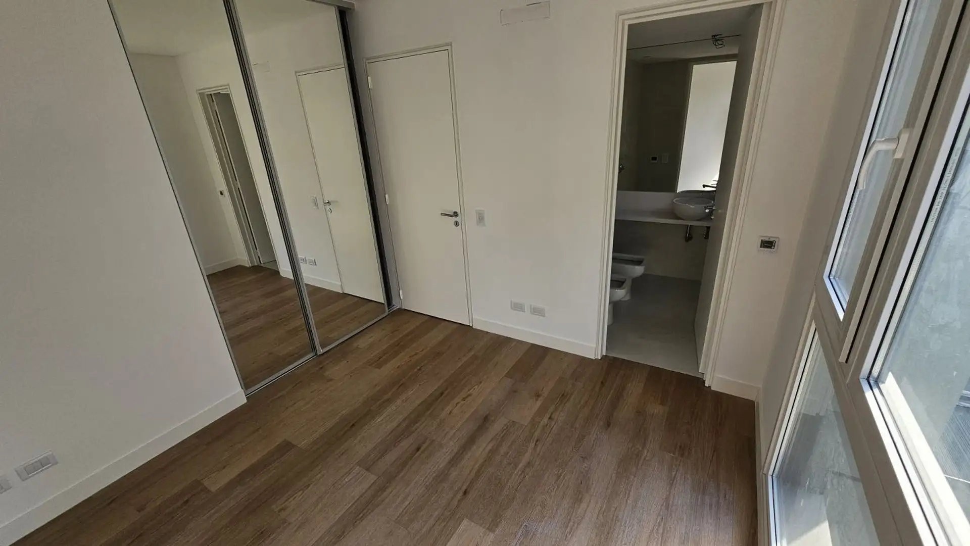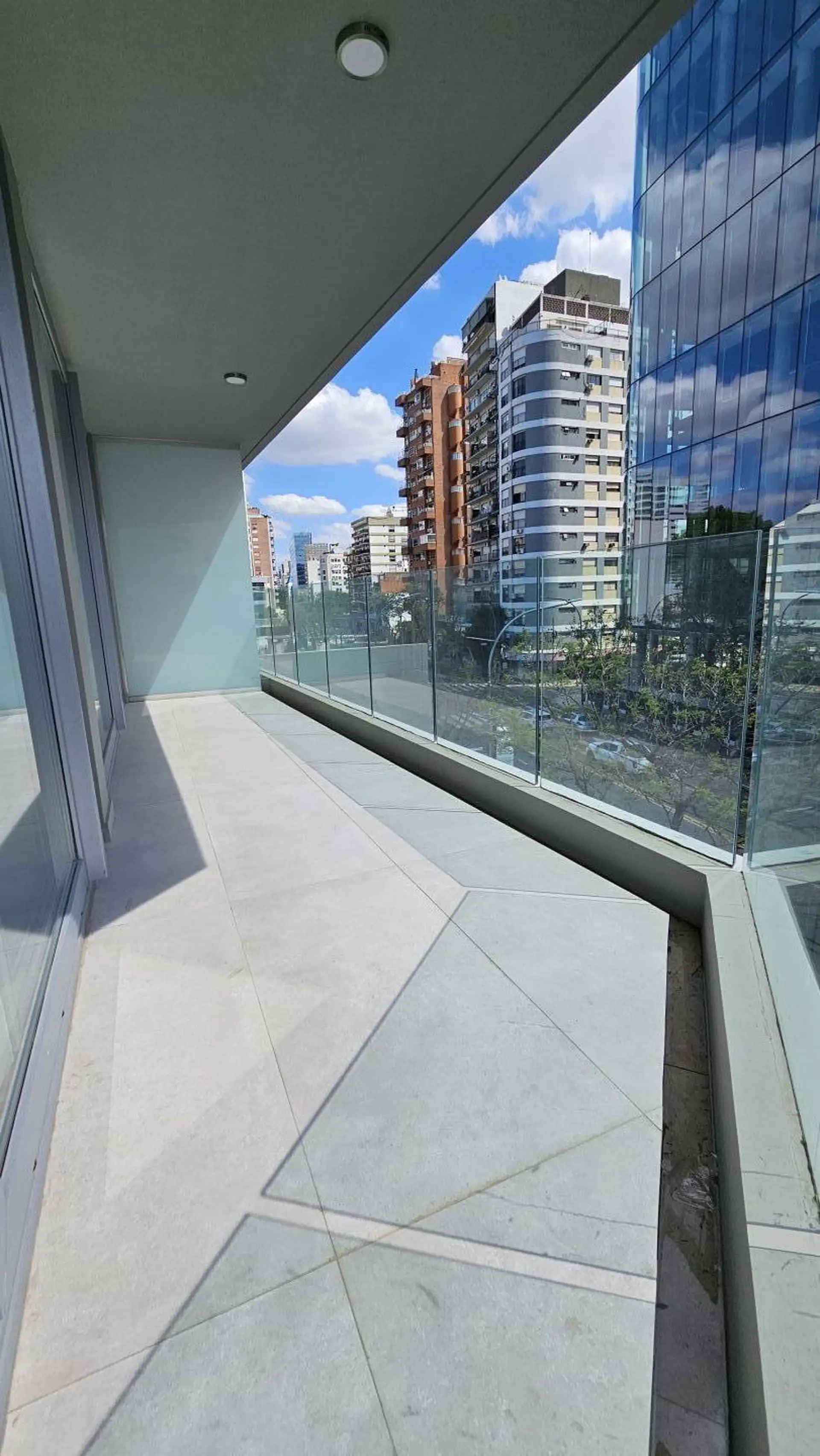 Four-room apartment in Vicente López on the 3rd floor of a 17-storey tower. Street-facing unit with a balcony. It has 3 en-suite bedrooms, plus a service room/bathroom, a private foyer with reception and a guest toilet, a living-dining area (7.40 x 3.60) opening onto double-glazed windows, and a 6.50 x 1.60 terrace-style balcony. The main suite (3.35 x 3.15) has built-in wardrobes and a double sliding door with mirrors; the second en-suite bedroom (3 x 3.10) is front-facing without a balcony; an