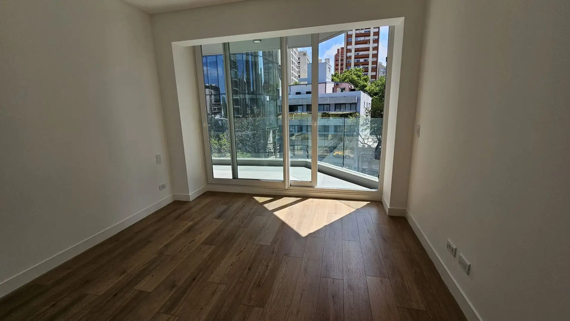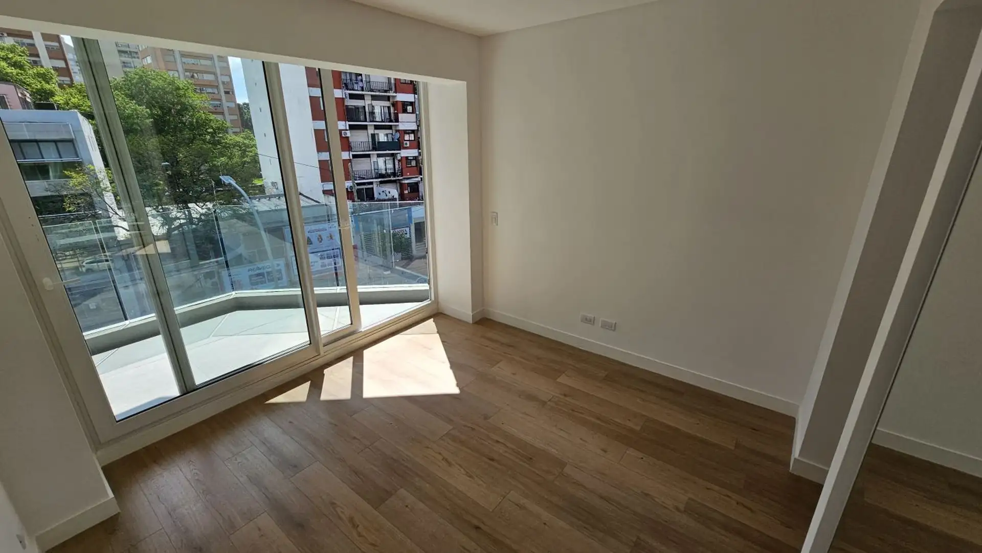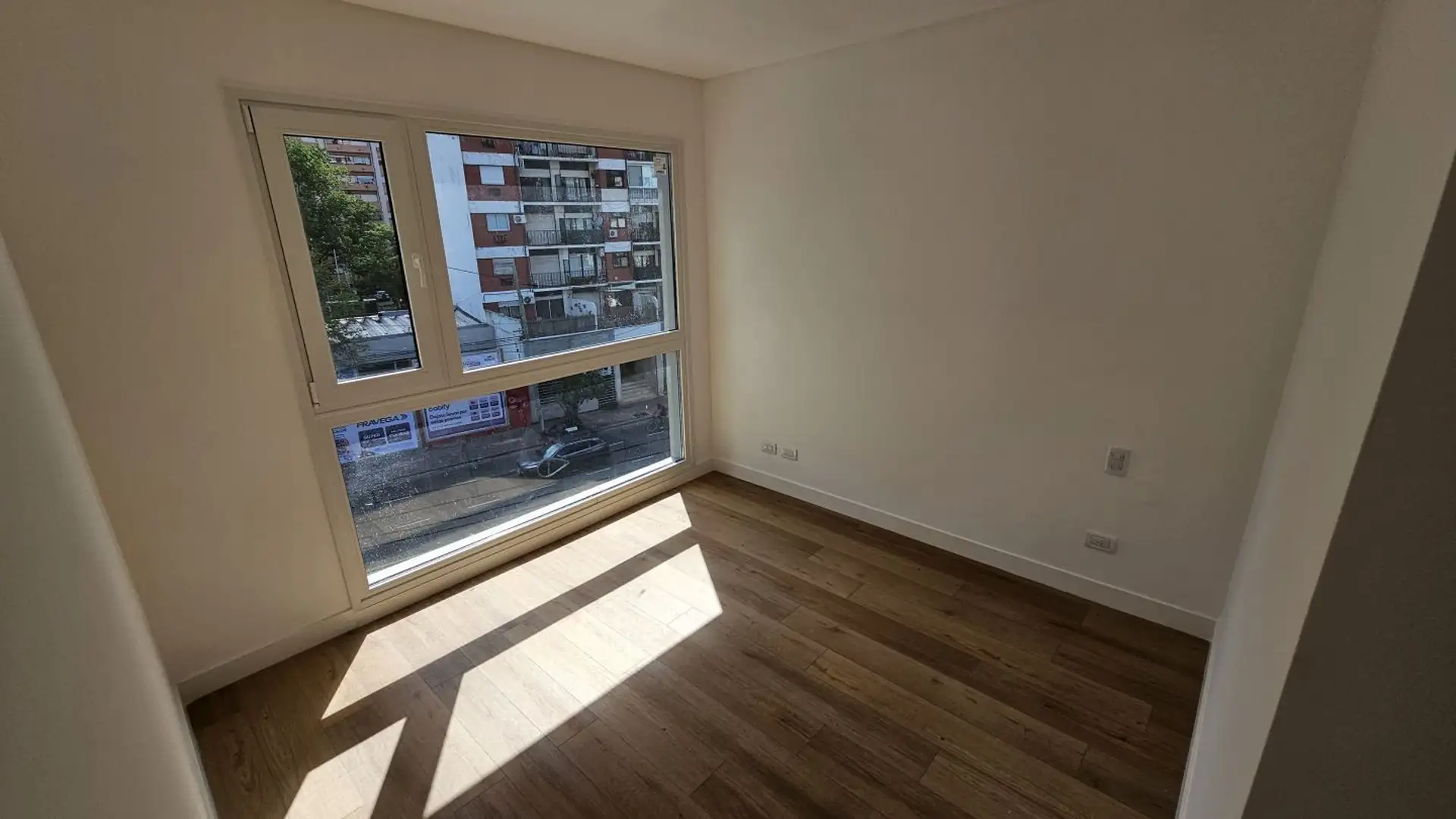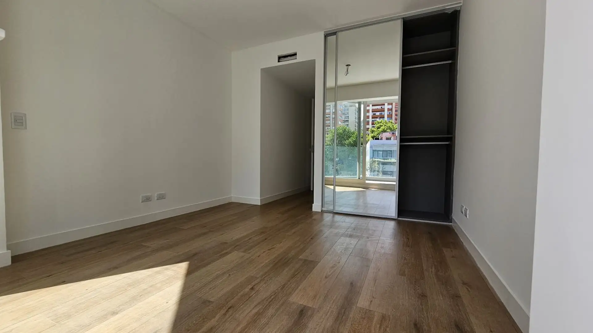 Four-room apartment in Vicente López on the 3rd floor of a 17-storey tower. Street-facing unit with a balcony. It has 3 en-suite bedrooms, plus a service room/bathroom, a private foyer with reception and a guest toilet, a living-dining area (7.40 x 3.60) opening onto double-glazed windows, and a 6.50 x 1.60 terrace-style balcony. The main suite (3.35 x 3.15) has built-in wardrobes and a double sliding door with mirrors; the second en-suite bedroom (3 x 3.10) is front-facing without a balcony; an