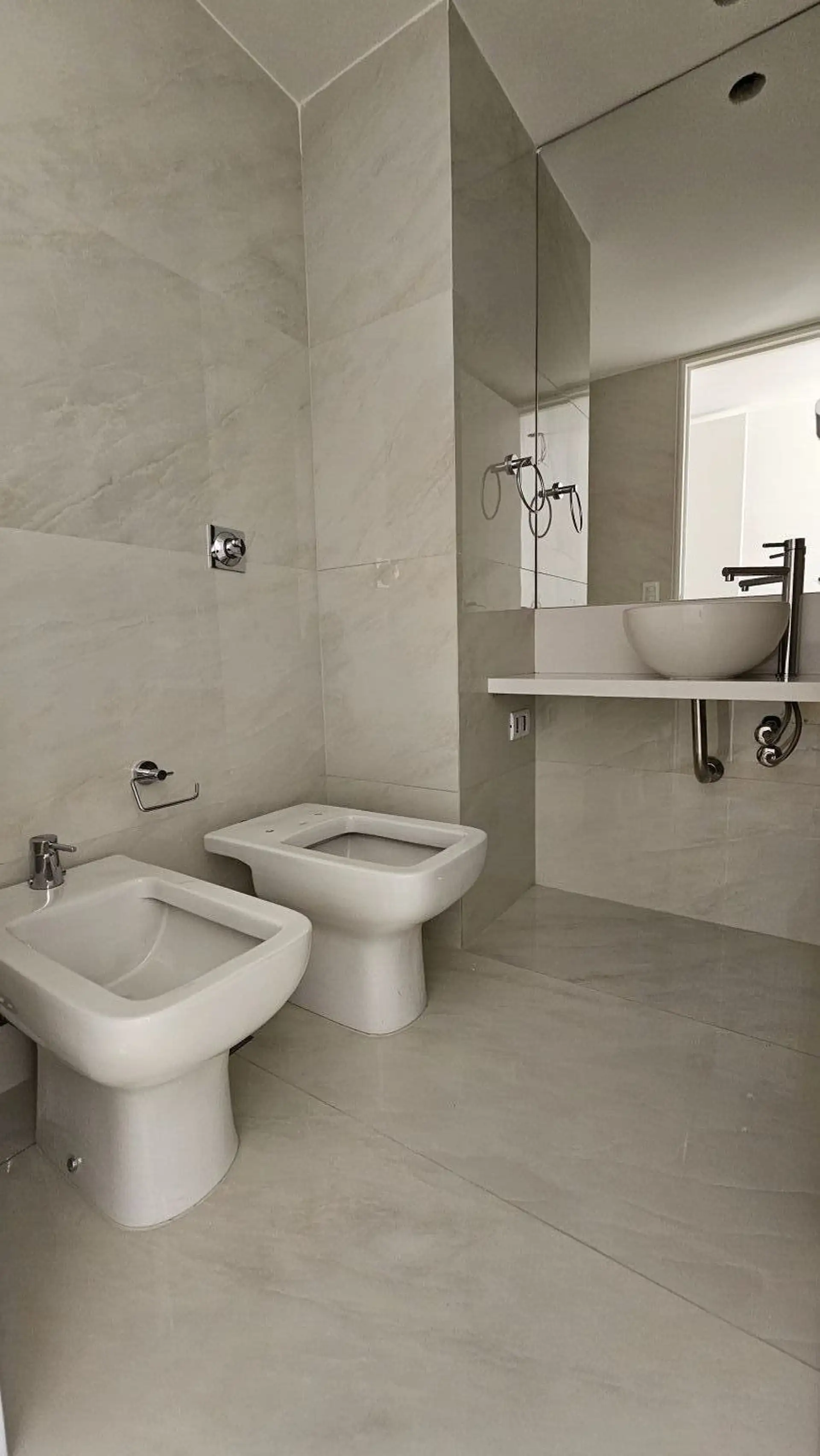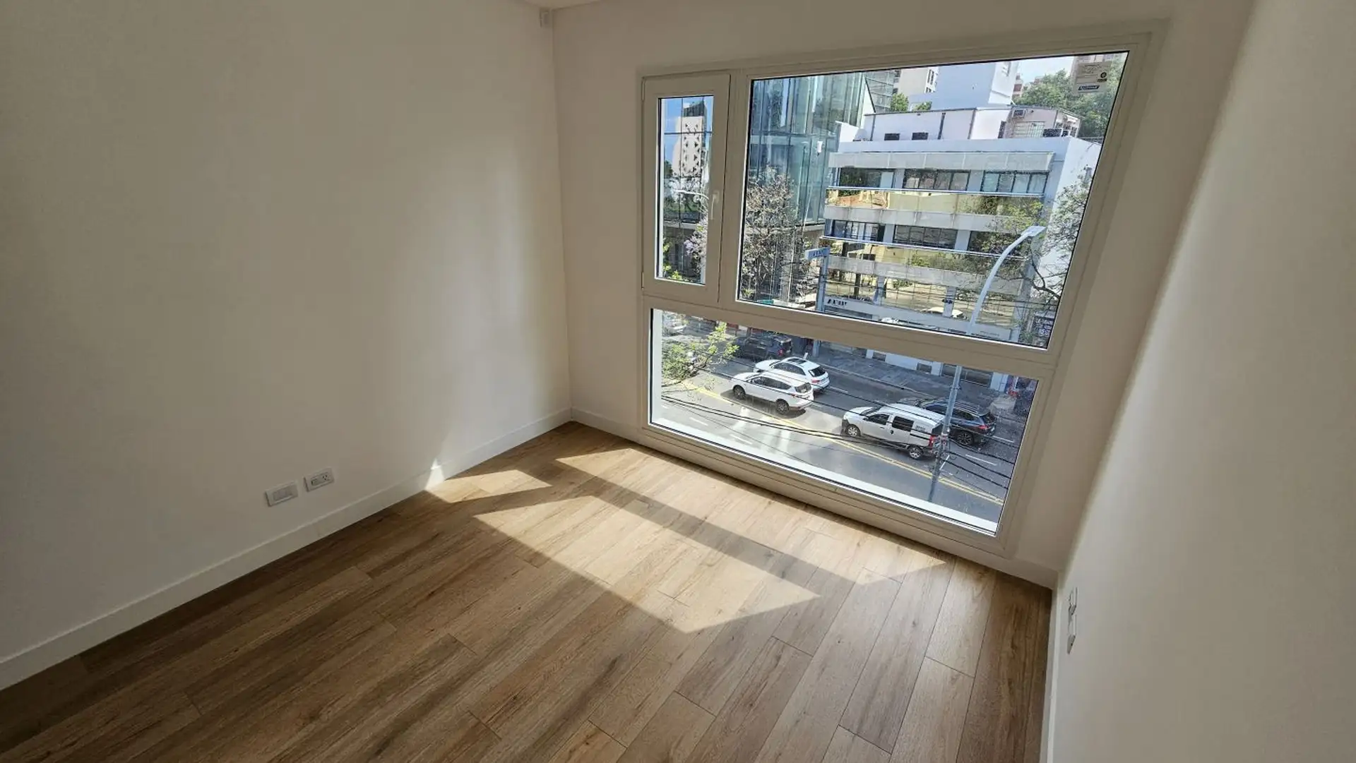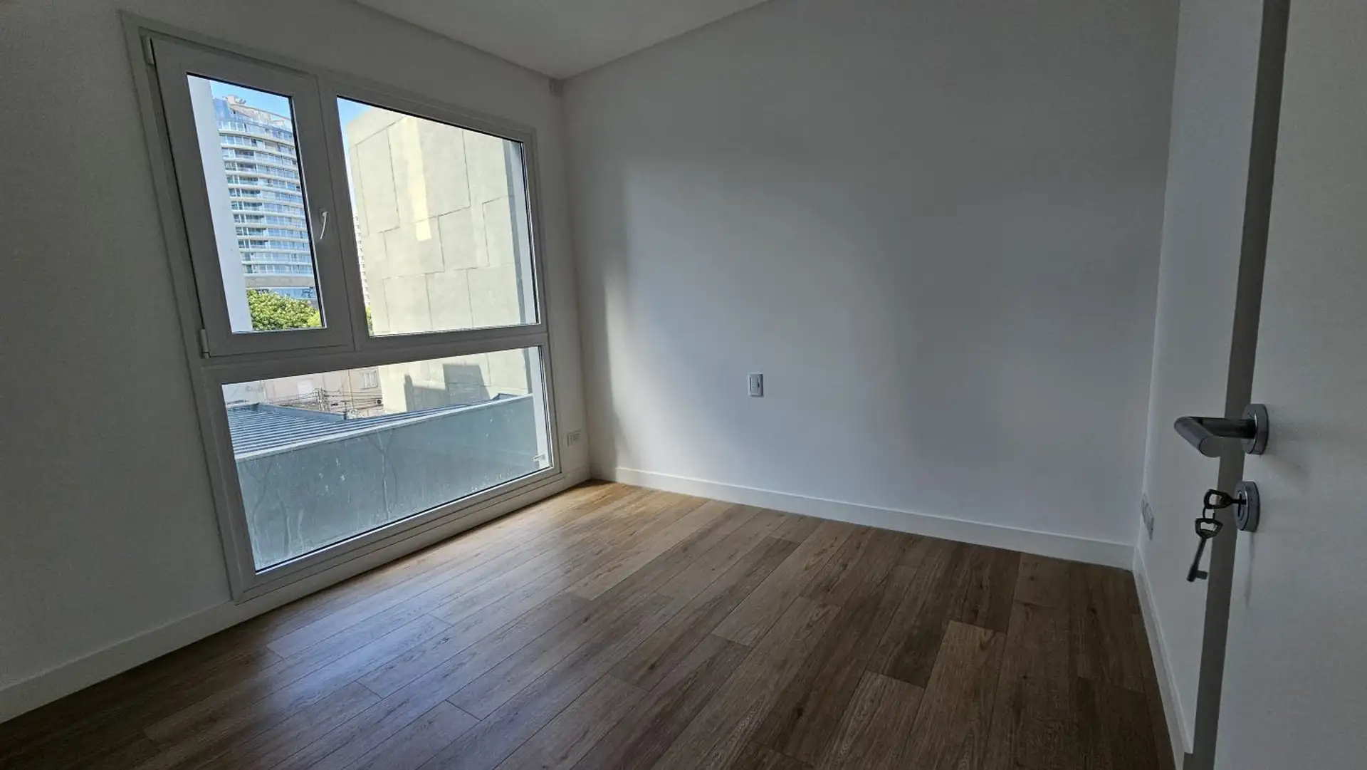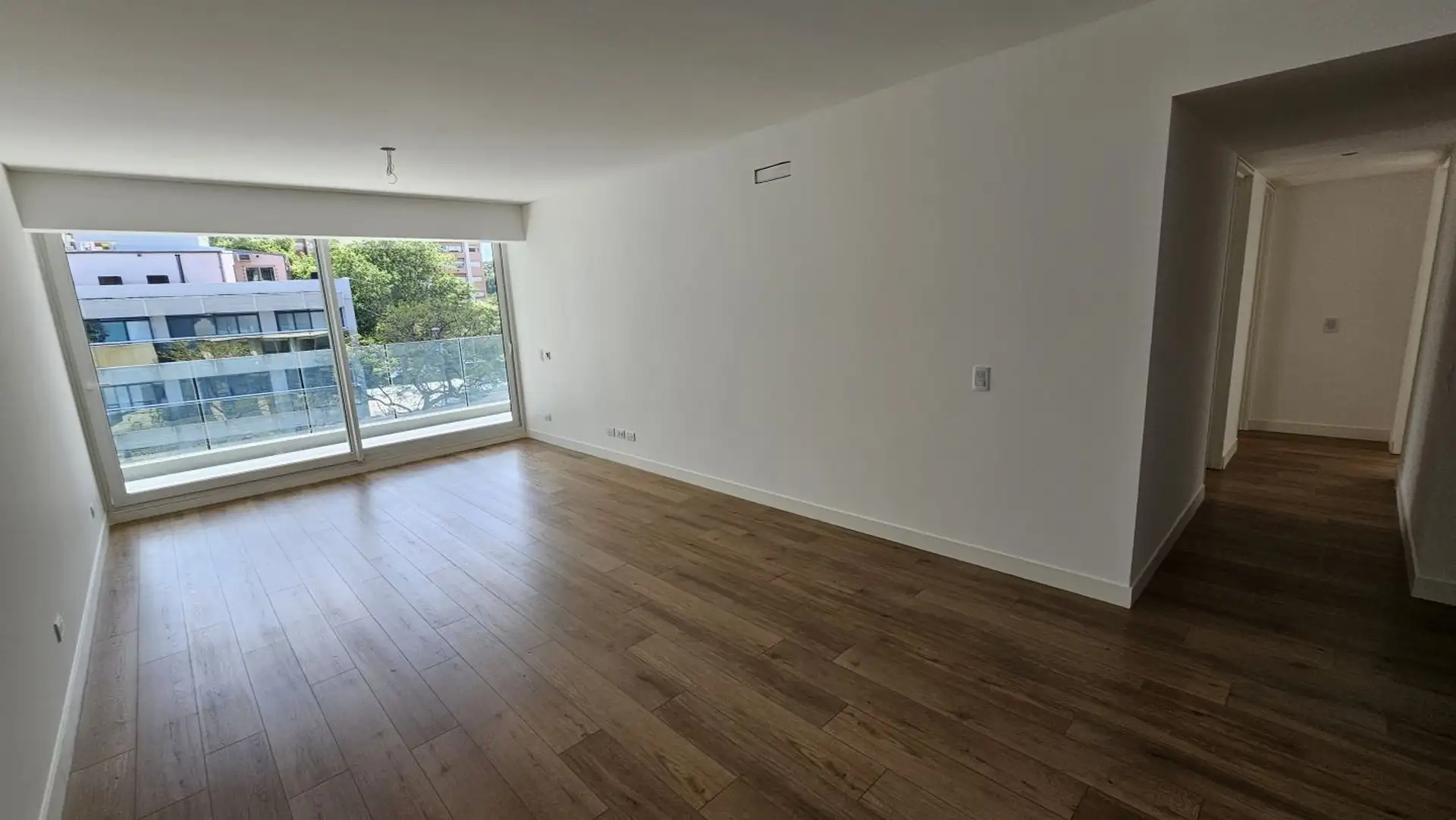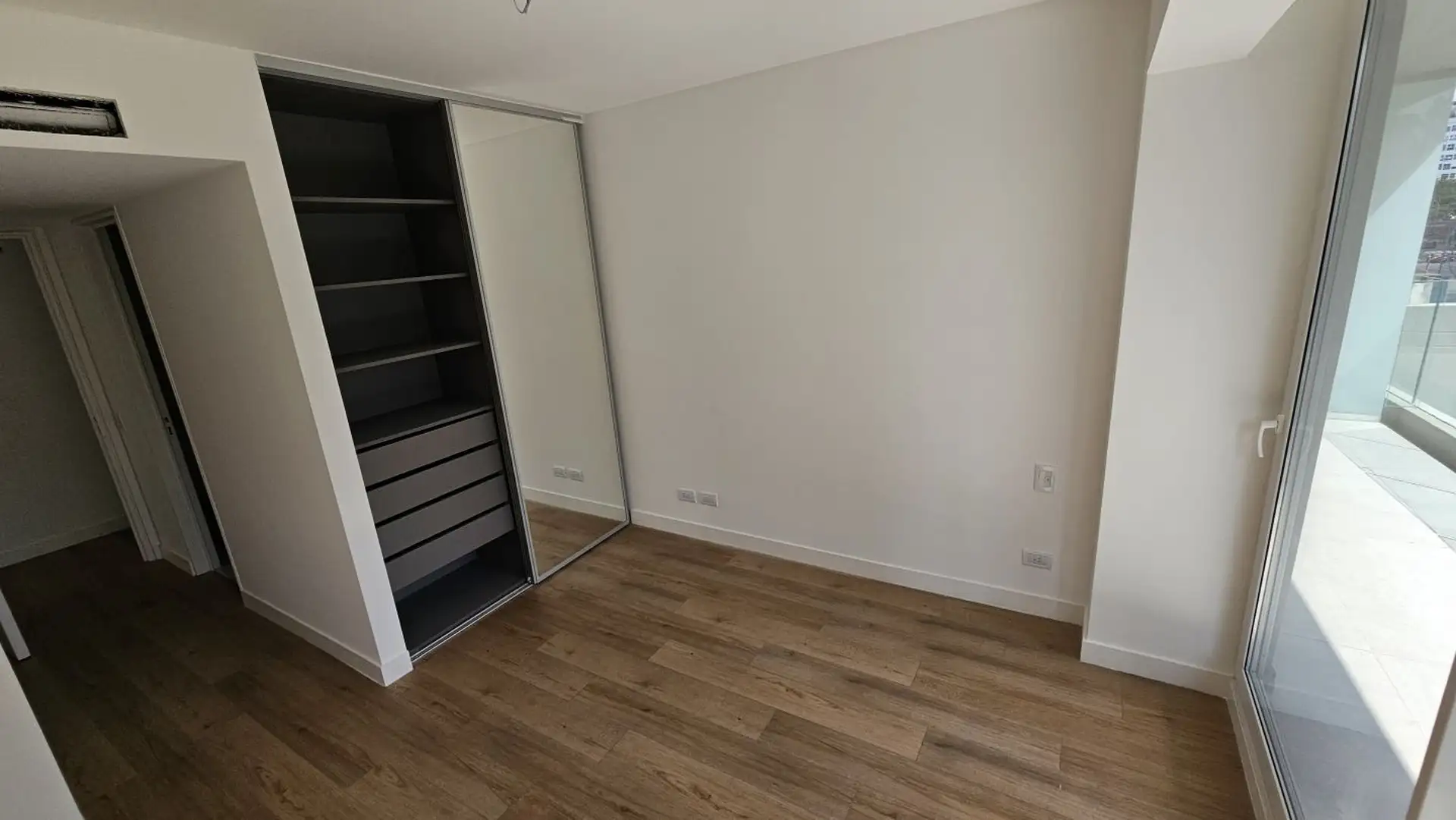 Four-room apartment in Vicente López on the 3rd floor of a 17-storey tower. Street-facing unit with a balcony. It has 3 en-suite bedrooms, plus a service room/bathroom, a private foyer with reception and a guest toilet, a living-dining area (7.40 x 3.60) opening onto double-glazed windows, and a 6.50 x 1.60 terrace-style balcony. The main suite (3.35 x 3.15) has built-in wardrobes and a double sliding door with mirrors; the second en-suite bedroom (3 x 3.10) is front-facing without a balcony; an