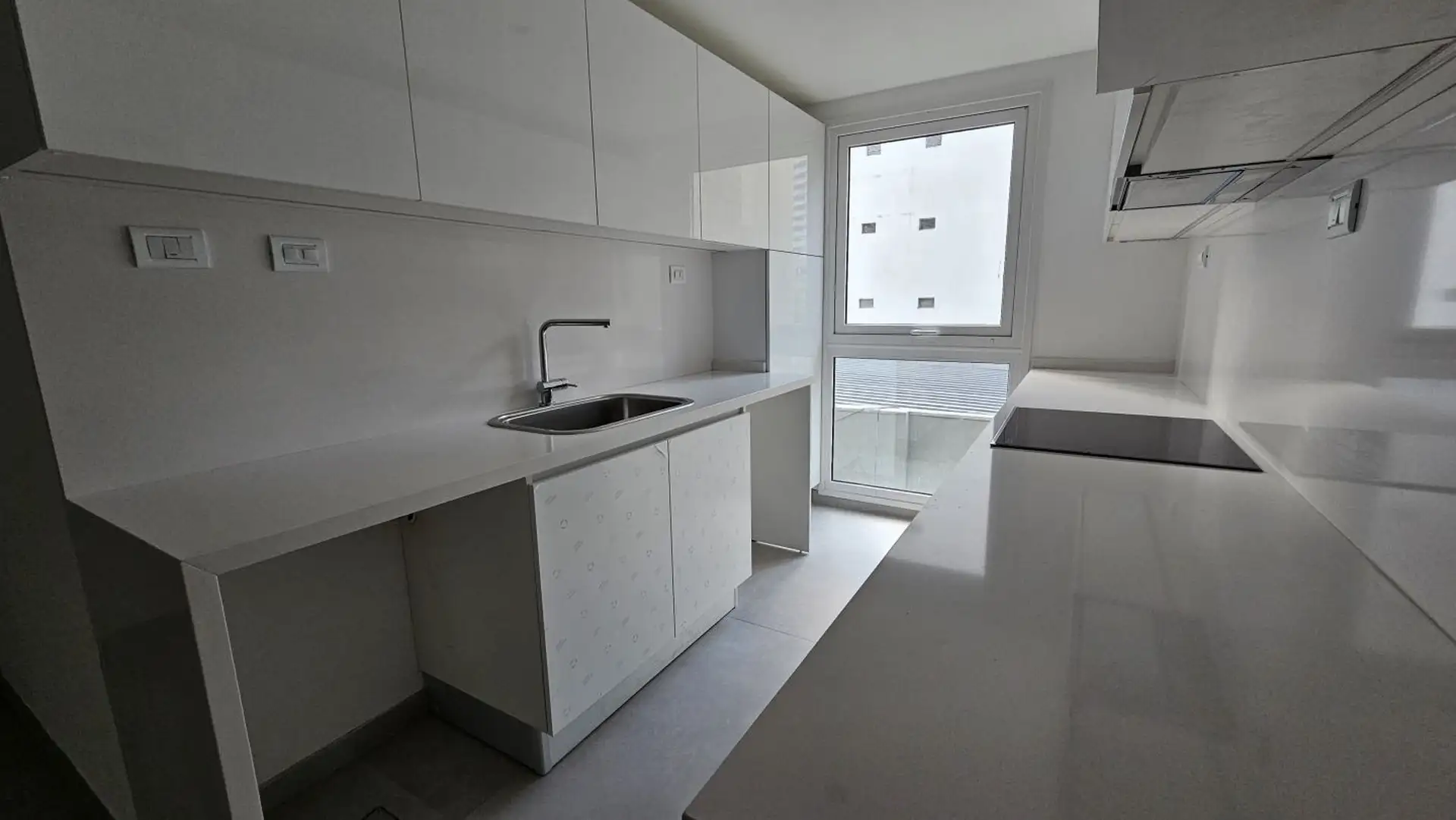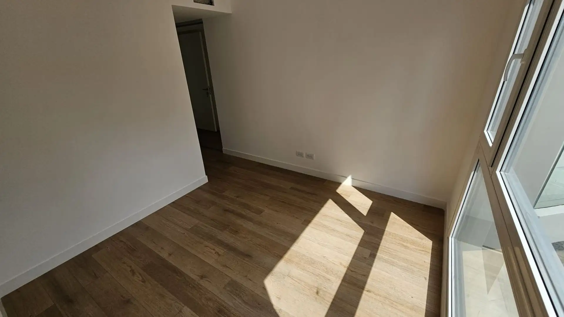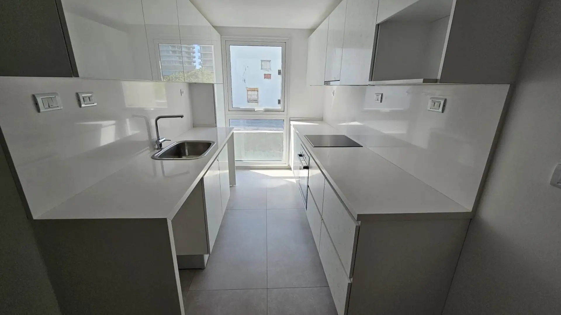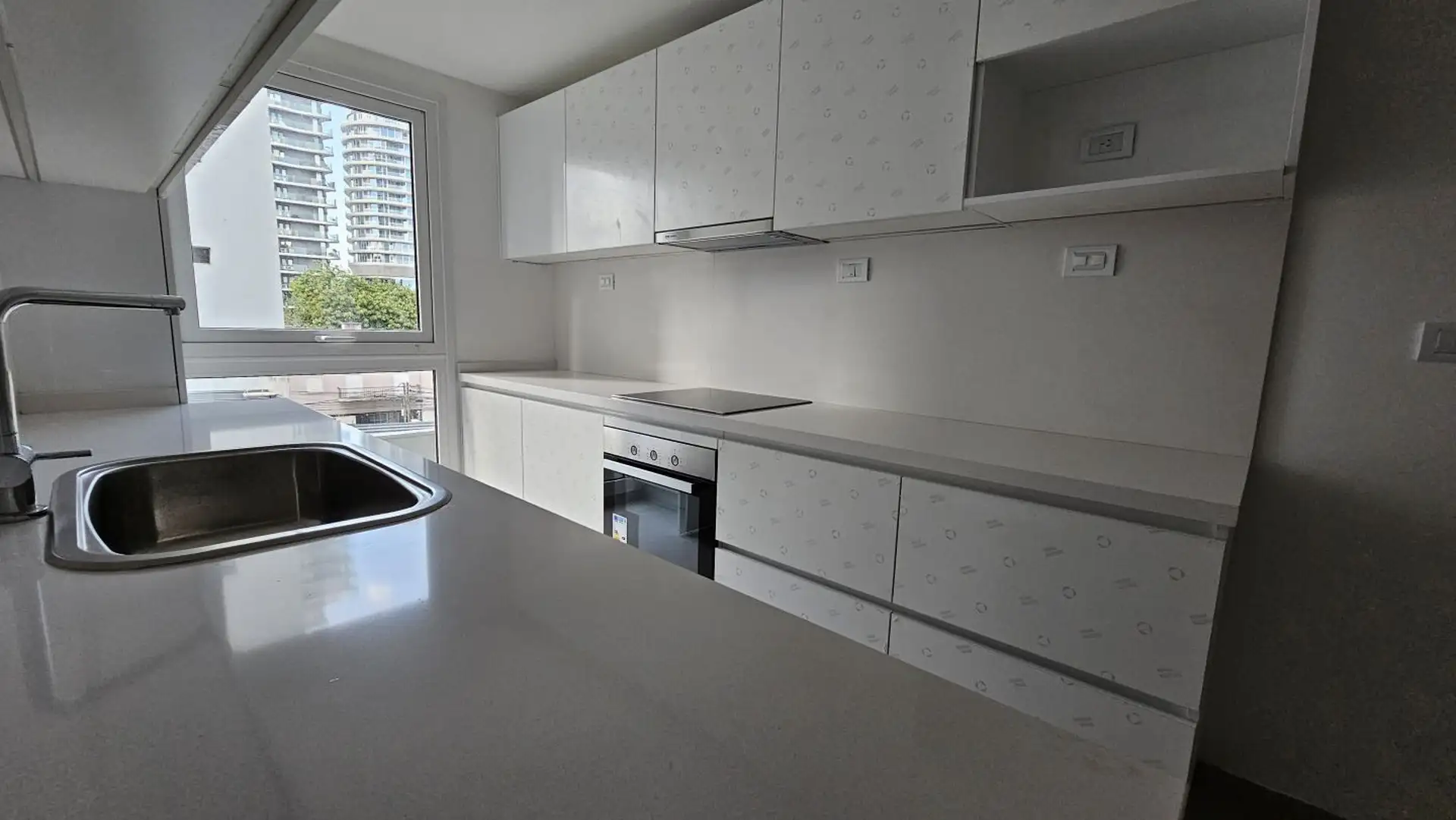 Four-room apartment in Vicente López on the 3rd floor of a 17-storey tower. Street-facing unit with a balcony. It has 3 en-suite bedrooms, plus a service room/bathroom, a private foyer with reception and a guest toilet, a living-dining area (7.40 x 3.60) opening onto double-glazed windows, and a 6.50 x 1.60 terrace-style balcony. The main suite (3.35 x 3.15) has built-in wardrobes and a double sliding door with mirrors; the second en-suite bedroom (3 x 3.10) is front-facing without a balcony; an