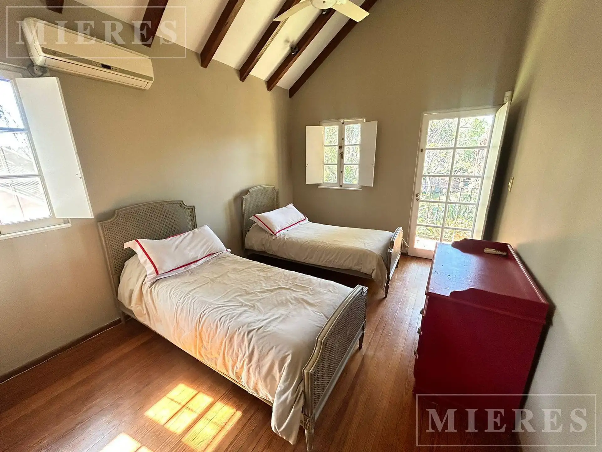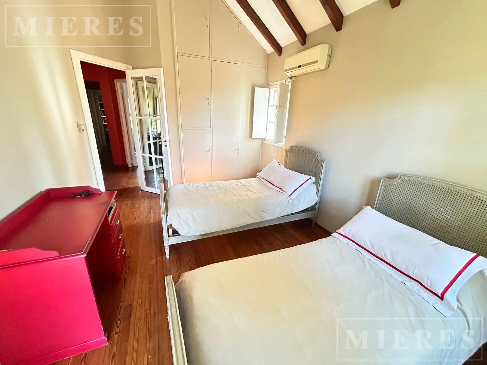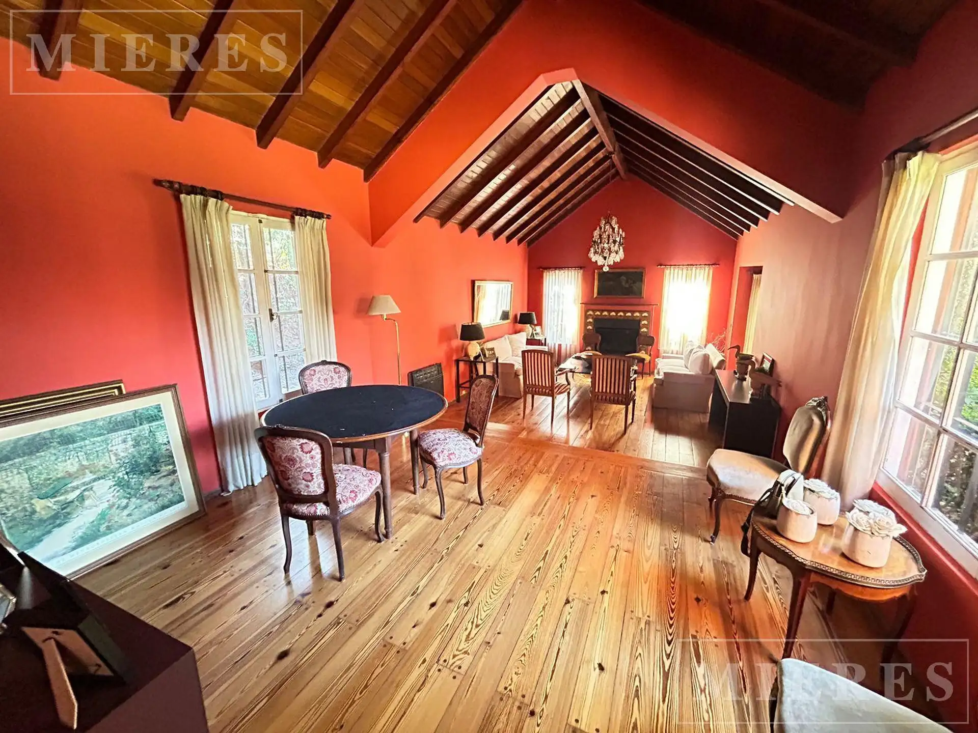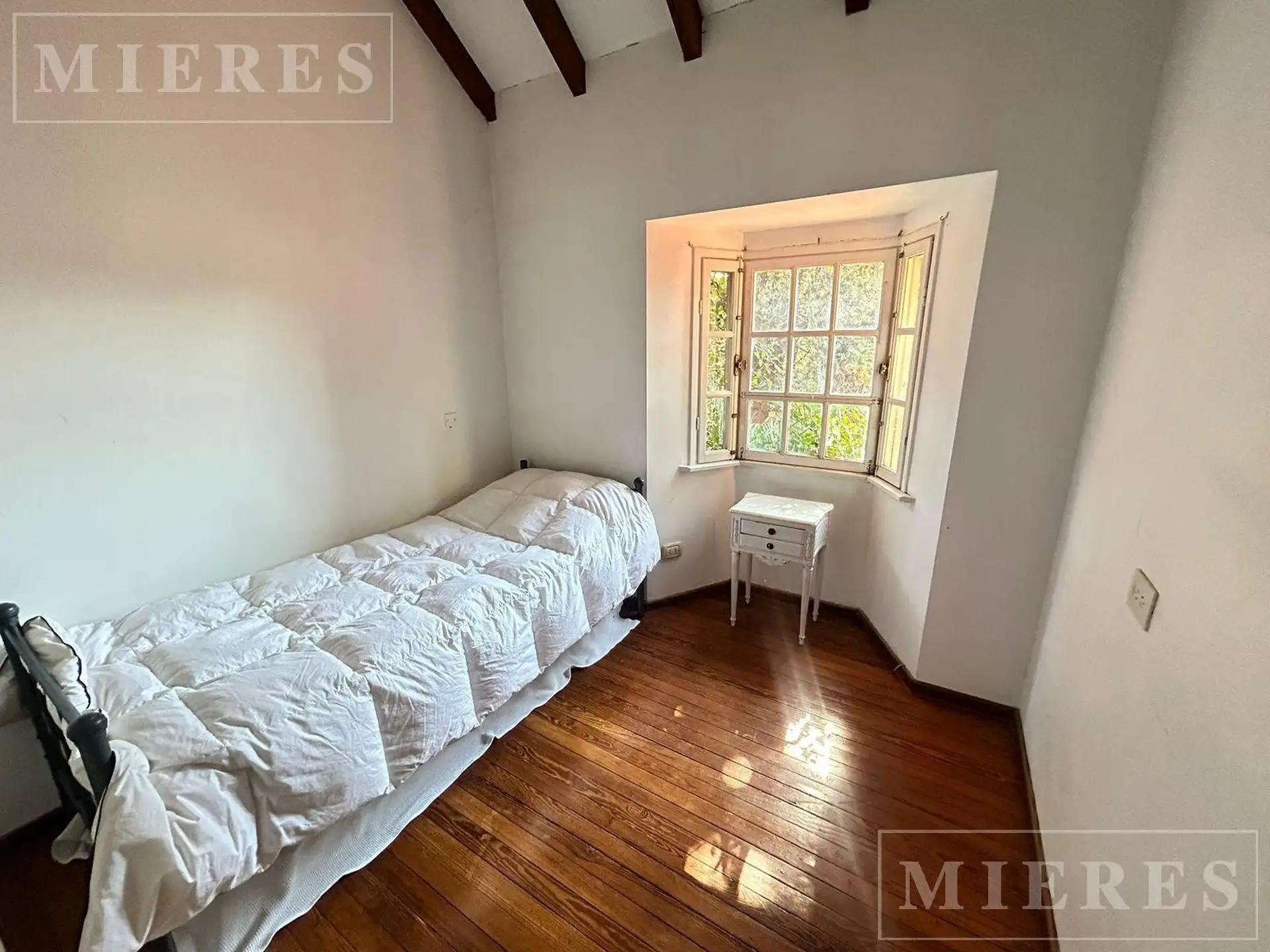 Two-storey house with 4 bedrooms in Victoria, in Punta Chica near the area between Av. Libertador and the river. Street-facing with a southeast-oriented garden, plus a covered and uncovered gallery with space for an outdoor dining area, grill and fire pit. The ground floor includes a reception hall, living-dining room with a fireplace and large windows to the garden, a guest toilet, an entry closet, under-stairs storage, a kitchen, a daily dining area/family room with garden access, and a servic