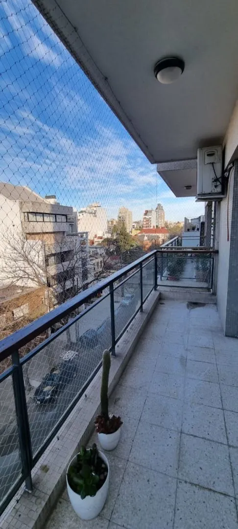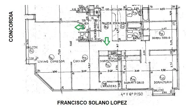Four-room apartment with maid’s quarters, total 117 m² (110 m² covered and 7 m² uncovered), half-floor unit on a corner at Concordia and Solano López in Villa Devoto. It has 3 bedrooms with built-in wardrobes, 1 full bathroom, a powder room, and the maid’s quarters bathroom, plus a separate laundry area and 2 balconies. Kitchen is separate with a daily dining area and built-in cabinetry; floors are parquet, ceramic and marble. The building is 58 years old, refurbished, with 8 floors and 2 units