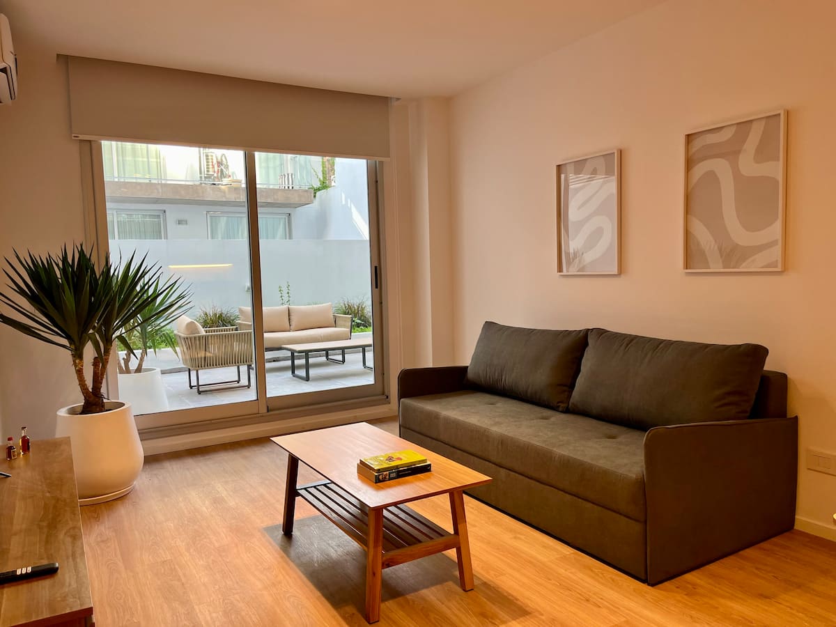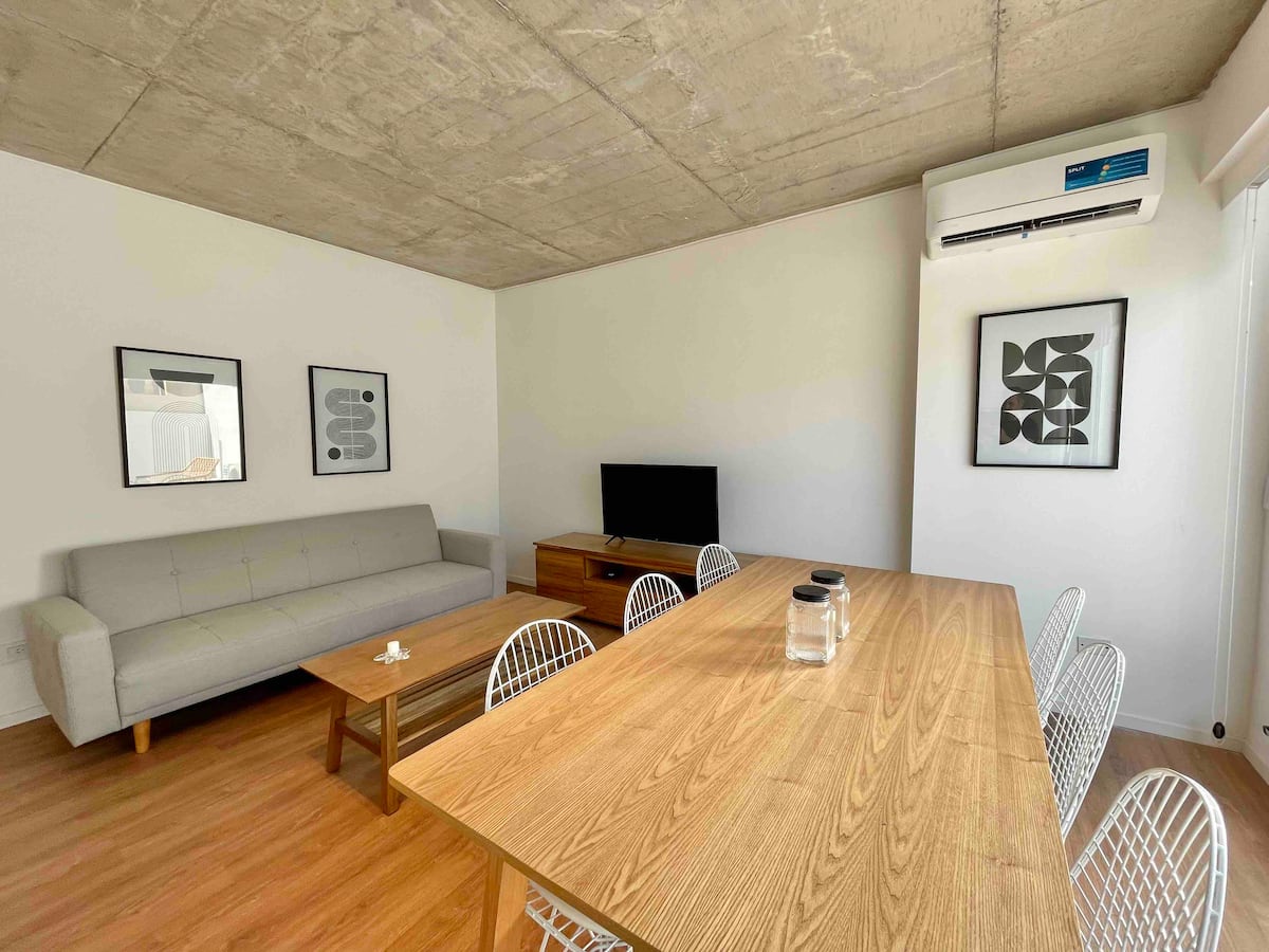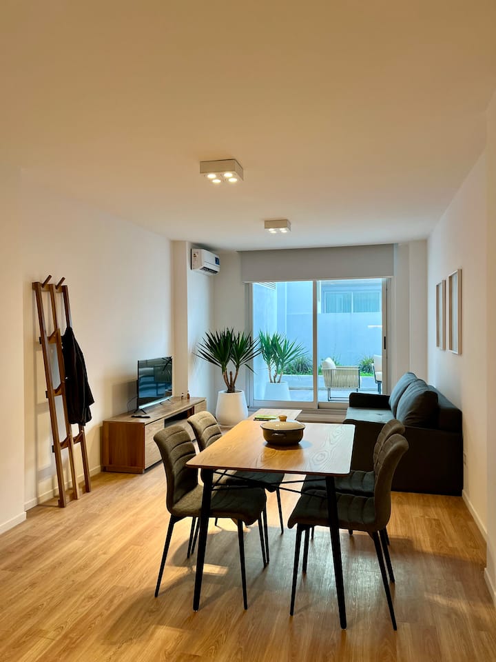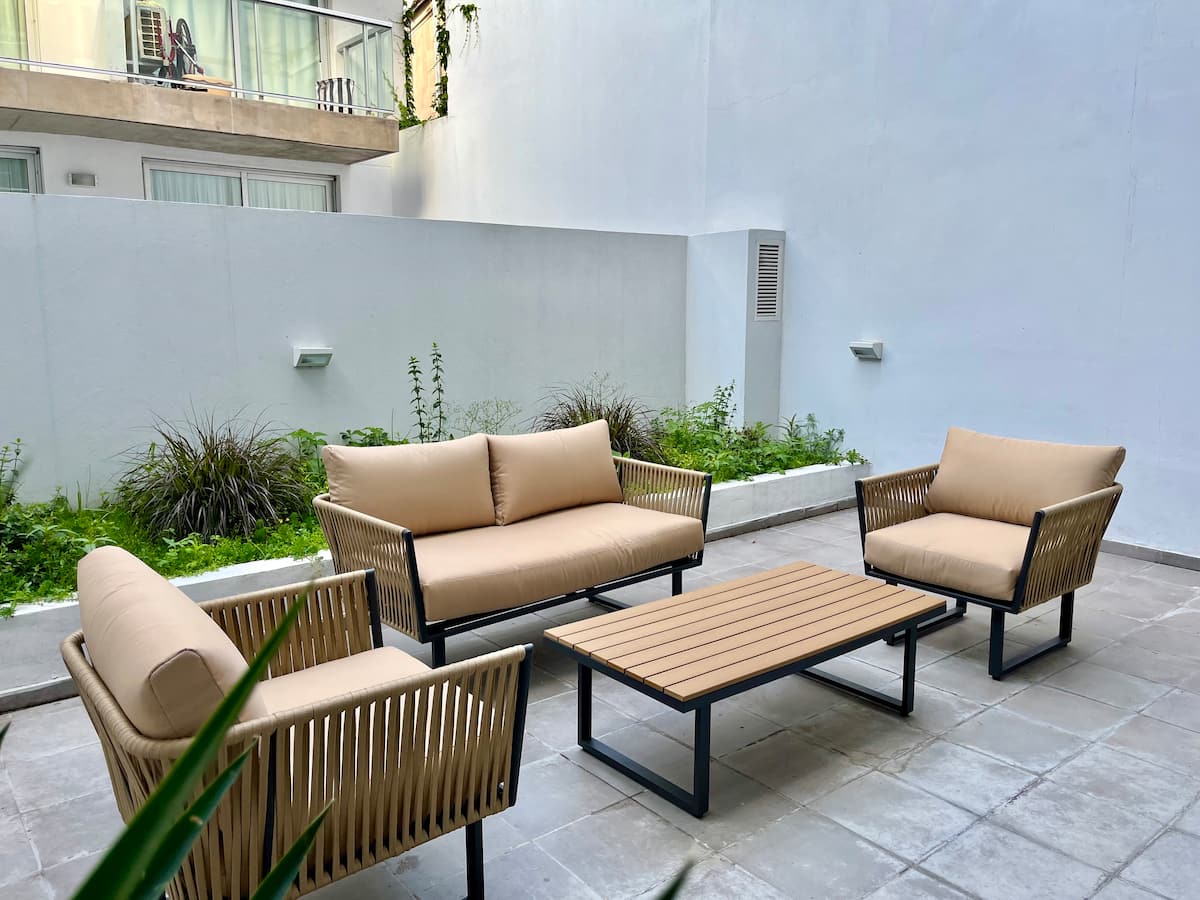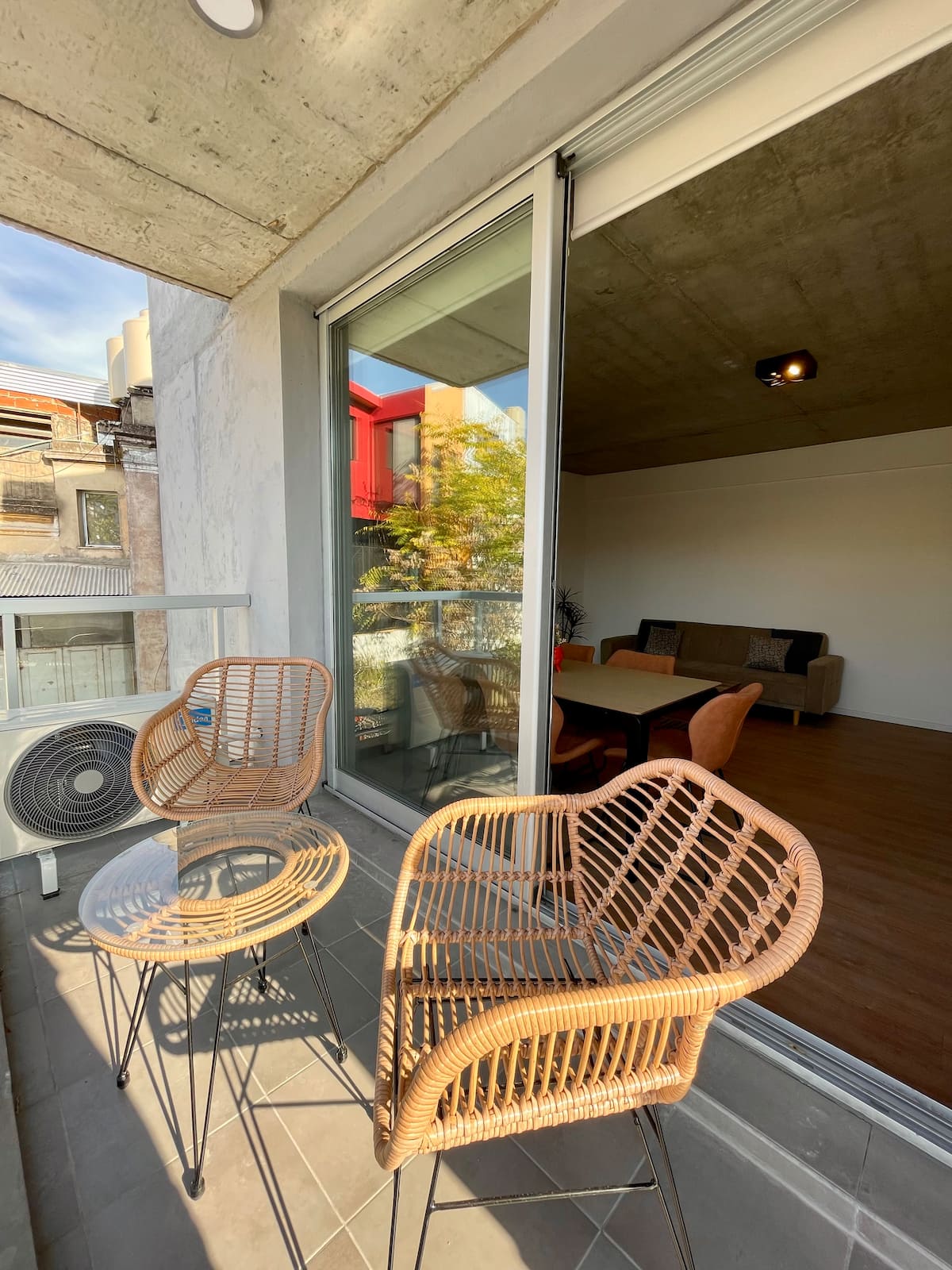 Apartment complex in San Telmo with 3 apartments in the same building. All units include hot/cold air conditioning, ironing equipment, hair dryers, toaster, microwave, cookware, towels, linens, shampoo and soap. Unit “PB” has 1 bedroom with a double bed, a dining room with a sofa bed, an integrated kitchen, 1 full bathroom and a private patio. Unit “H” has 2 bedrooms (one double bed and two twin beds), a dining room with a sofa bed, an integrated kitchen, 1 full bathroom and a balcony. Unit “A”