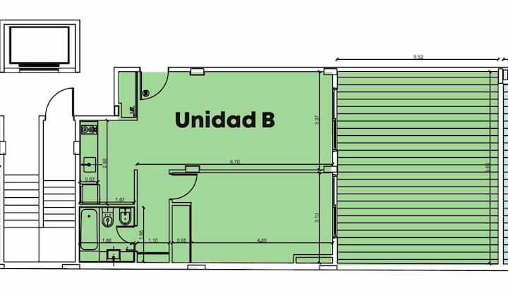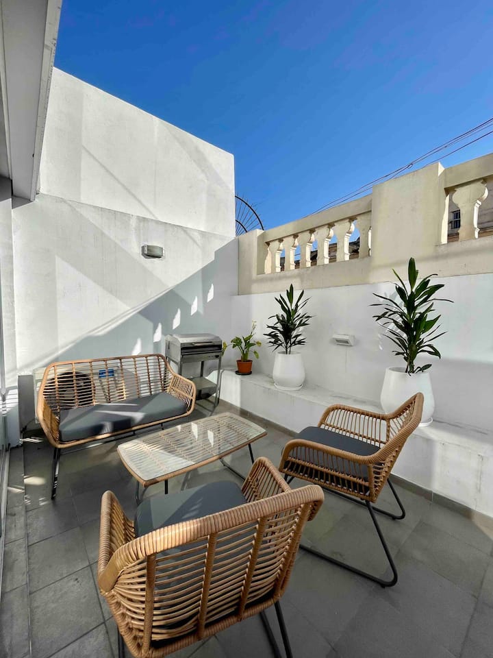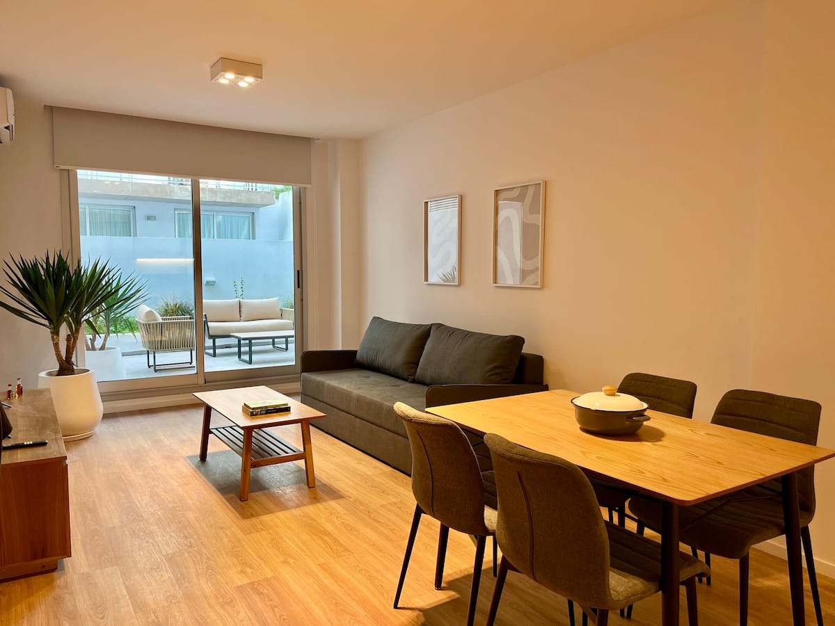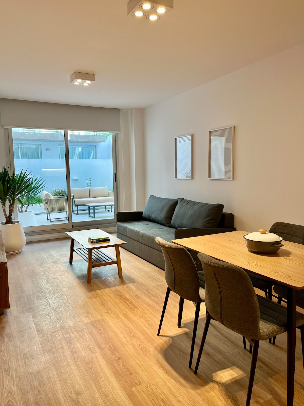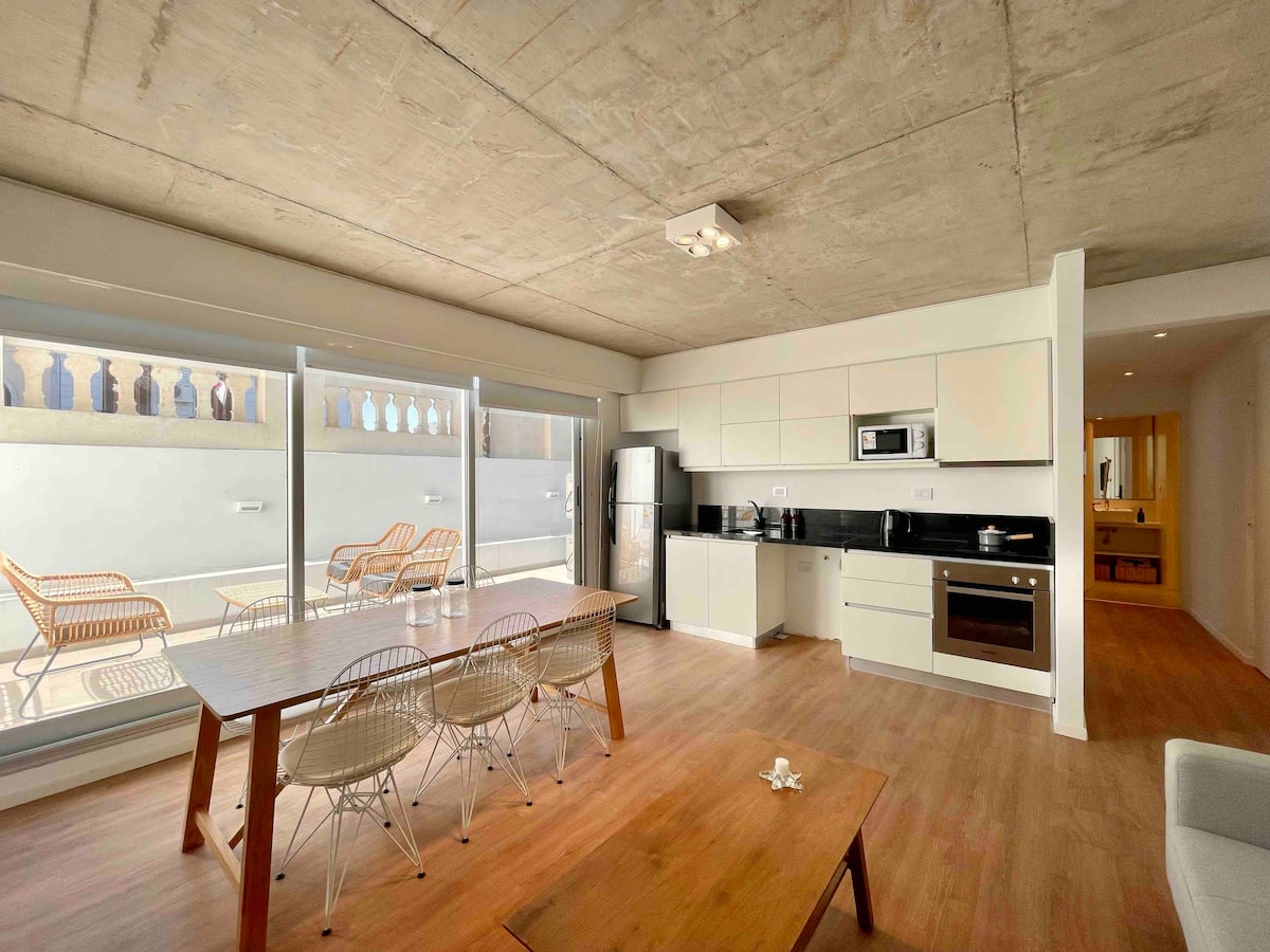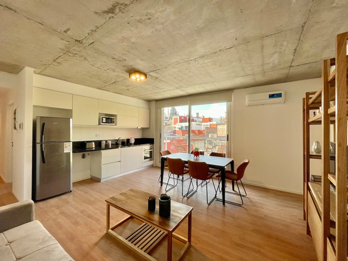 Apartment complex in San Telmo with 3 apartments in the same building. All units include hot/cold air conditioning, ironing equipment, hair dryers, toaster, microwave, cookware, towels, linens, shampoo and soap. Unit “PB” has 1 bedroom with a double bed, a dining room with a sofa bed, an integrated kitchen, 1 full bathroom and a private patio. Unit “H” has 2 bedrooms (one double bed and two twin beds), a dining room with a sofa bed, an integrated kitchen, 1 full bathroom and a balcony. Unit “A”
