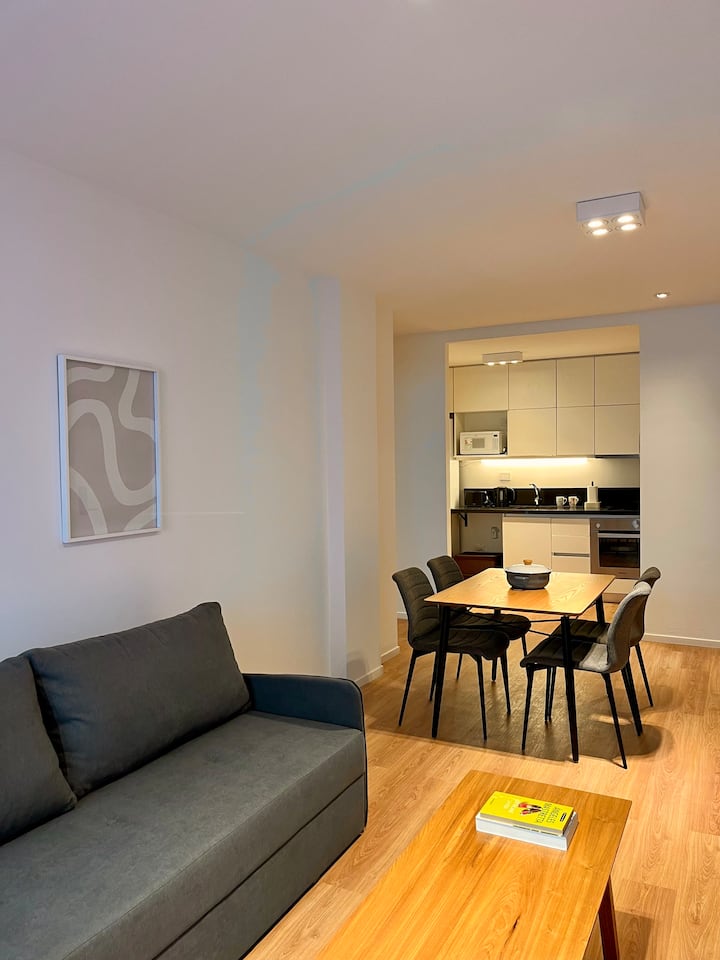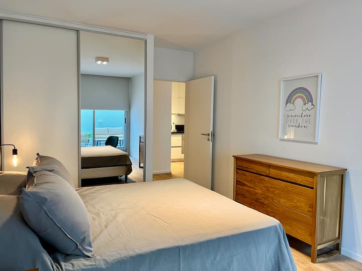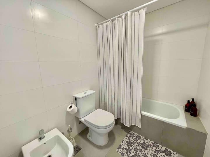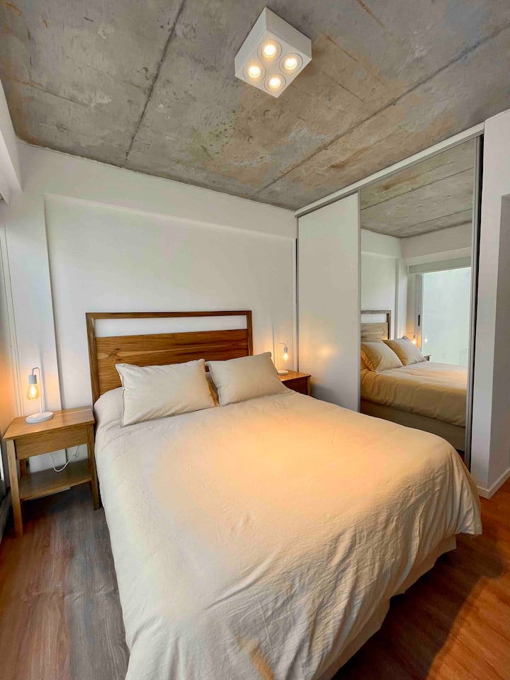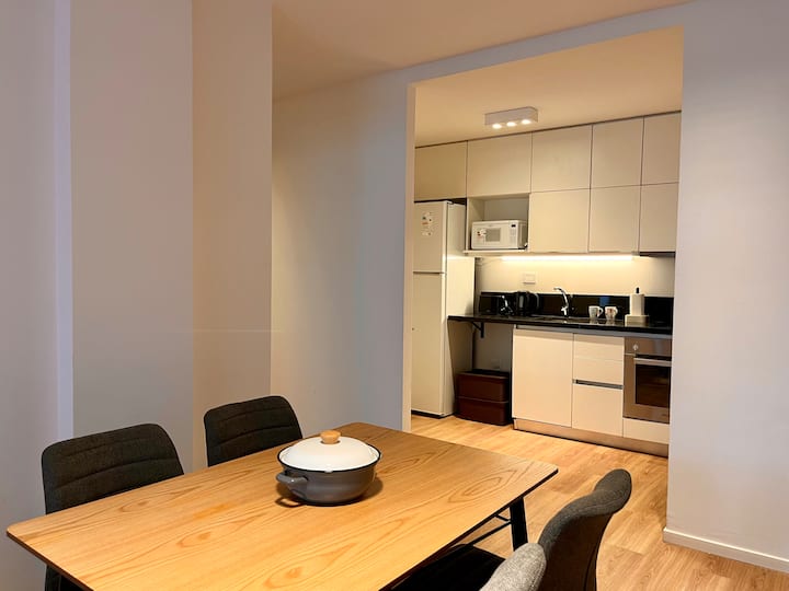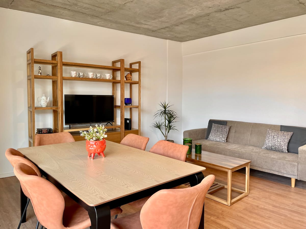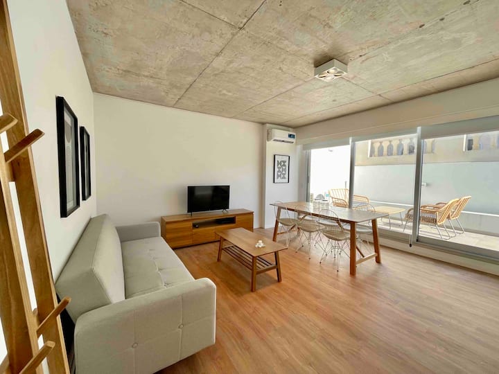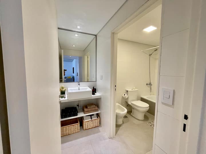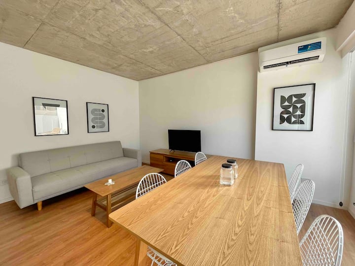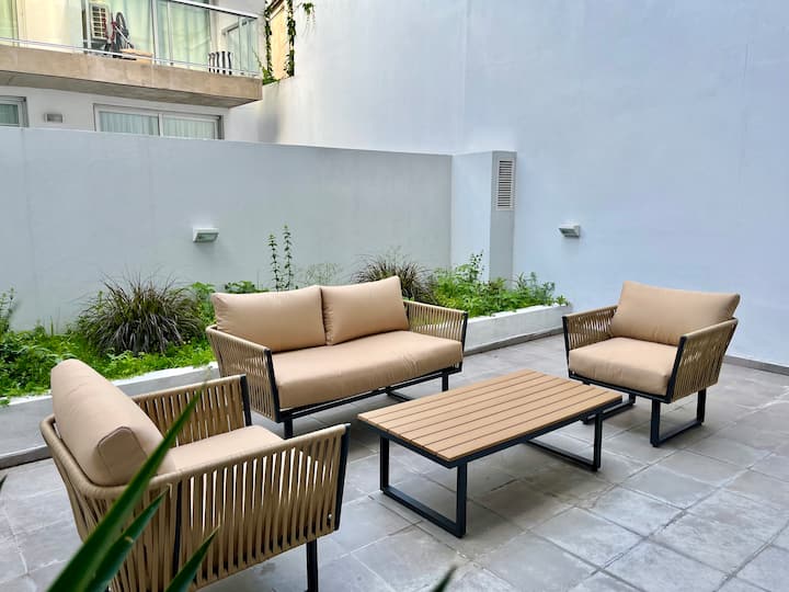 Apartment complex in San Telmo with 3 apartments in the same building. All units include hot/cold air conditioning, ironing equipment, hair dryers, toaster, microwave, cookware, towels, linens, shampoo and soap. Unit “PB” has 1 bedroom with a double bed, a dining room with a sofa bed, an integrated kitchen, 1 full bathroom and a private patio. Unit “H” has 2 bedrooms (one double bed and two twin beds), a dining room with a sofa bed, an integrated kitchen, 1 full bathroom and a balcony. Unit “A”