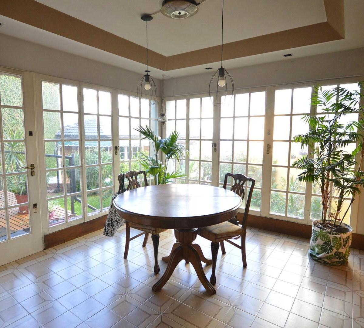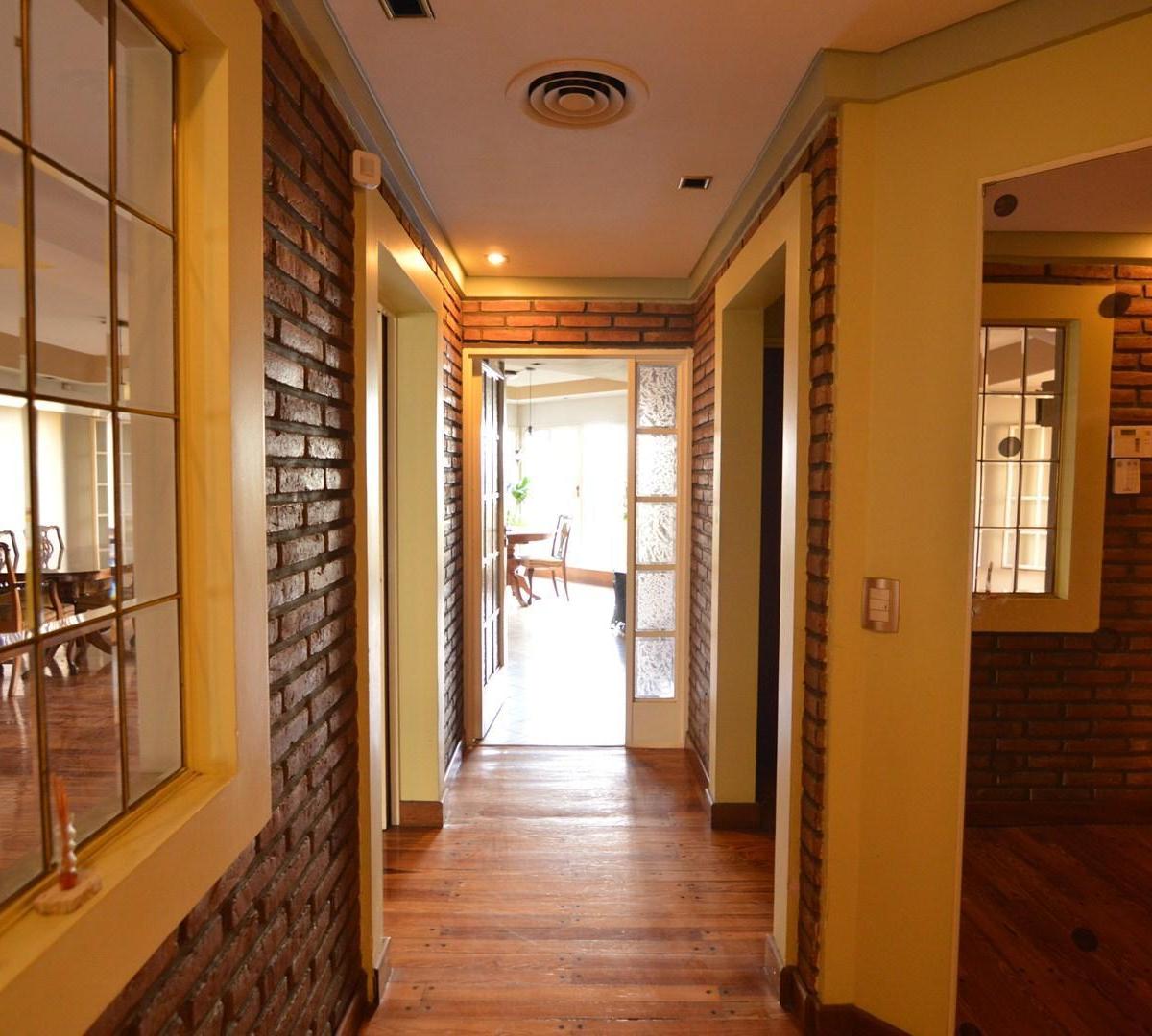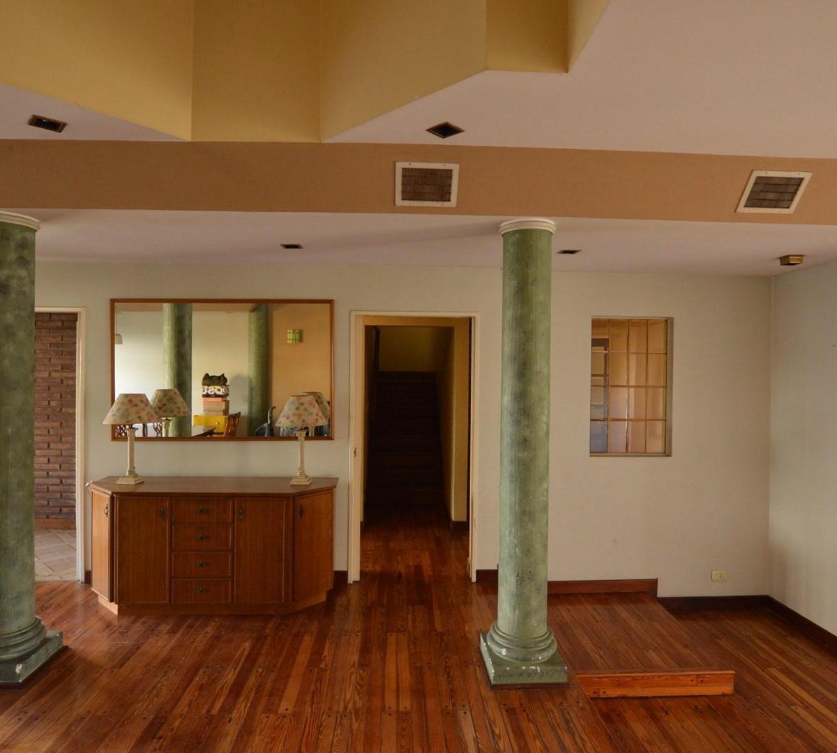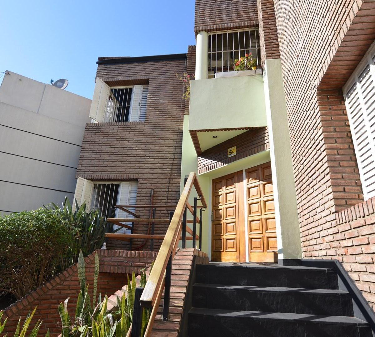 Triplex house on an independent plot with a garden, a covered BBQ area (quincho) and a covered parking space. The lot measures 10 x 30. The property is distributed over multiple levels with 5 bedrooms and 6 rooms total, plus toilets and full bathrooms, and includes fitted storage throughout, a security alarm and a guarded main entrance door. It has a living and dining area, a kitchen-dining room with views of the garden, split air conditioning, parquet floors, a salamander heater, and a courtyar
