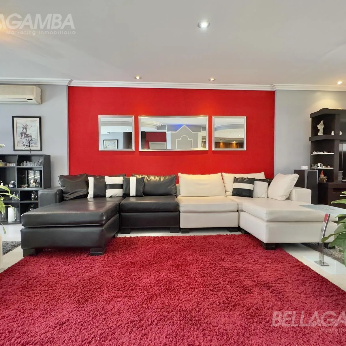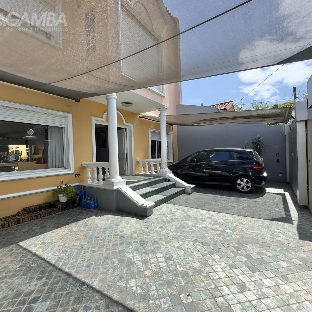 House for rent with 6 rooms across 3 floors, including 5 bedrooms. Total land area 300 m² and 341 m² covered. The property includes a semi-covered (assigned) parking area for 2 cars, a double driveway gate, garden and a pool with a filter. Ground floor comprises a large living-dining room and an open-plan family room, a full bathroom, a front bedroom or office with built-in closet, a kitchen to the back with ample counter space and pantry storage, a gallery with metal safety shutters, and a comp