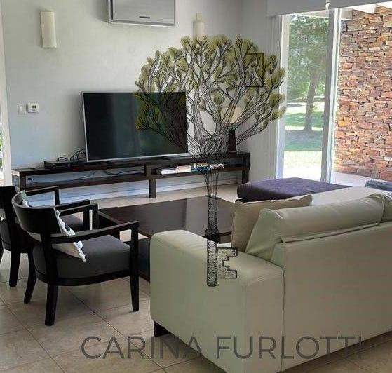House on a garden plot of over 8,000 m² with extensive trees. Large living-dining room with a fireplace, one bedroom with a double bed and shower bathroom, two additional bedrooms sharing a full bathroom, and a master suite with a dressing room and private bathroom. Air conditioning in all rooms; includes a service room and covered laundry with a support fridge, integrated BBQ in the kitchen, a dining table for 10, dishwasher, toaster and microwave, and a gallery. Monthly rates: January USD 6,00