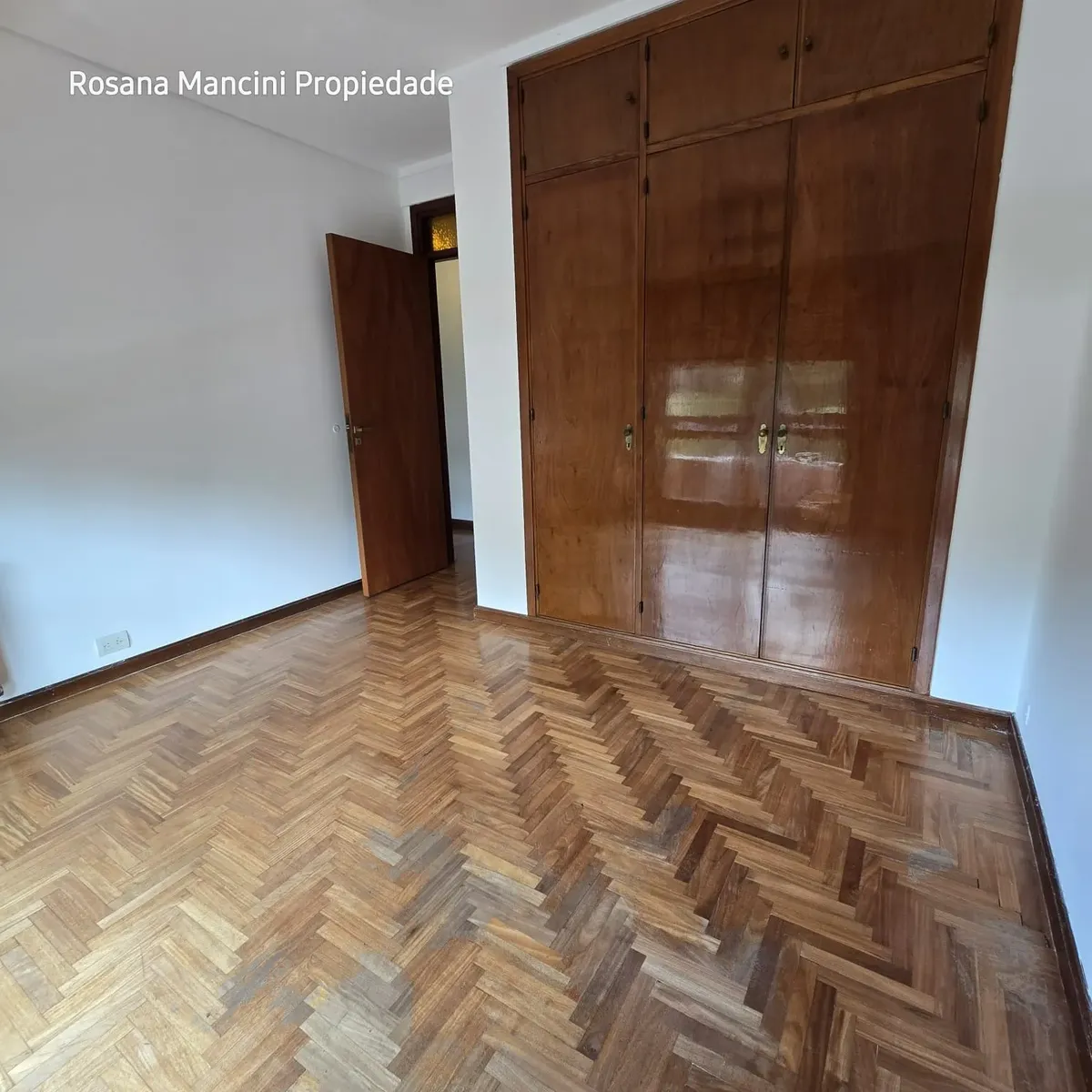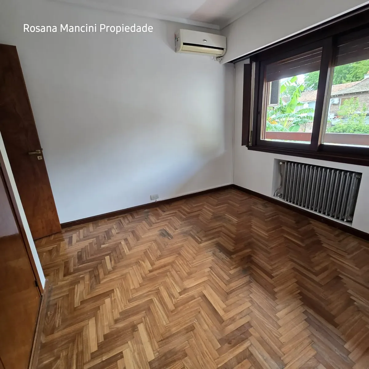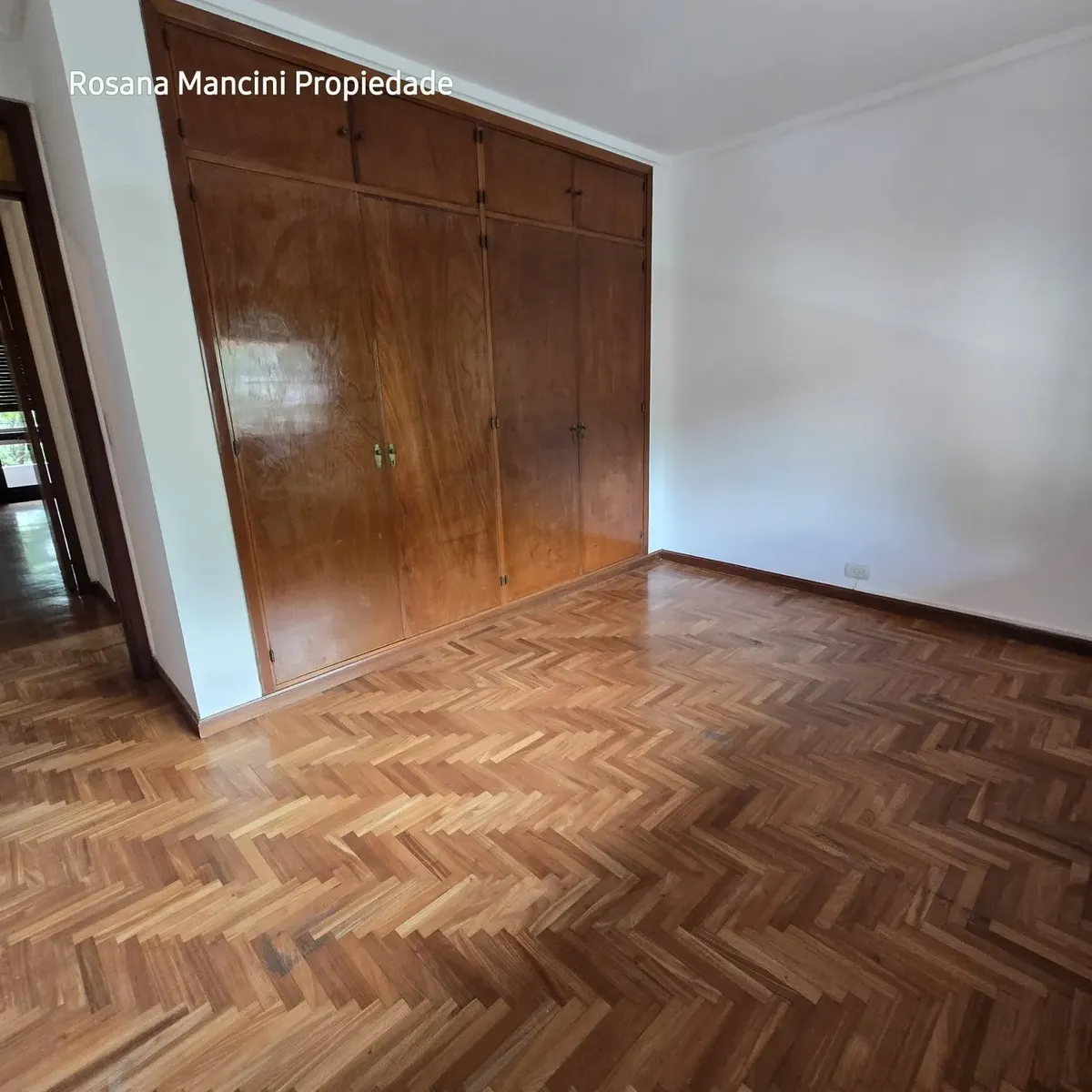 Two-storey apartment in Martínez with 5 bedrooms and a playroom. The ground floor has a large living-dining room with access to the garden, a separate study/intimate sitting area, a reception toilet, and a dining area with direct access to an east-facing garden with a BBQ area and service exit to the street. It includes an updated kitchen and daily dining area connected to the living-dining room, with service access to the upper floor, plus a garage and laundry. The upper floor has 4 main bedroo
