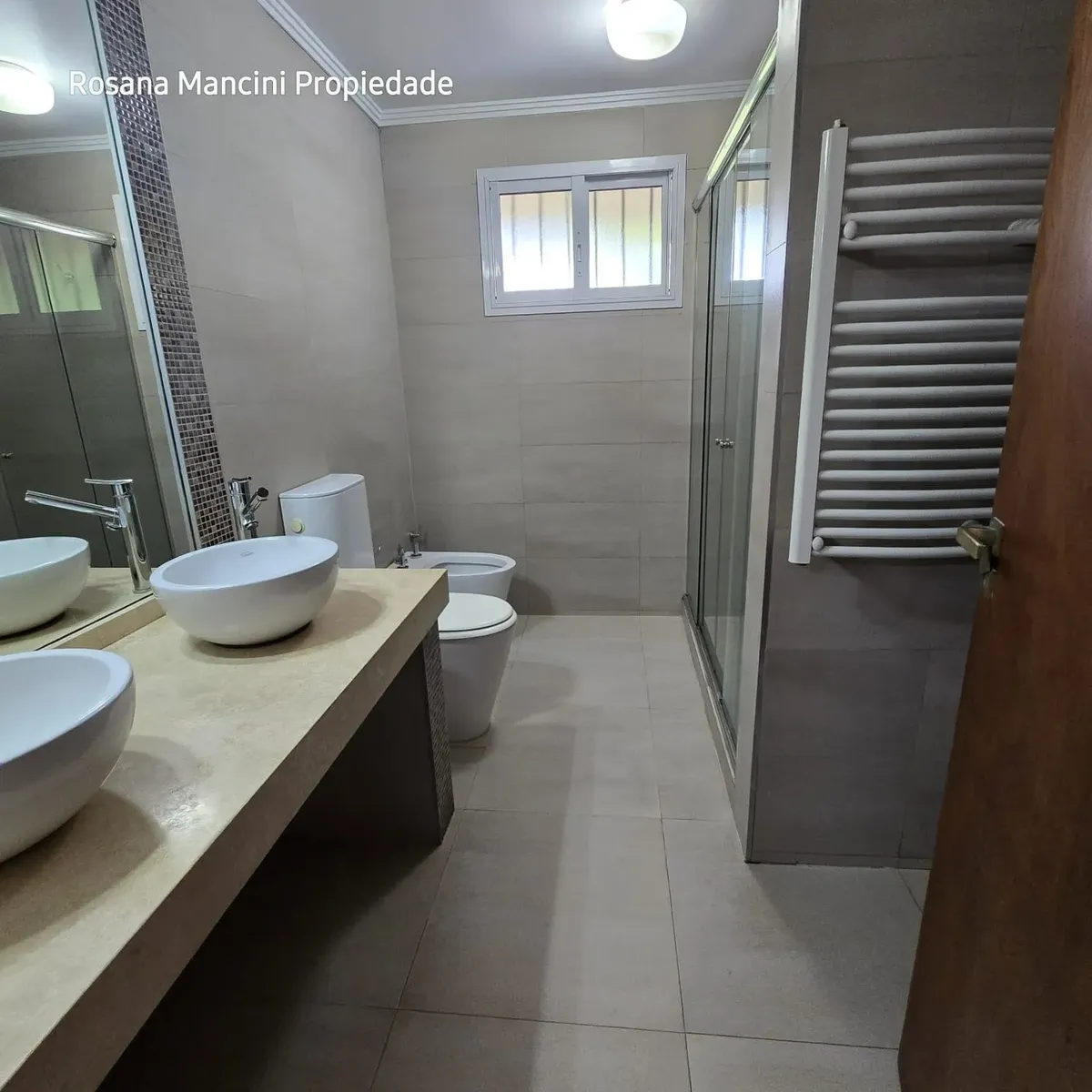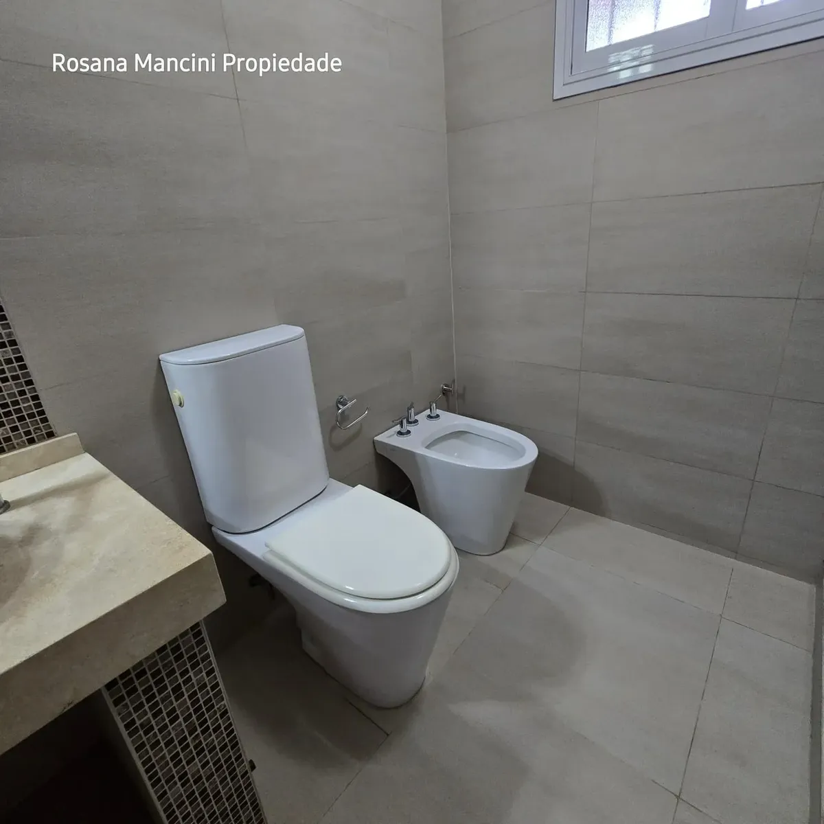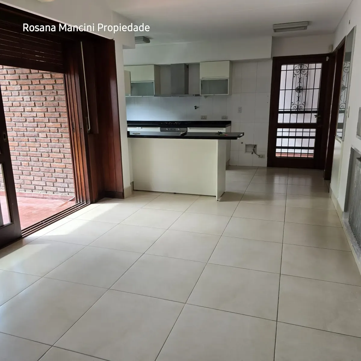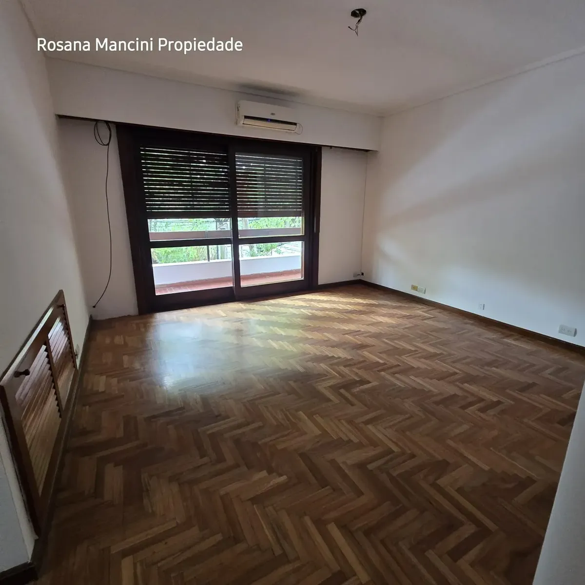 Two-storey apartment in Martínez with 5 bedrooms and a playroom. The ground floor has a large living-dining room with access to the garden, a separate study/intimate sitting area, a reception toilet, and a dining area with direct access to an east-facing garden with a BBQ area and service exit to the street. It includes an updated kitchen and daily dining area connected to the living-dining room, with service access to the upper floor, plus a garage and laundry. The upper floor has 4 main bedroo