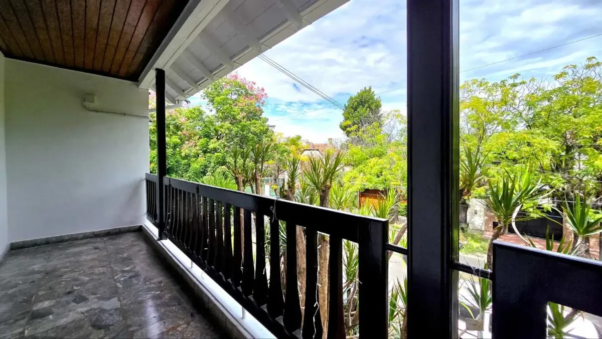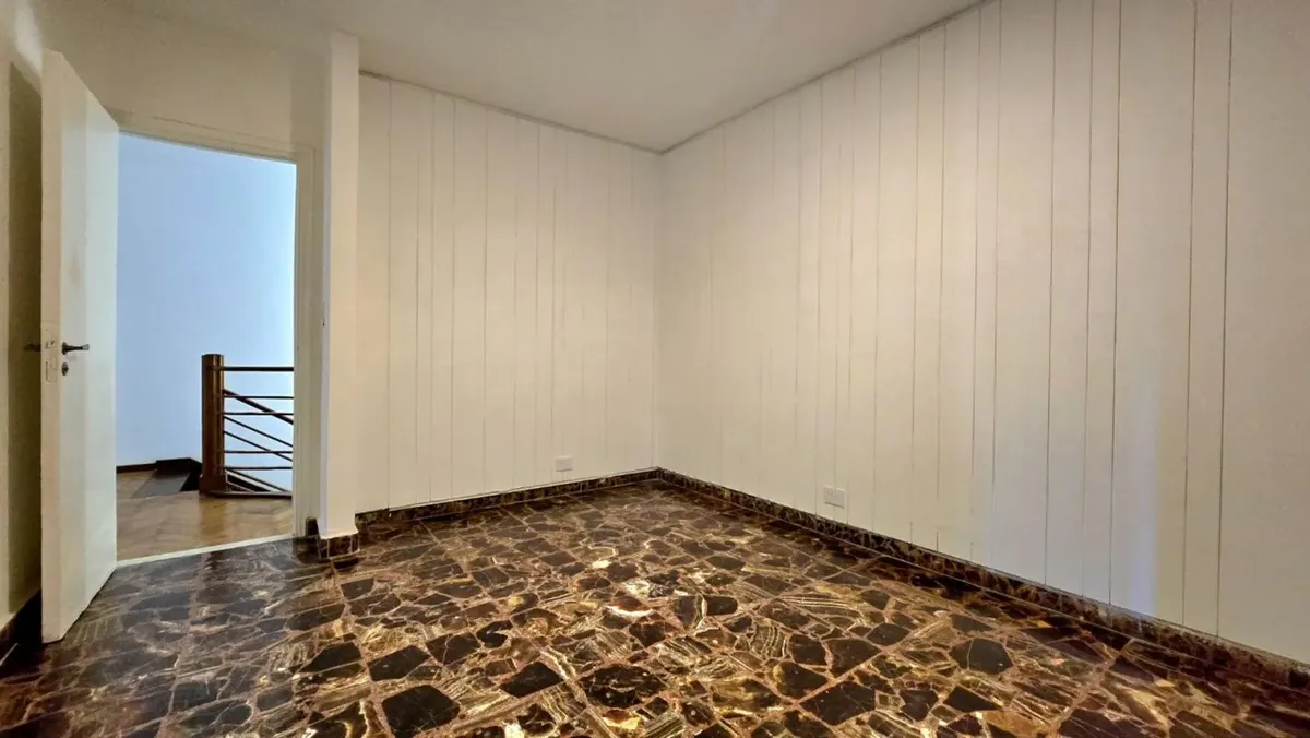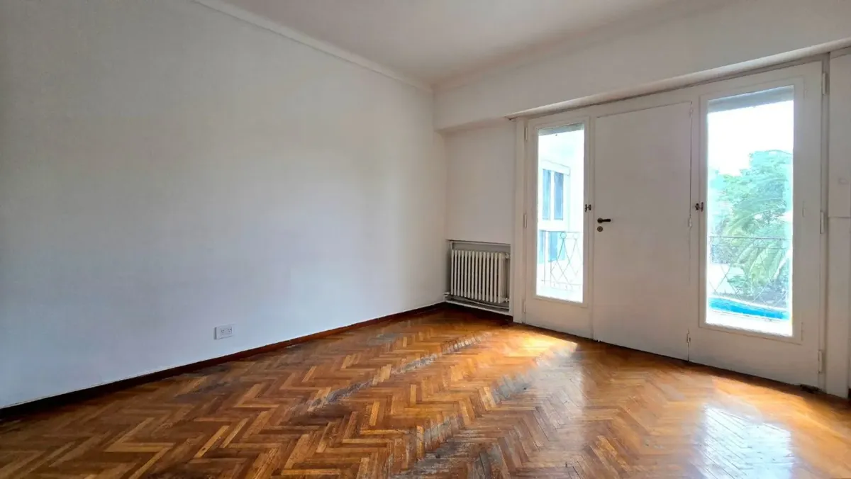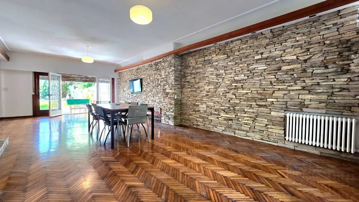 House in Martínez with 8 rooms, including 5 bedrooms, a swimming pool, and parking for 3 covered and 1 uncovered car. Ground floor has a large living-dining room with fireplace, a separate office or study, a guest toilet, a kitchen with cooking burners and connection for a washing machine, plus a service toilet. From the kitchen, access is provided to the quincho and the patio with a recently installed pool equipment. Upper floor has a distribution hall, four bedrooms with built-in wardrobes, th