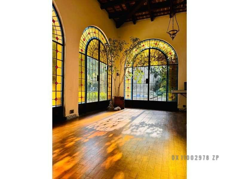 Colonial-style house in Martínez, refurbished 5 years ago, arranged around a U-shaped layout. The ground floor has a hall, large living room with a fireplace, separate dining room with a fireplace, office, guest toilet with shower, prayer room (oratorio), kitchen, breakfast area, wine cellar (bodega), laundry area, service quarters with a bathroom, ironing room, a 150 m² service patio with a grill, machine room, and a basement. The upper floor has 5 bedrooms: a 70 m² principal bedroom with a fir