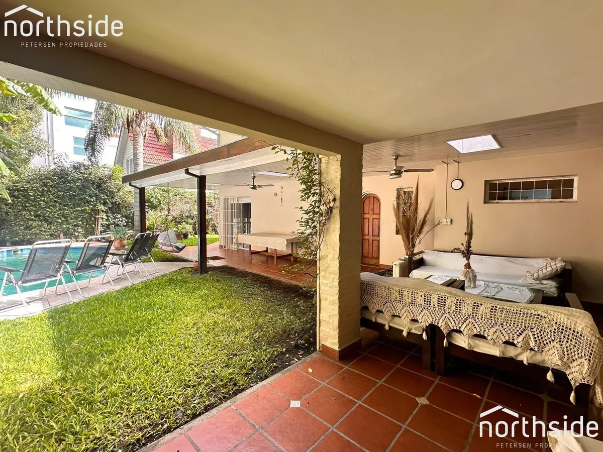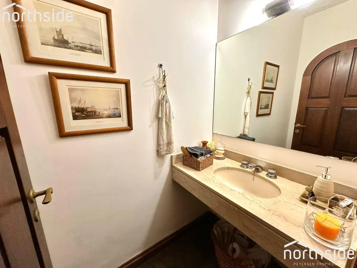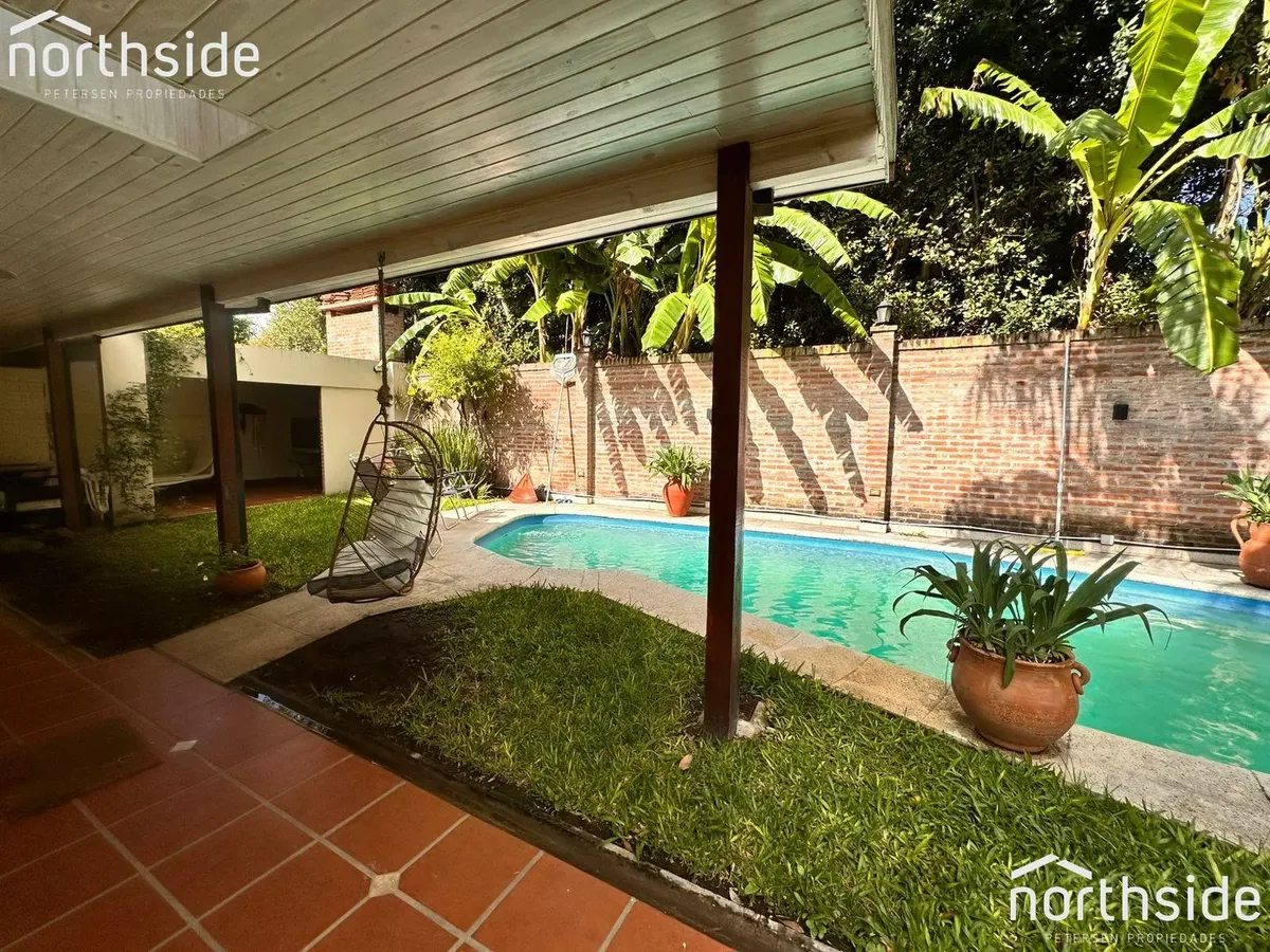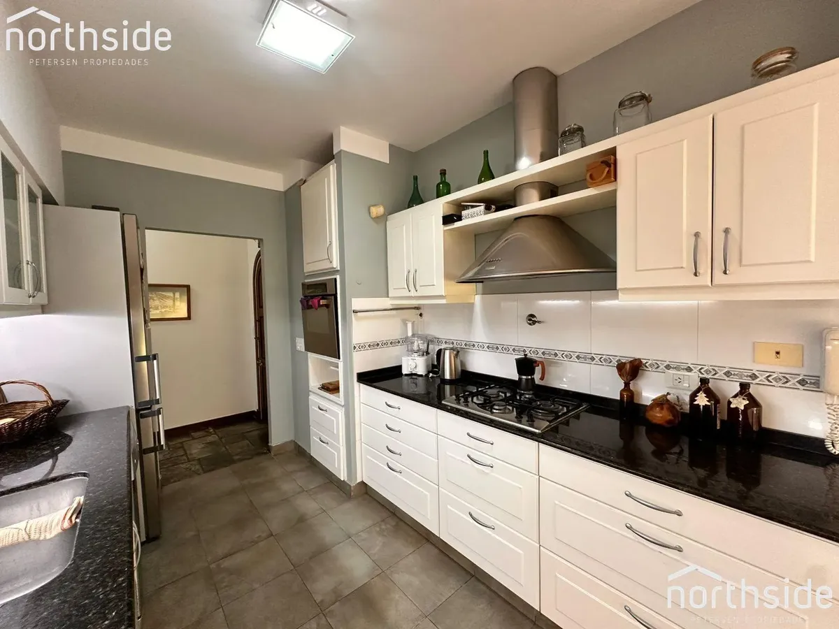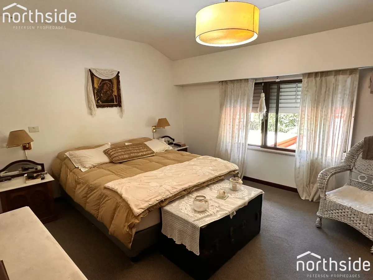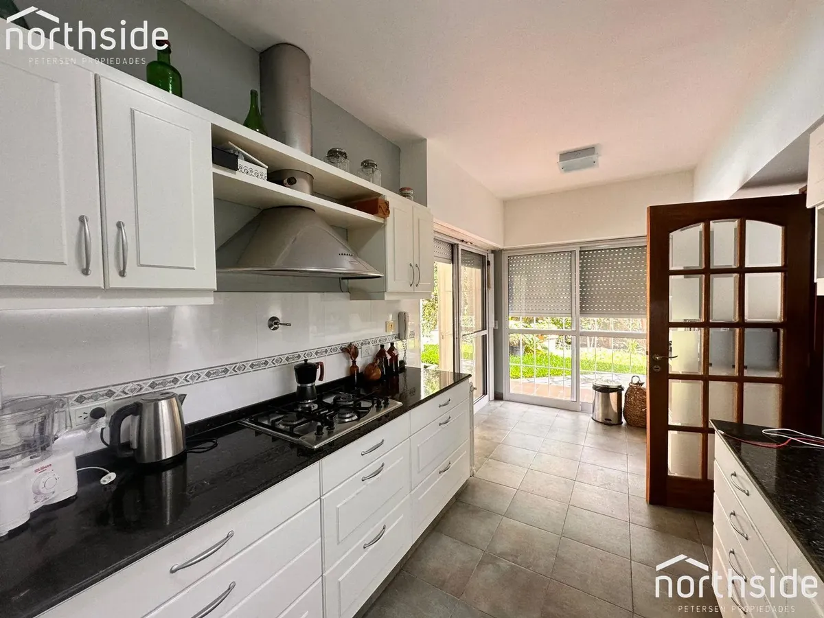 Classic house for rent in Martínez Libertador al Río, refurbished 15 years ago. Ground floor has a reception hall, a front living room with fireplace, a separate dining room, a kitchen with space for a breakfast area and direct access to the garden, an additional dining room or independent living room, a laundry area, and a service staff quarter with bathroom. Upper floor has four bedrooms, with the master suite including a dressing room and private bathroom, and three additional bedrooms sharin