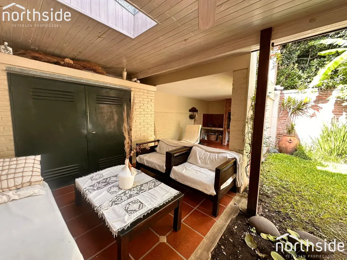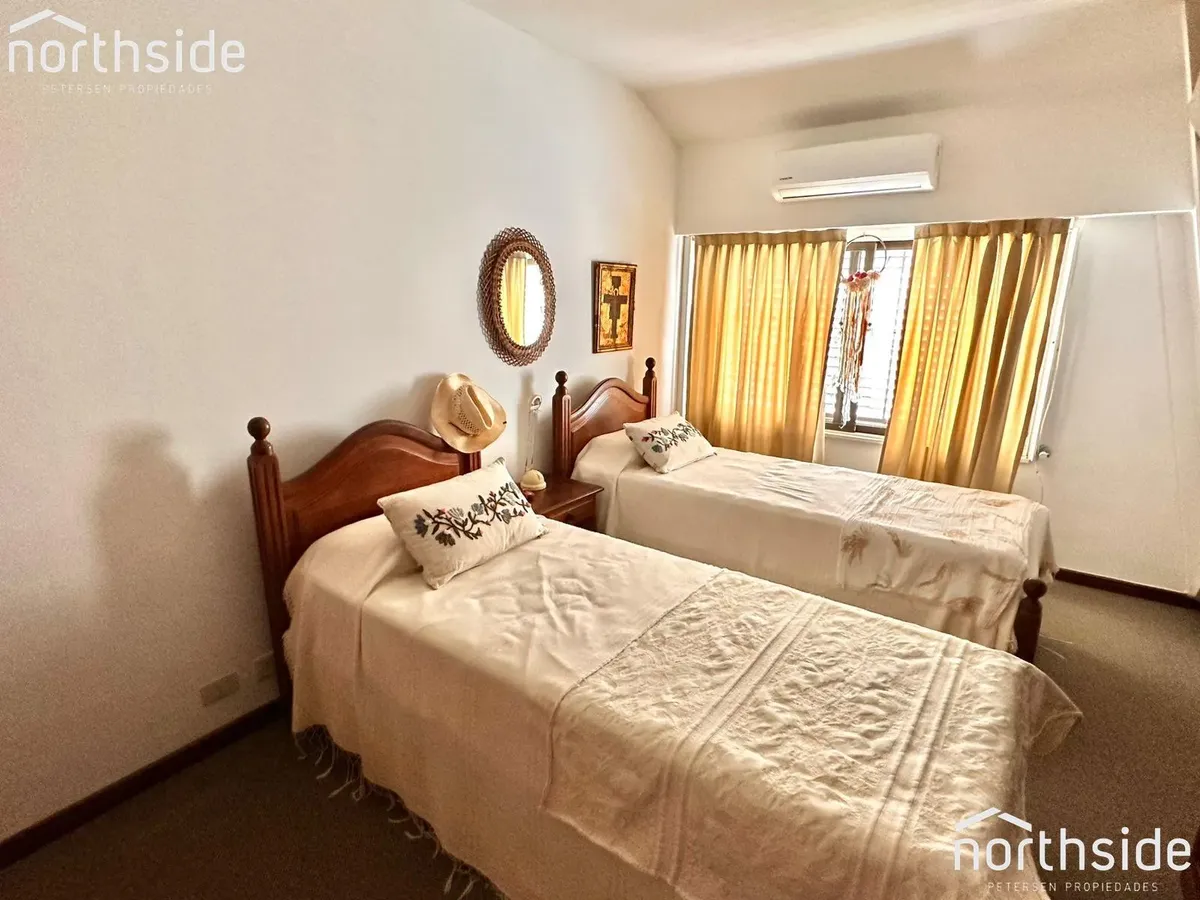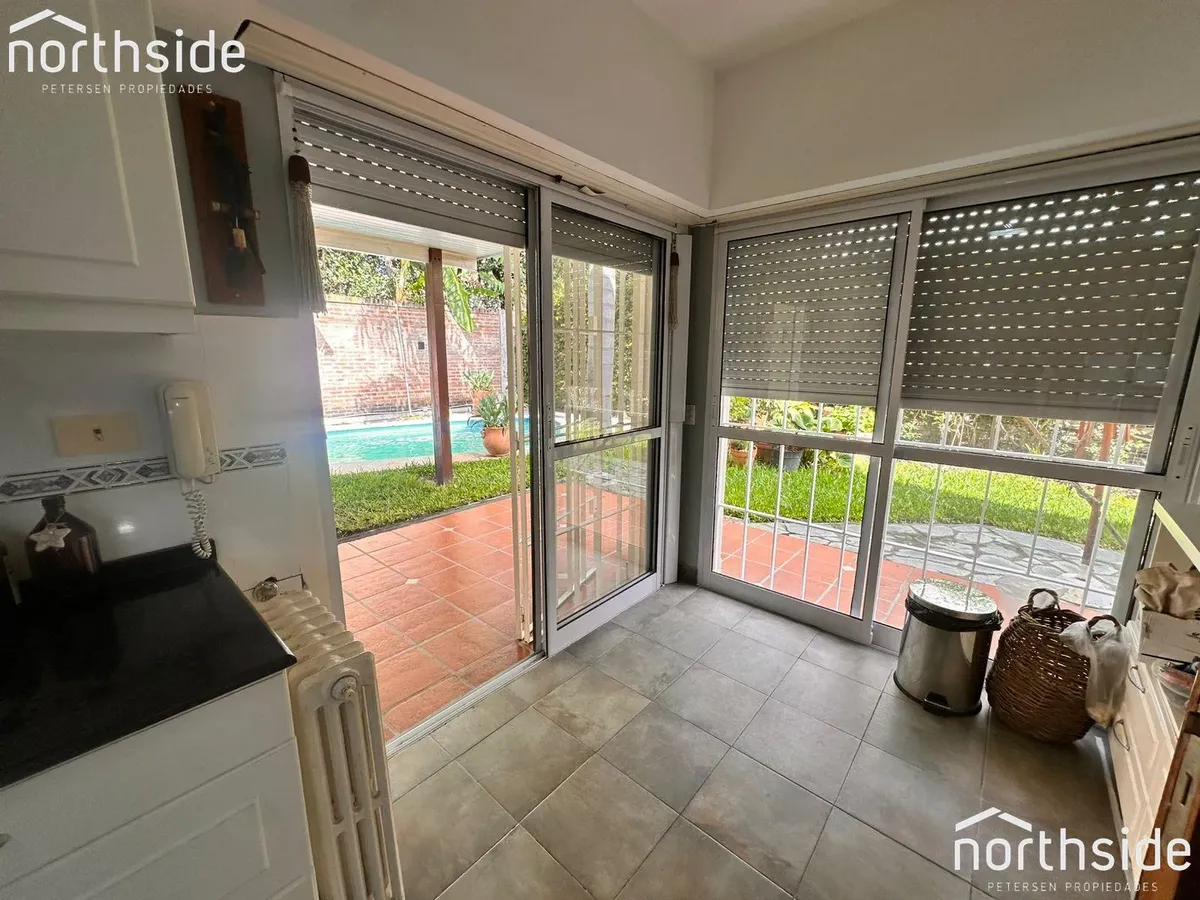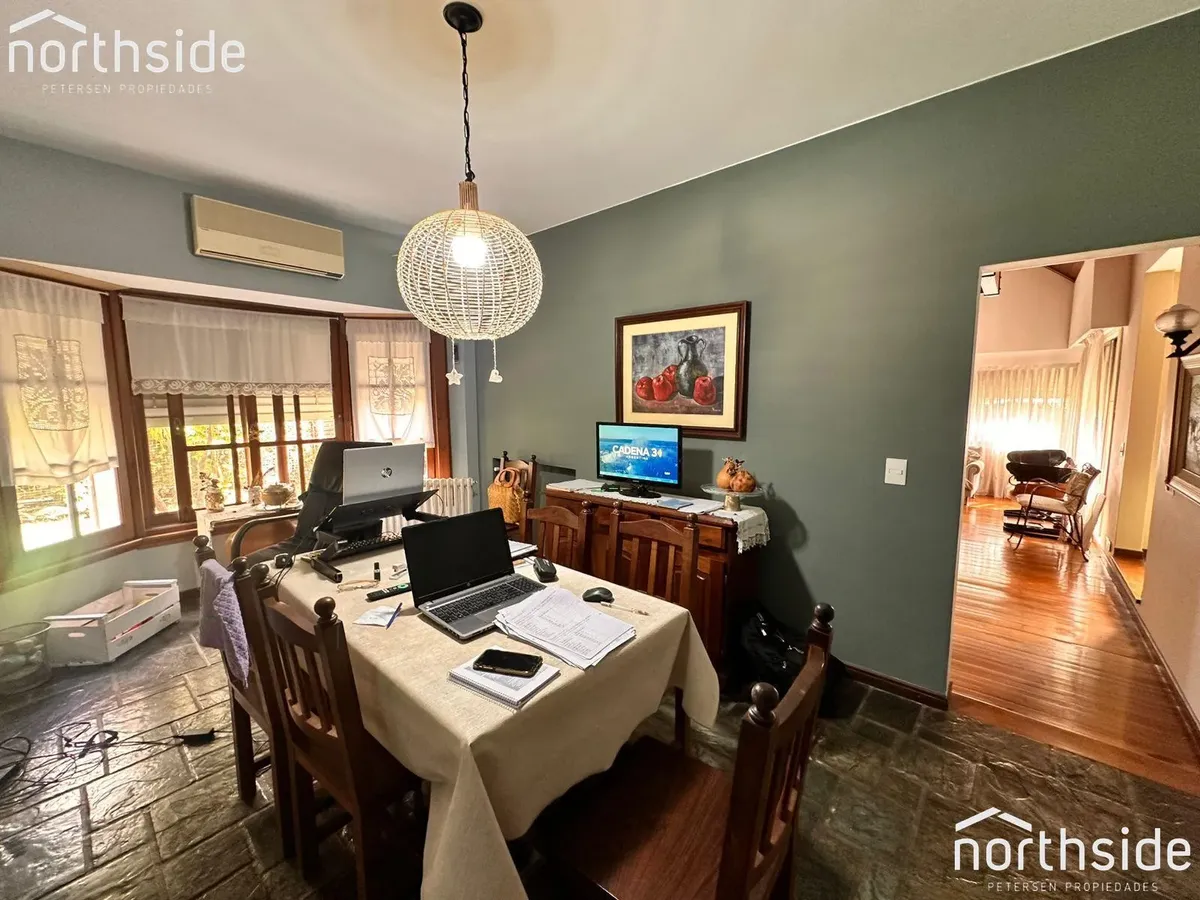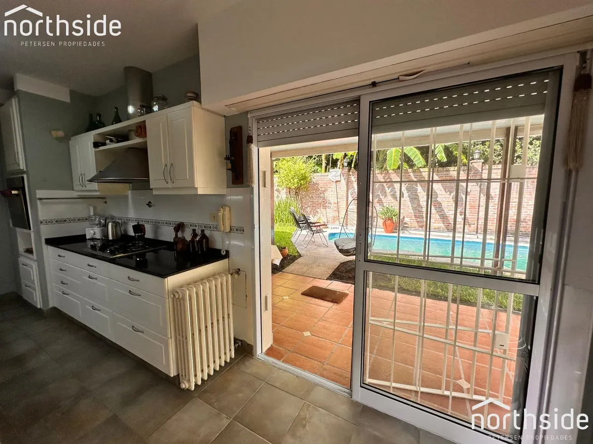 Classic house for rent in Martínez Libertador al Río, refurbished 15 years ago. Ground floor has a reception hall, a front living room with fireplace, a separate dining room, a kitchen with space for a breakfast area and direct access to the garden, an additional dining room or independent living room, a laundry area, and a service staff quarter with bathroom. Upper floor has four bedrooms, with the master suite including a dressing room and private bathroom, and three additional bedrooms sharin