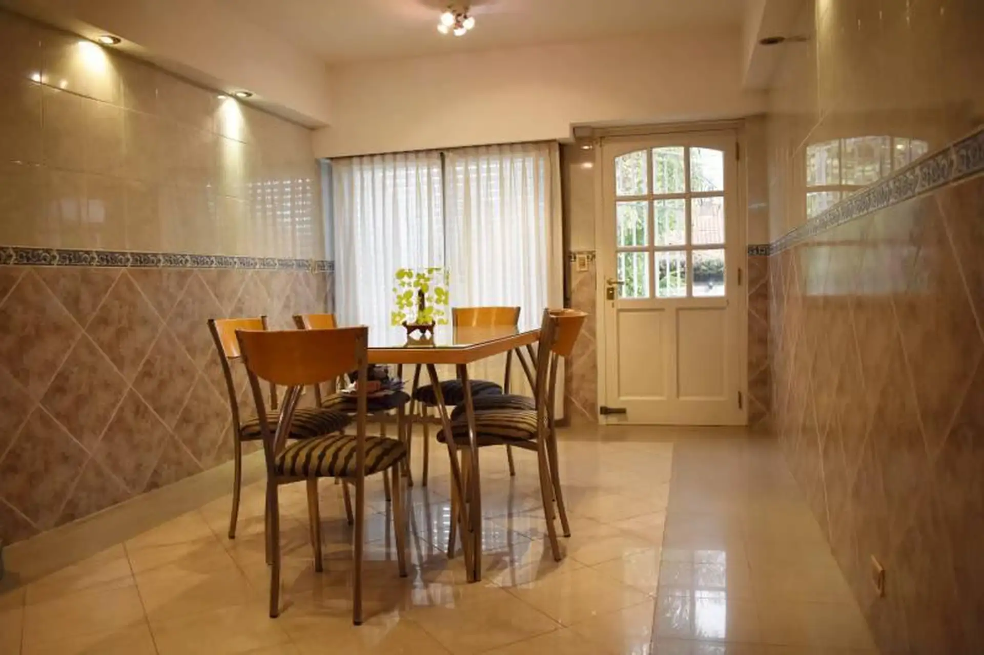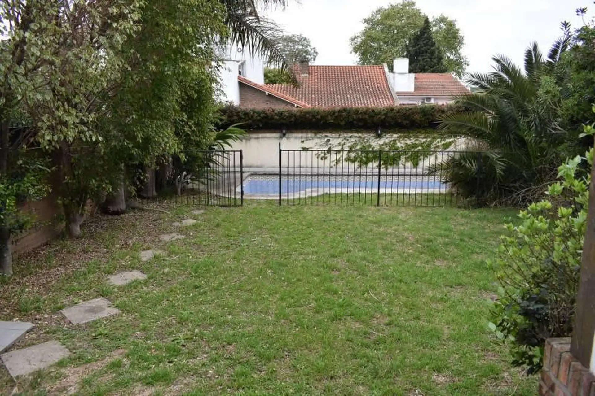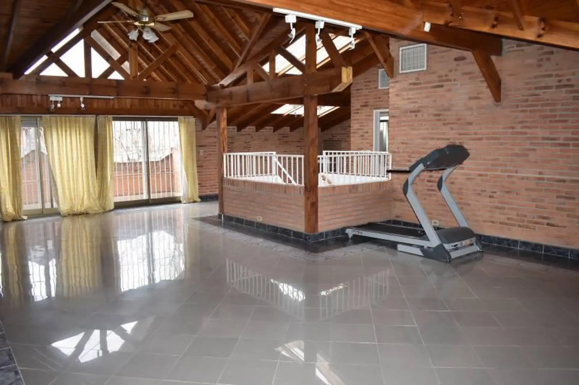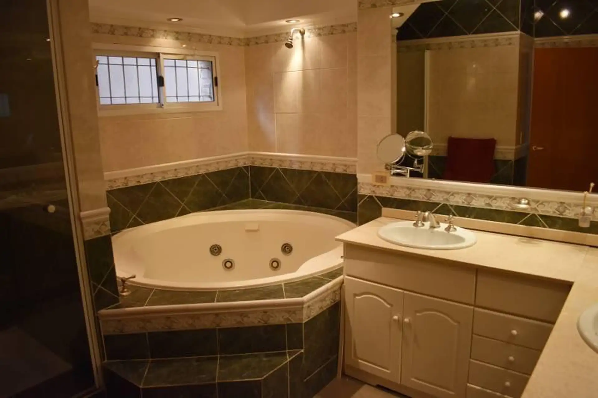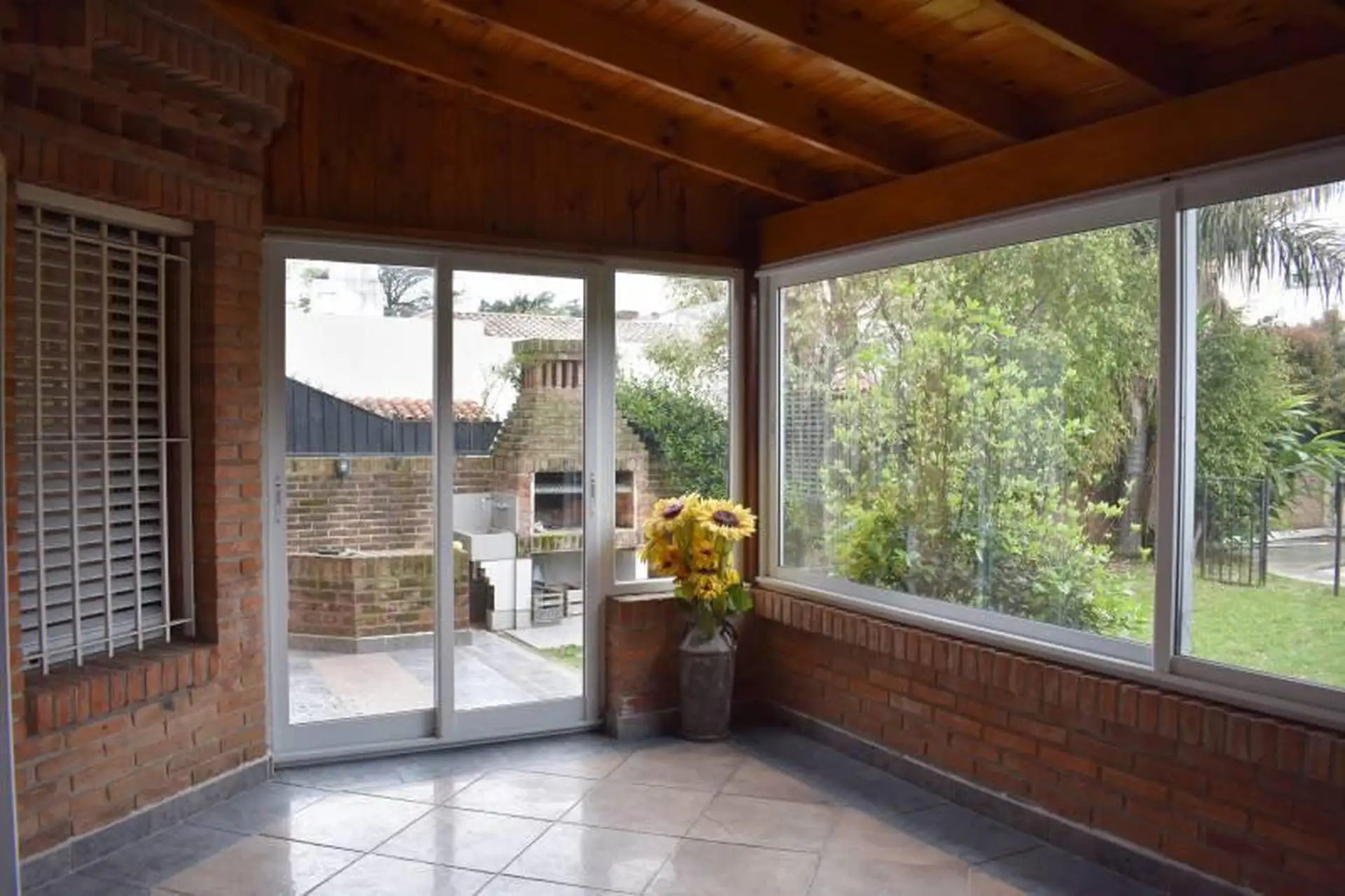 House for rent in Martínez with 5 bedrooms, 550 m² covered over 4 floors, on a 450 m² plot (12 x 38 m). Ground floor includes a reception with living with fireplace, main dining with access to a covered gallery enclosed with glass, a guest toilet, and a fitted kitchen with upper and lower cabinets plus a daily dining area. Upper floors include 4 bedrooms, including a master suite with a large bathroom with shower and double jacuzzi, and a junior suite; a playroom and a fifth bedroom with a bathr