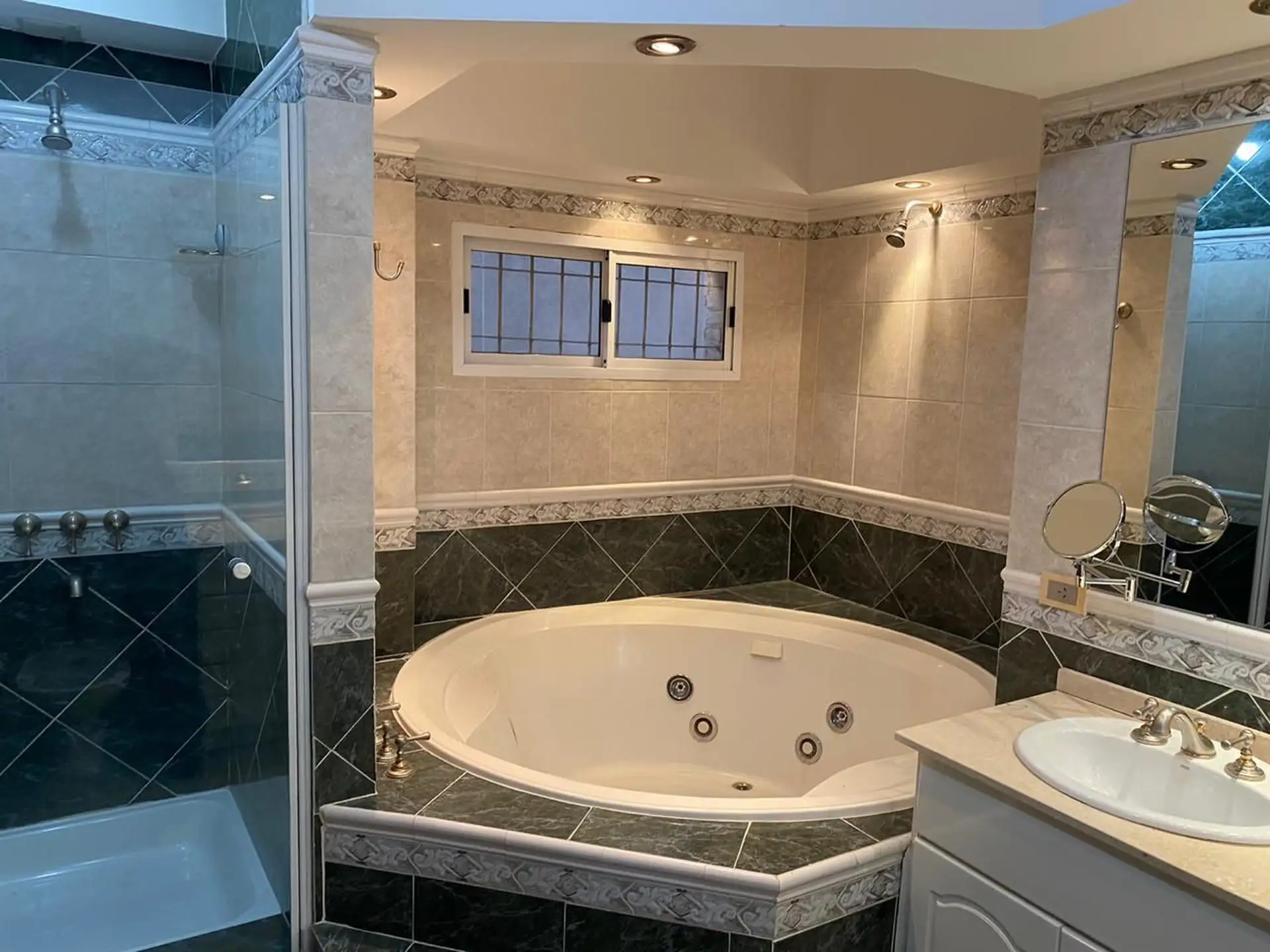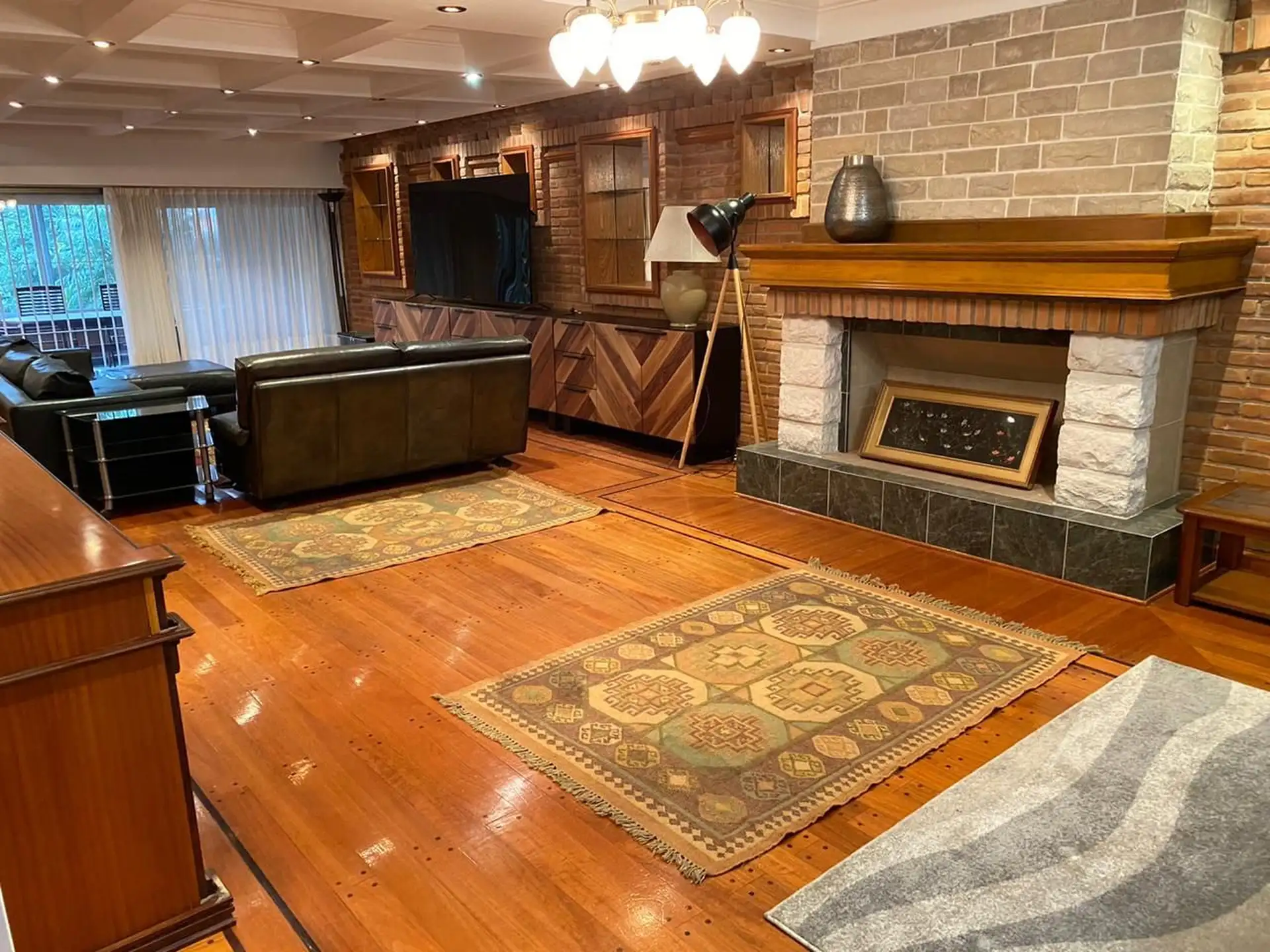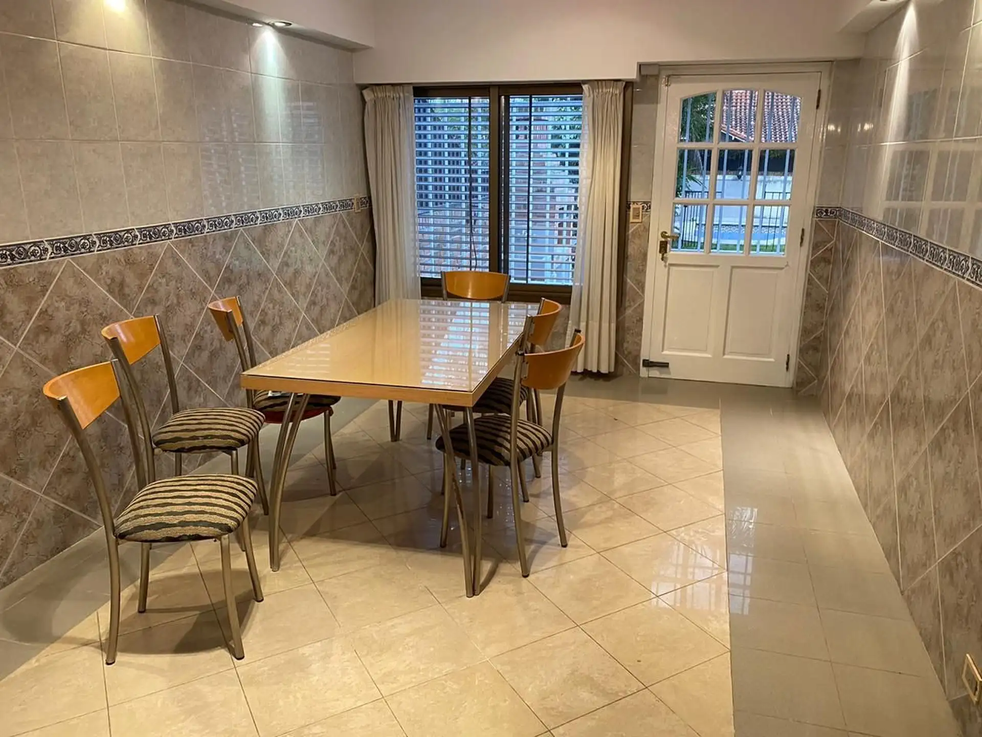 Ground-floor house near Colegio Lincoln in Martínez, San Isidro. The property has a reception room with a fireplace, a large kitchen with a dining area and direct access to the garden, a guest toilet, and service quarters. Parking for 3 to 4 cars with a remote-controlled gate. On the upper floor there are 4 bedrooms and 4 bathrooms, including 2 en suite; the main bedroom includes a dressing room and a bathroom with a double Jacuzzi. On the top level there is a playroom and a fifth bedroom with a